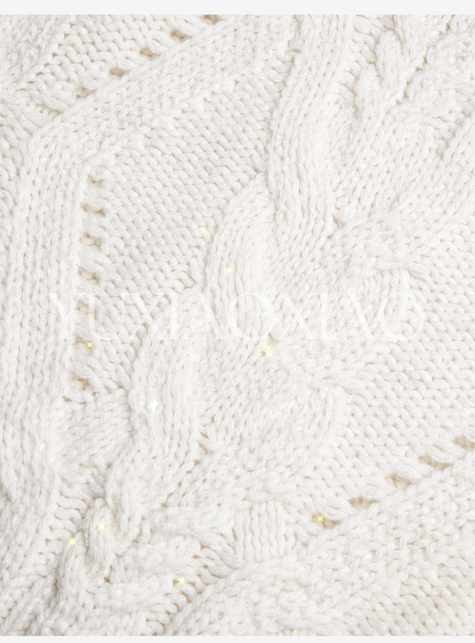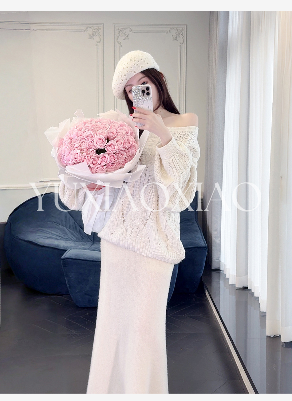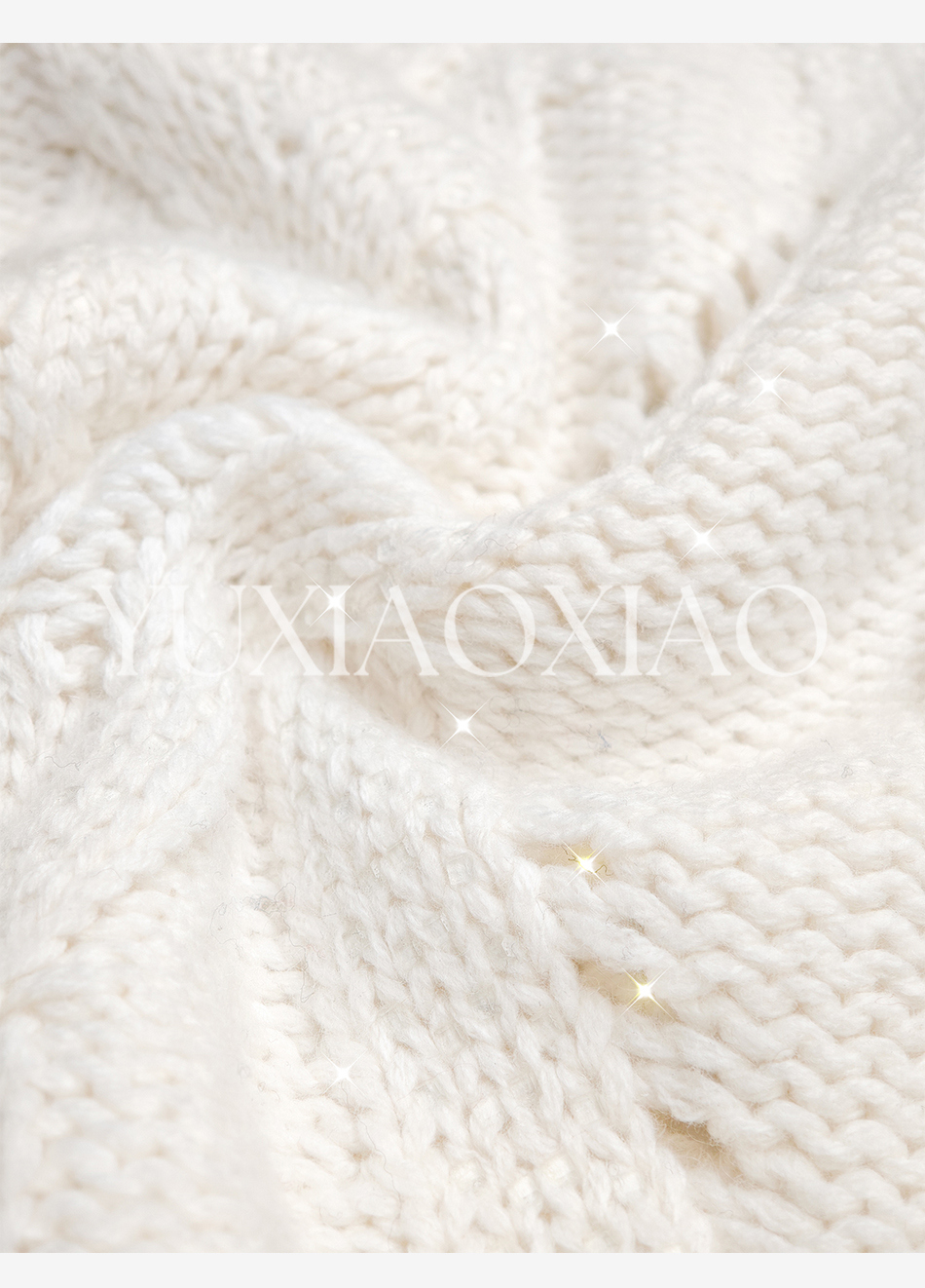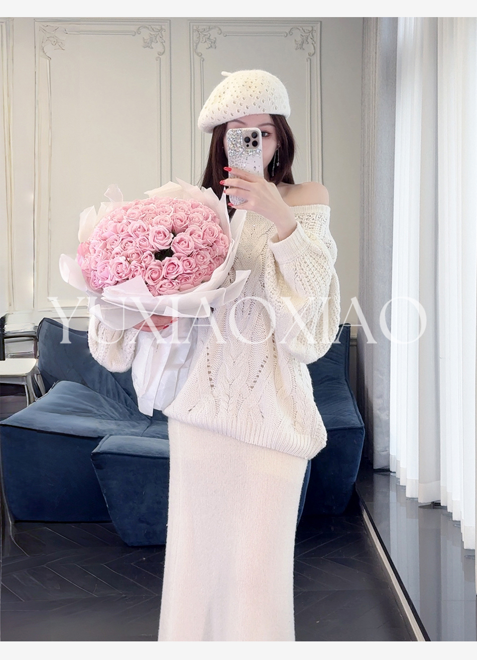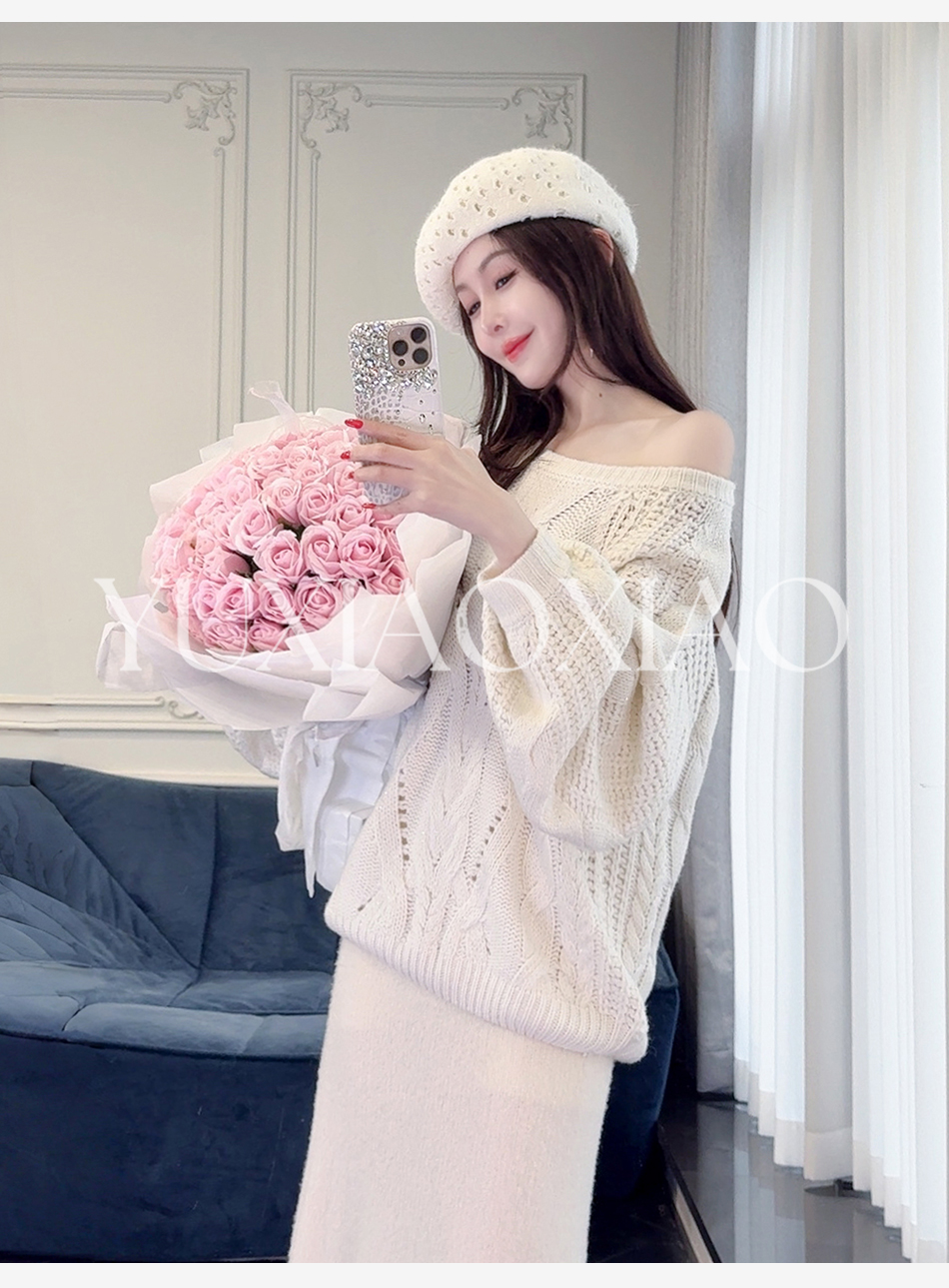 余潇潇【雅致欧尼】时尚烫钻镂空高支澳毛混纺圆领宽松灯笼袖毛衣
