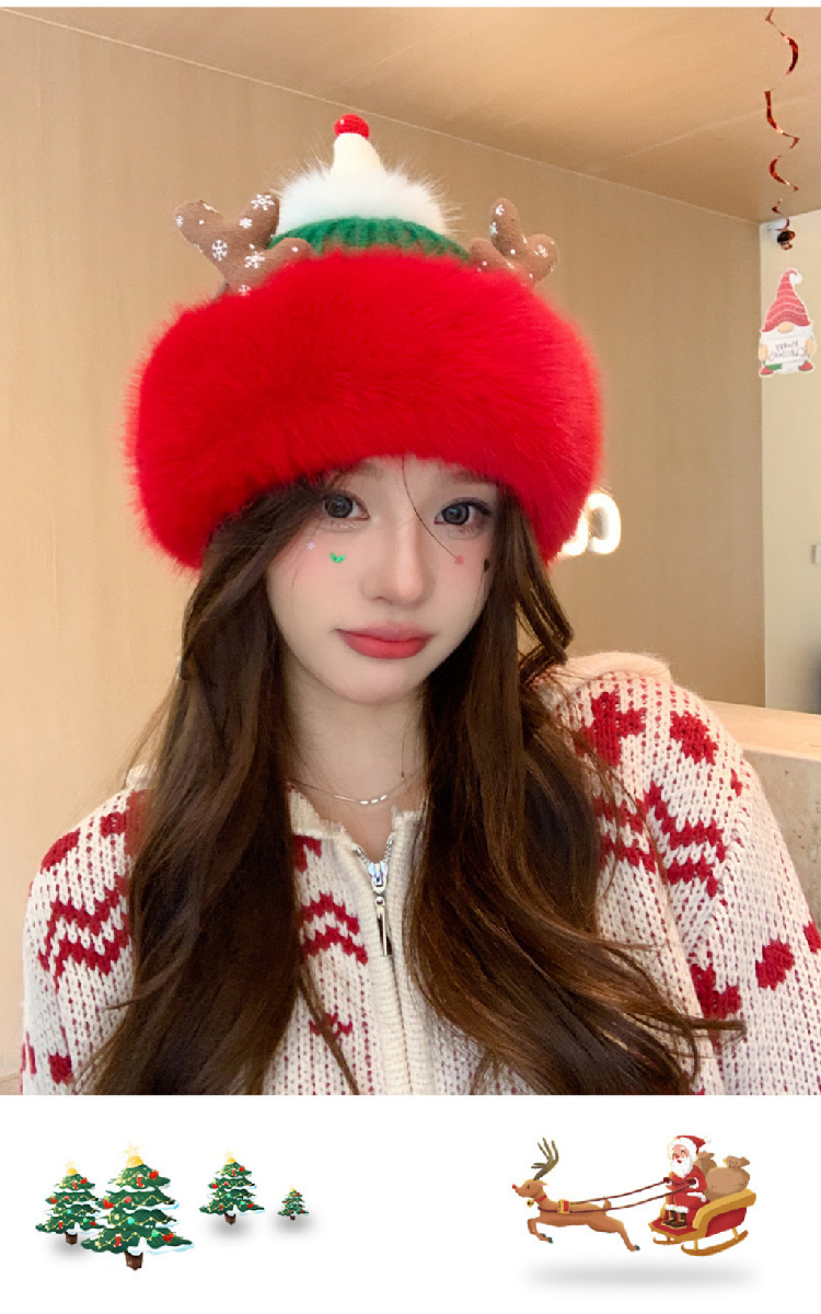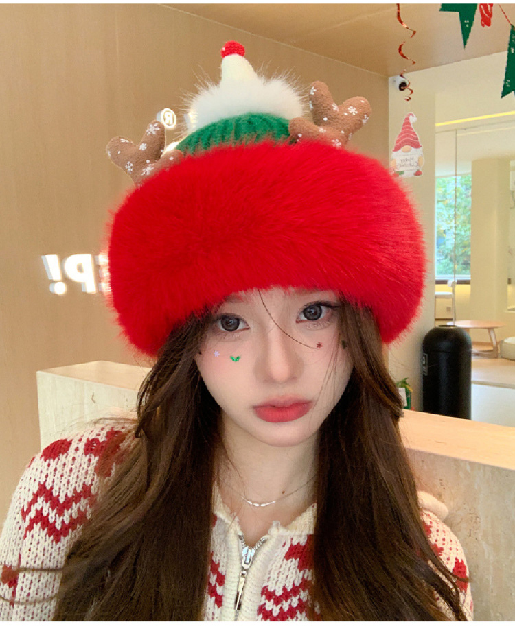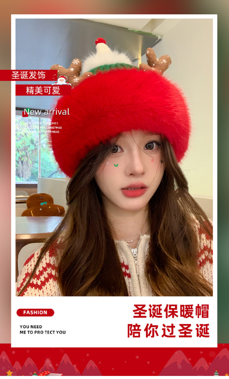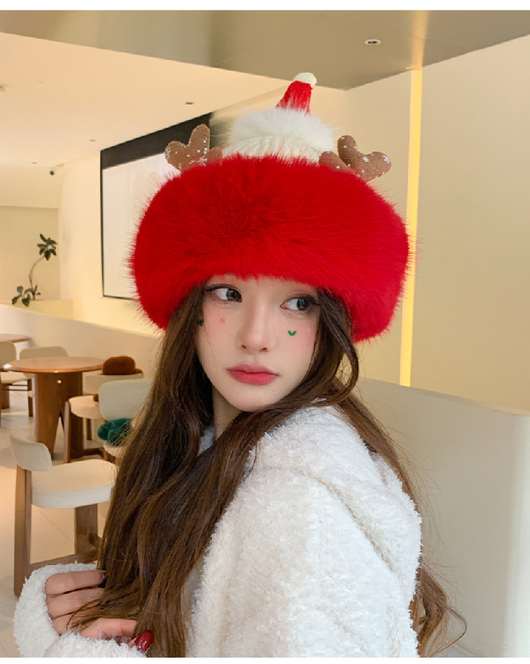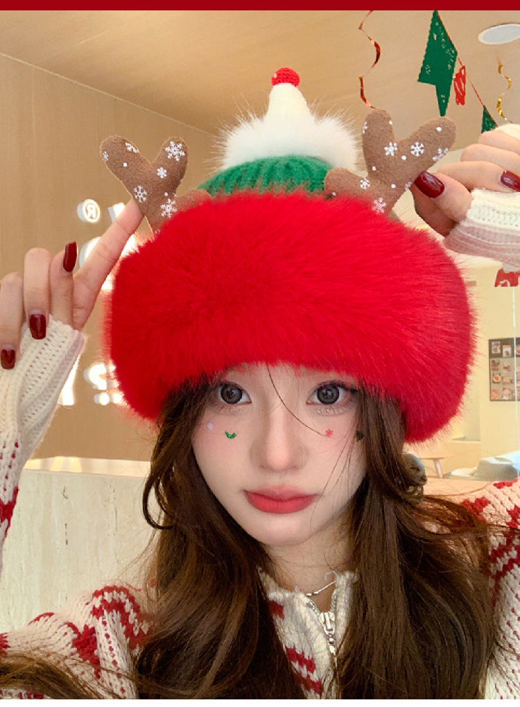 【圣诞专场】可爱鹿角红色帽子女 冬季保暖加厚毛线帽防寒护耳针织帽