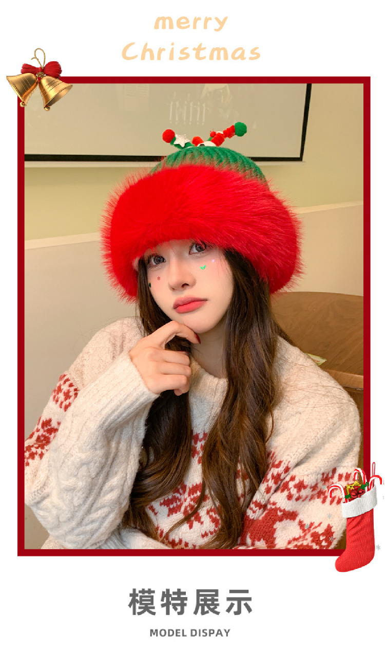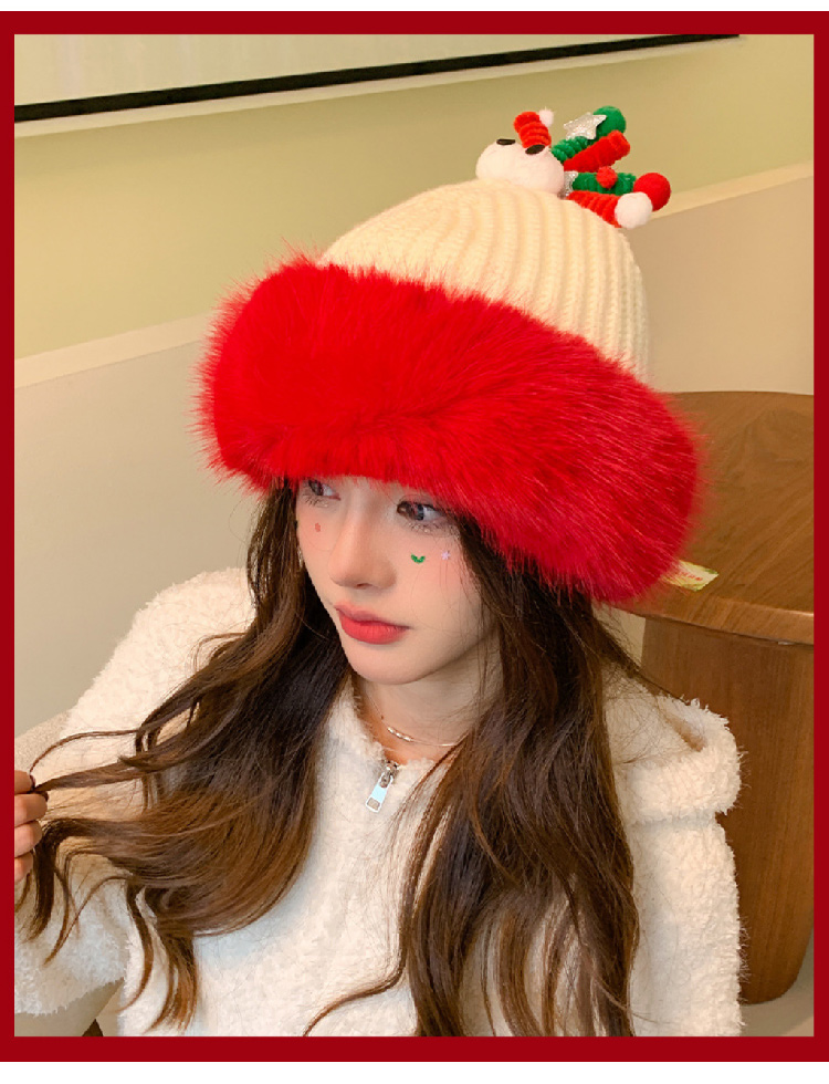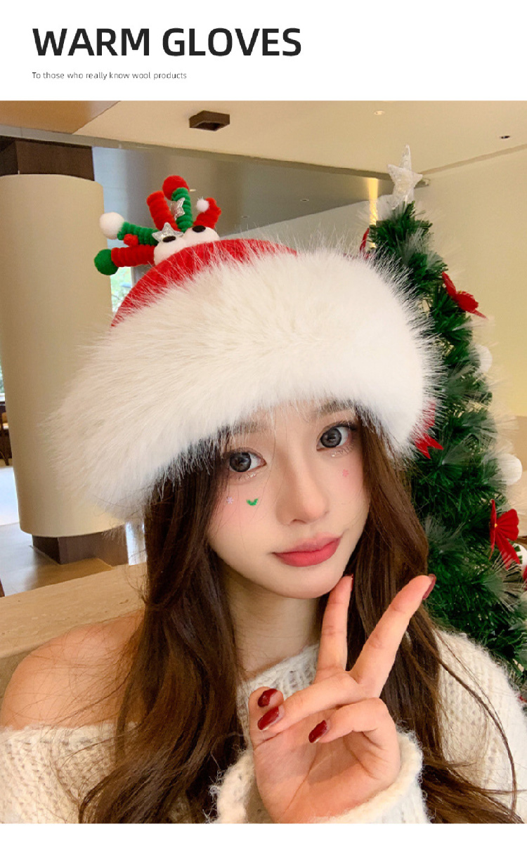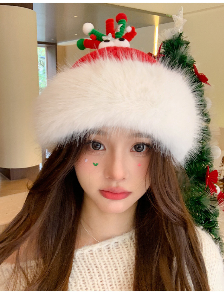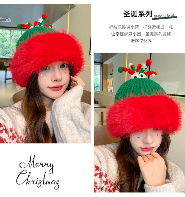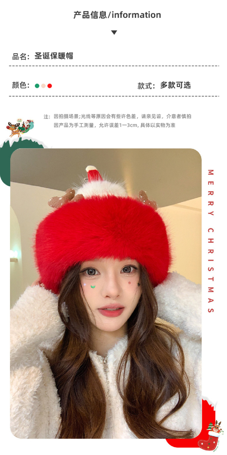 【圣诞专场】可爱鹿角红色帽子女 冬季保暖加厚毛线帽防寒护耳针织帽