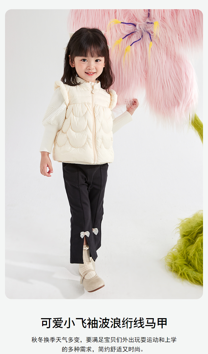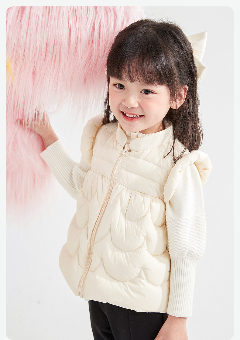 笛莎女童2023秋季新款可爱小飞袖羽绒马甲