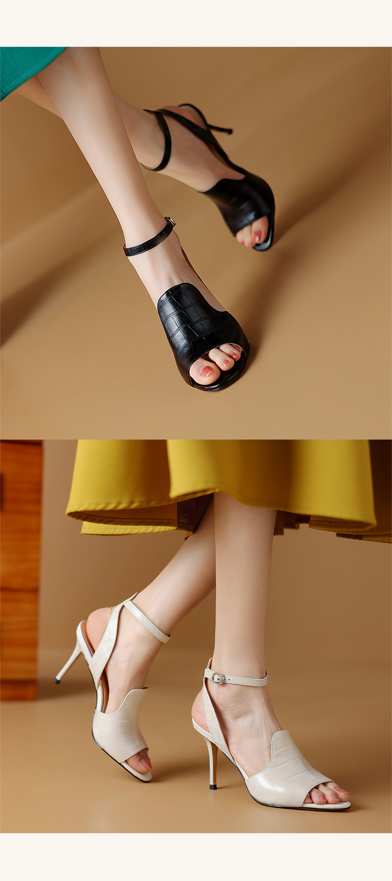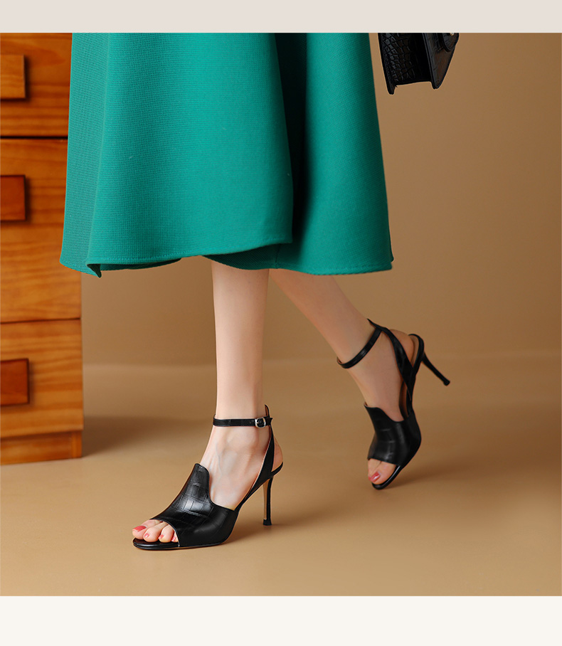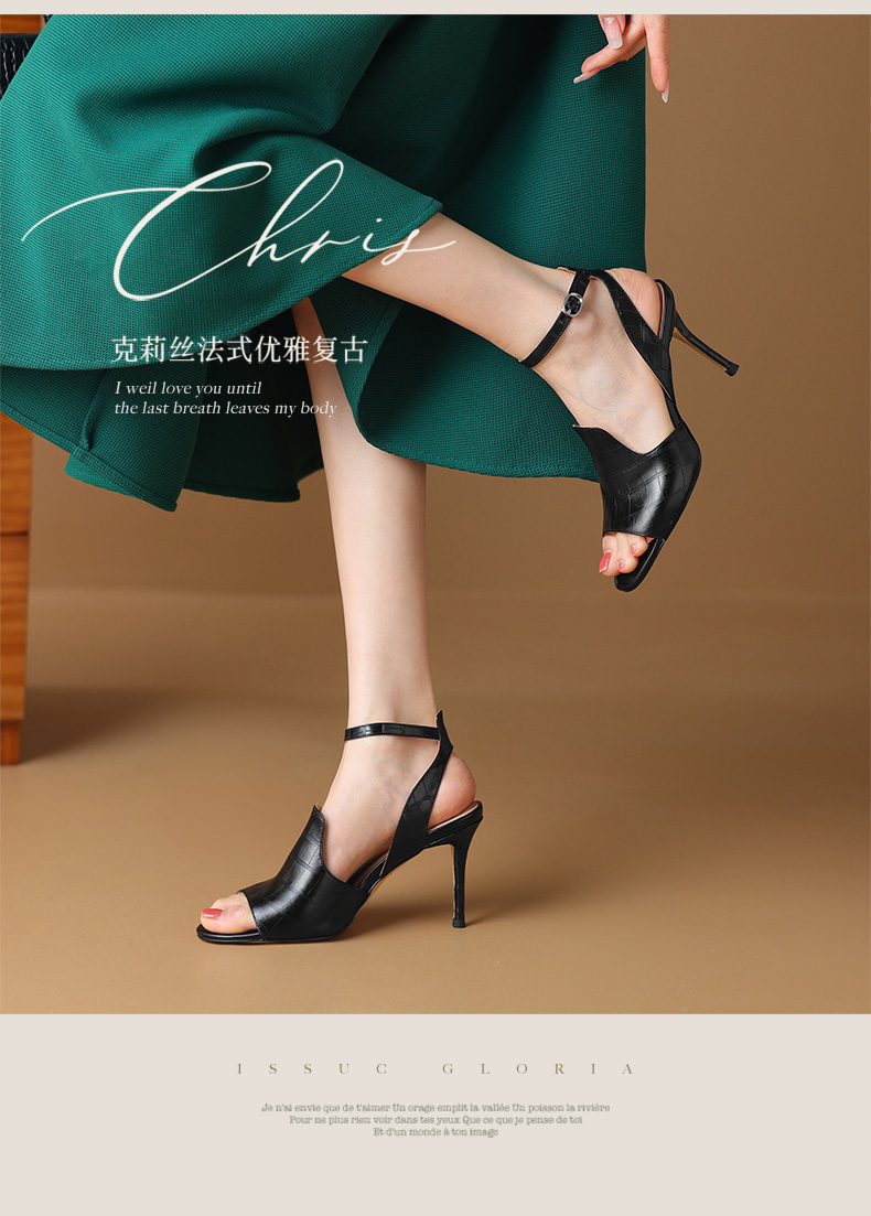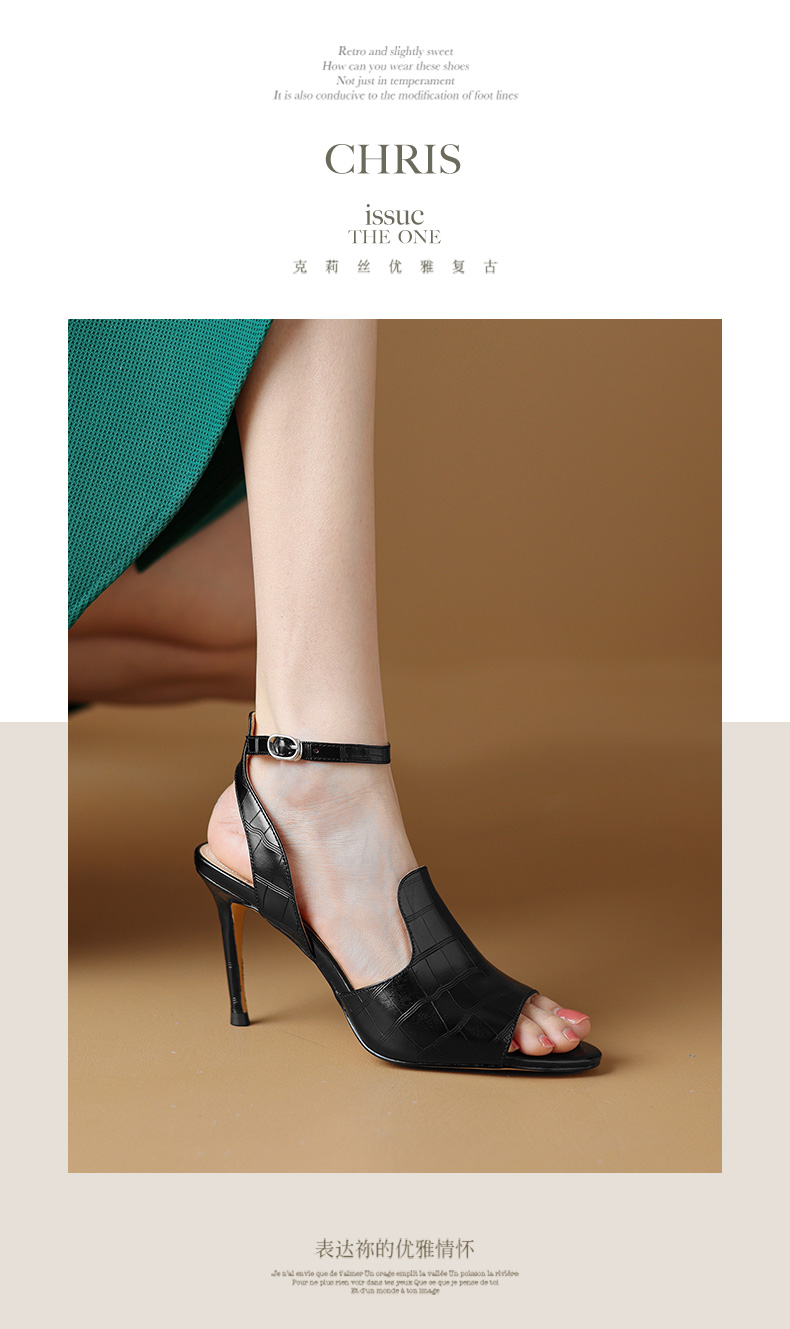 【预售5天】优雅百搭细高跟,里外全皮露趾凉鞋HY&M900-1
