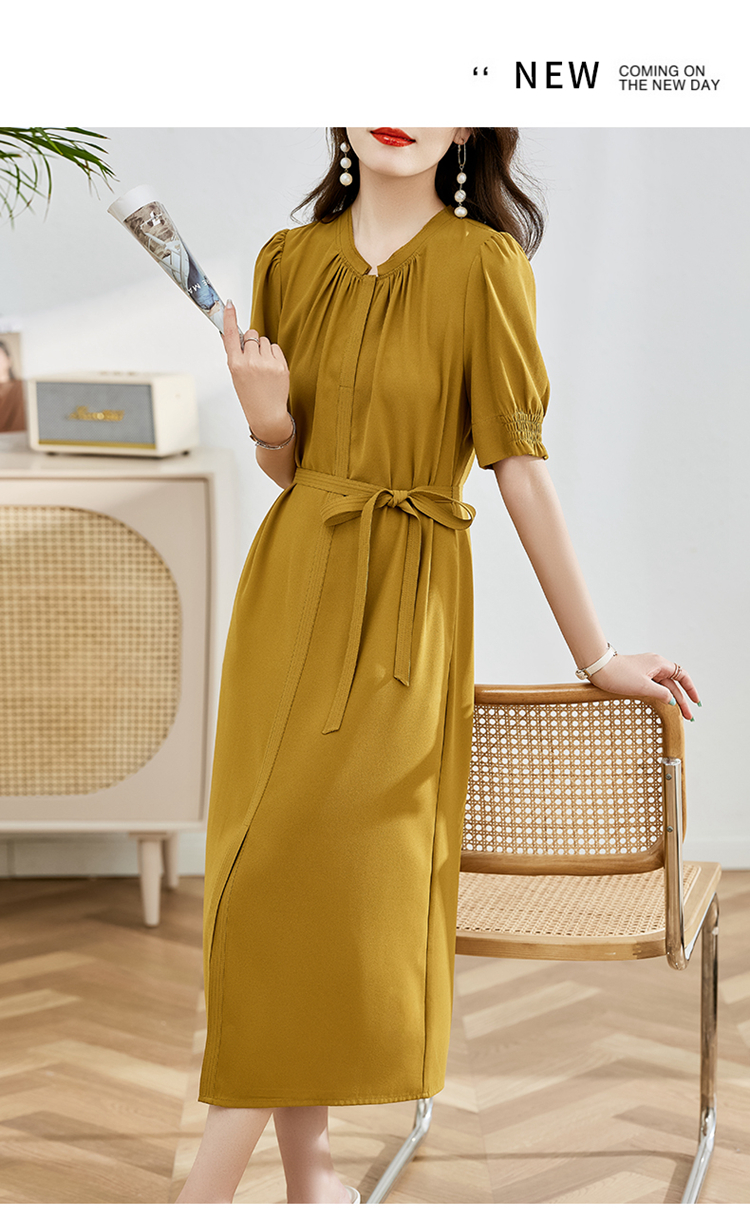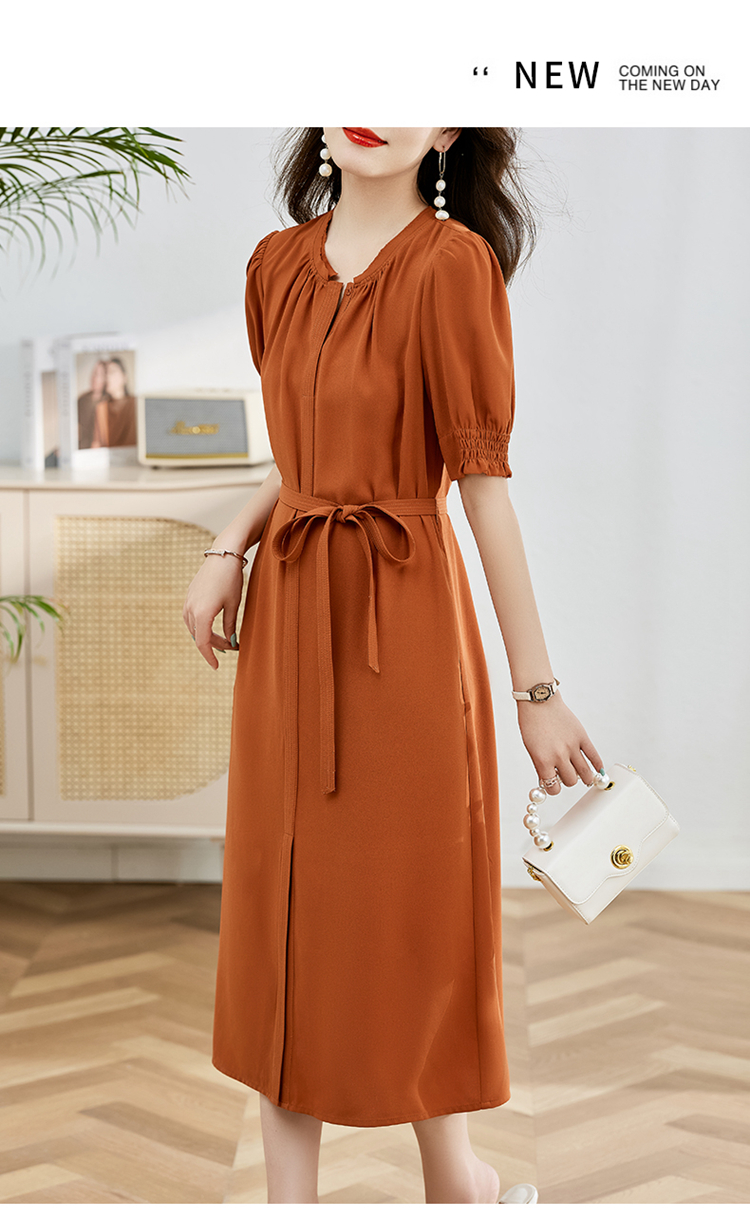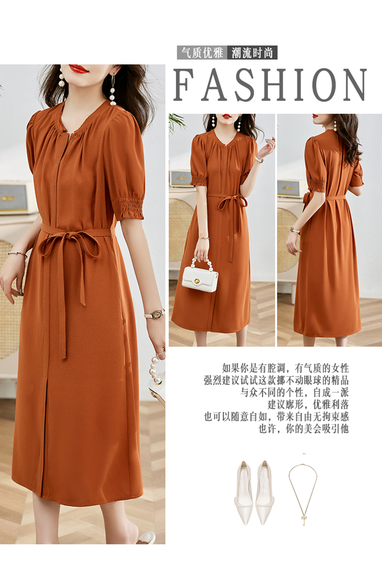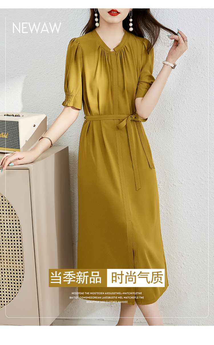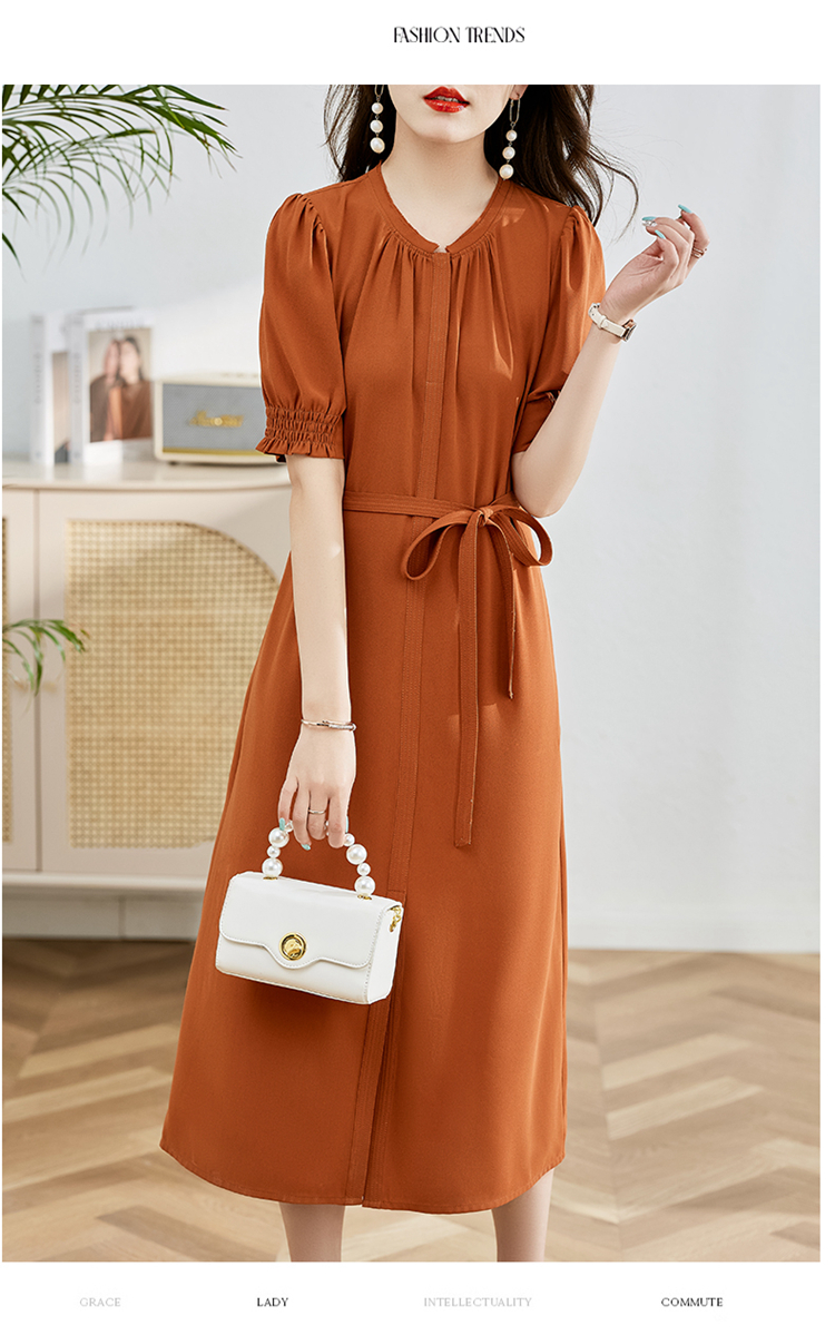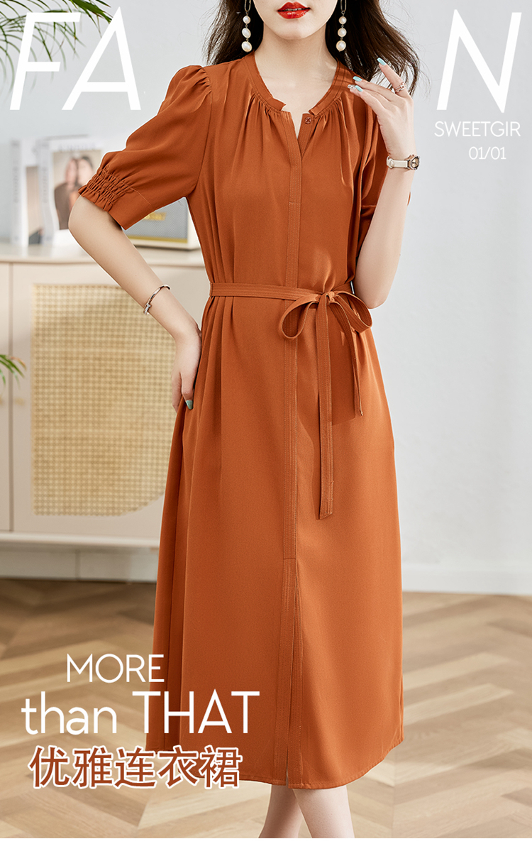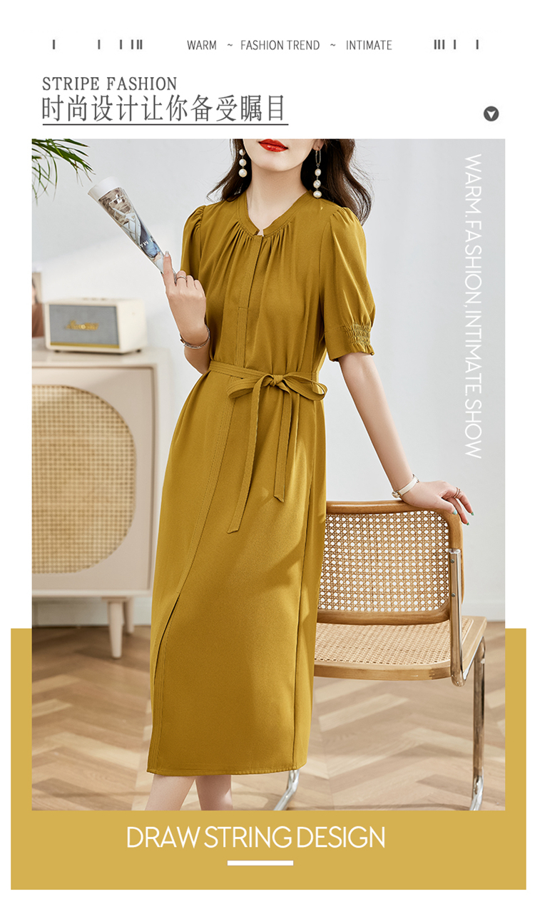 夏季新款,圆领系腰带直筒连衣裙HR-LMYS617-1