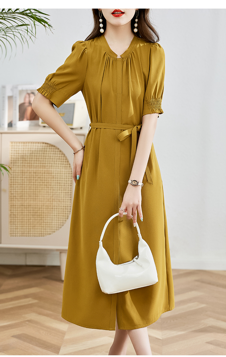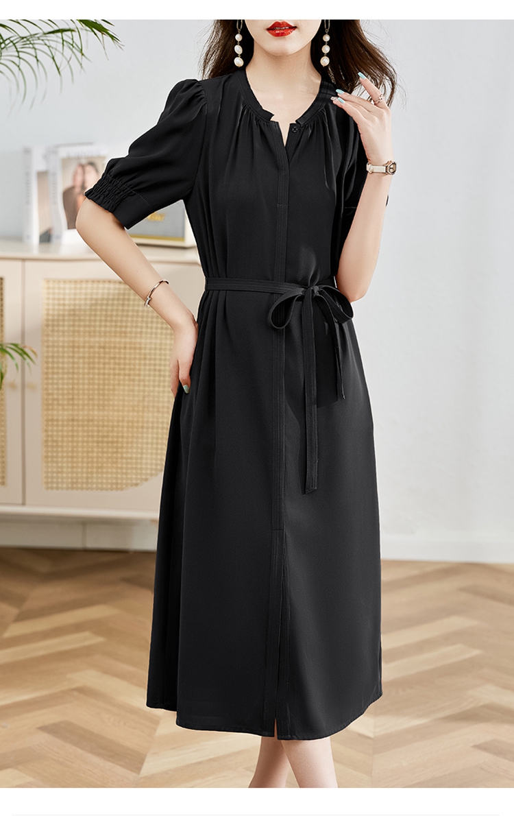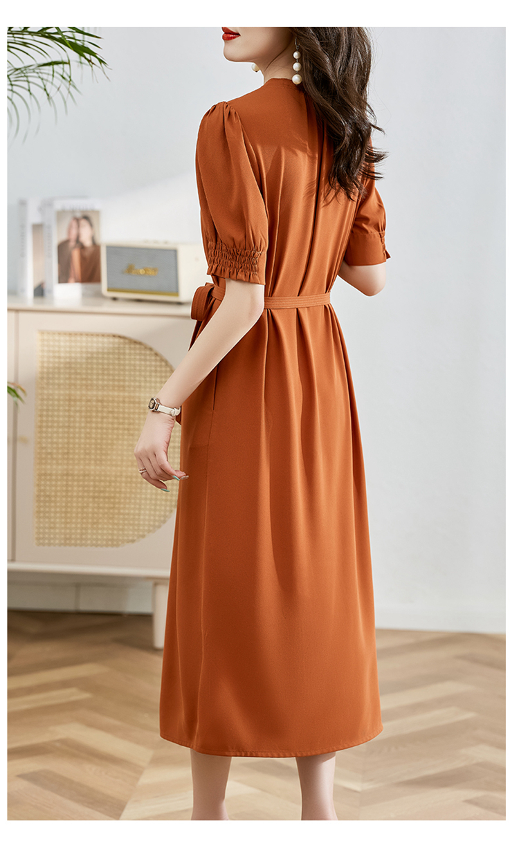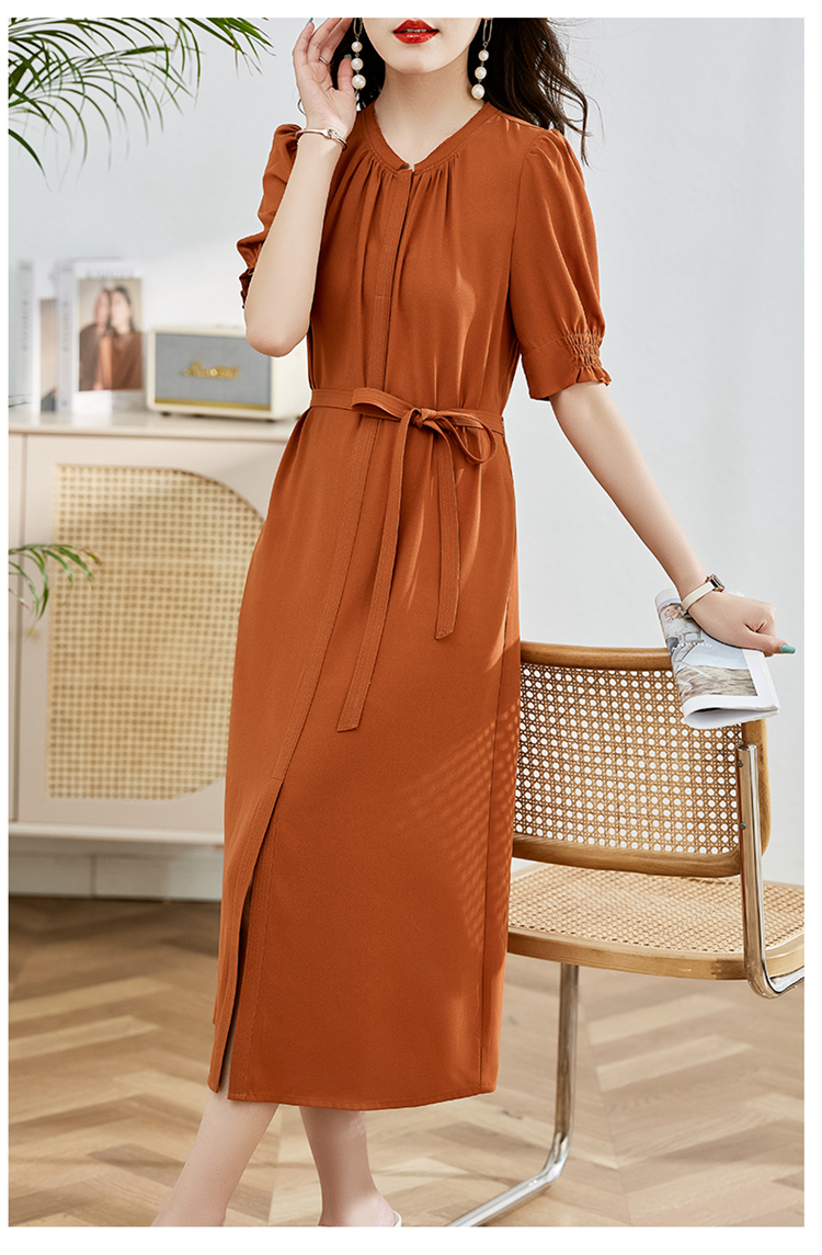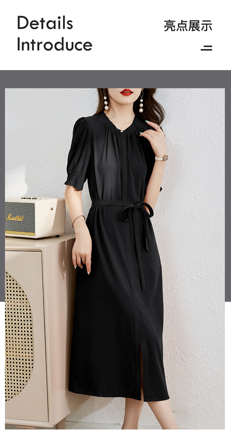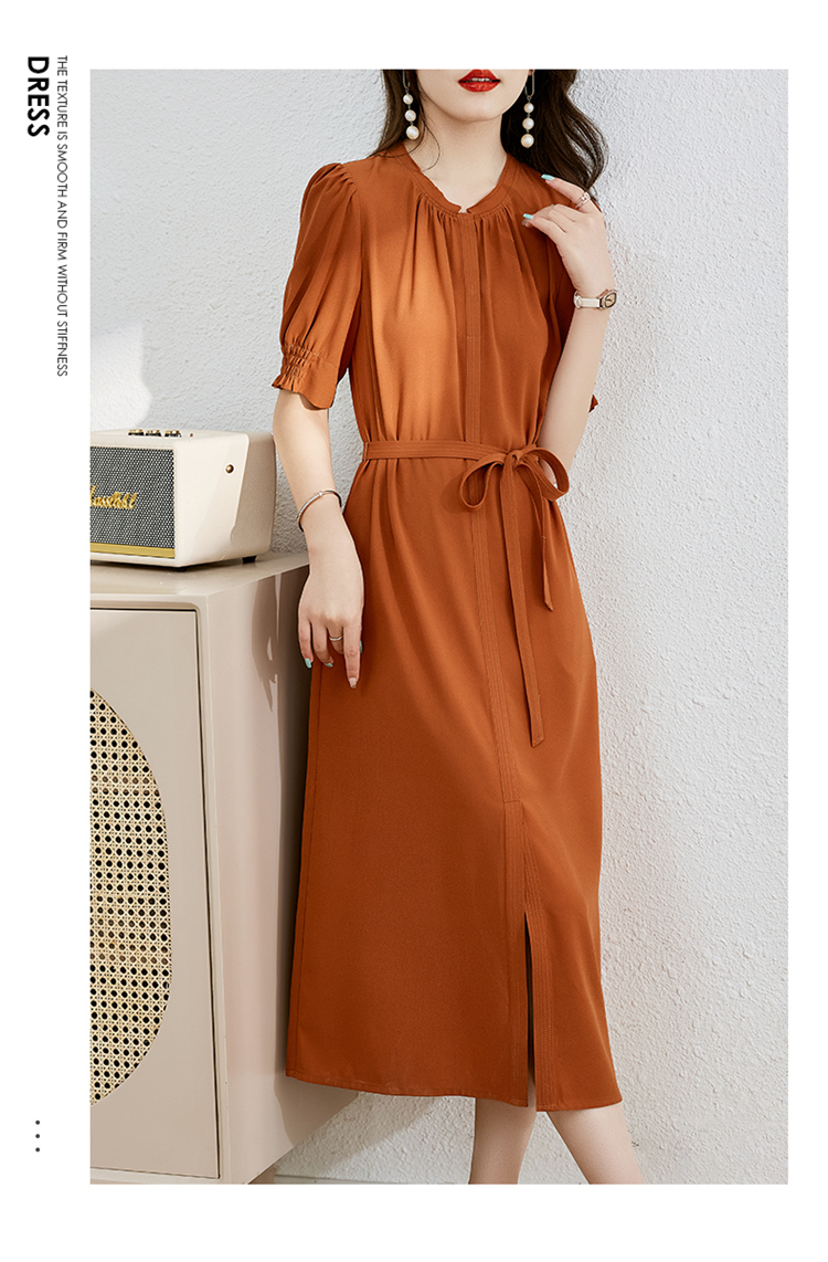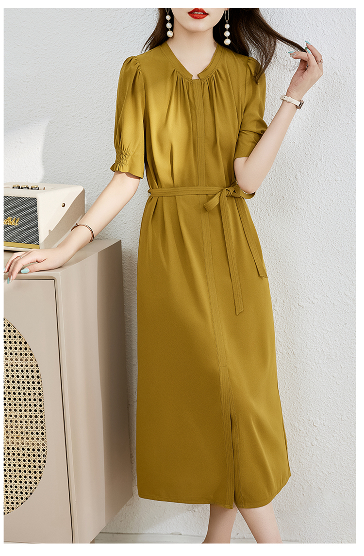 夏季新款,圆领系腰带直筒连衣裙HR-LMYS617-1