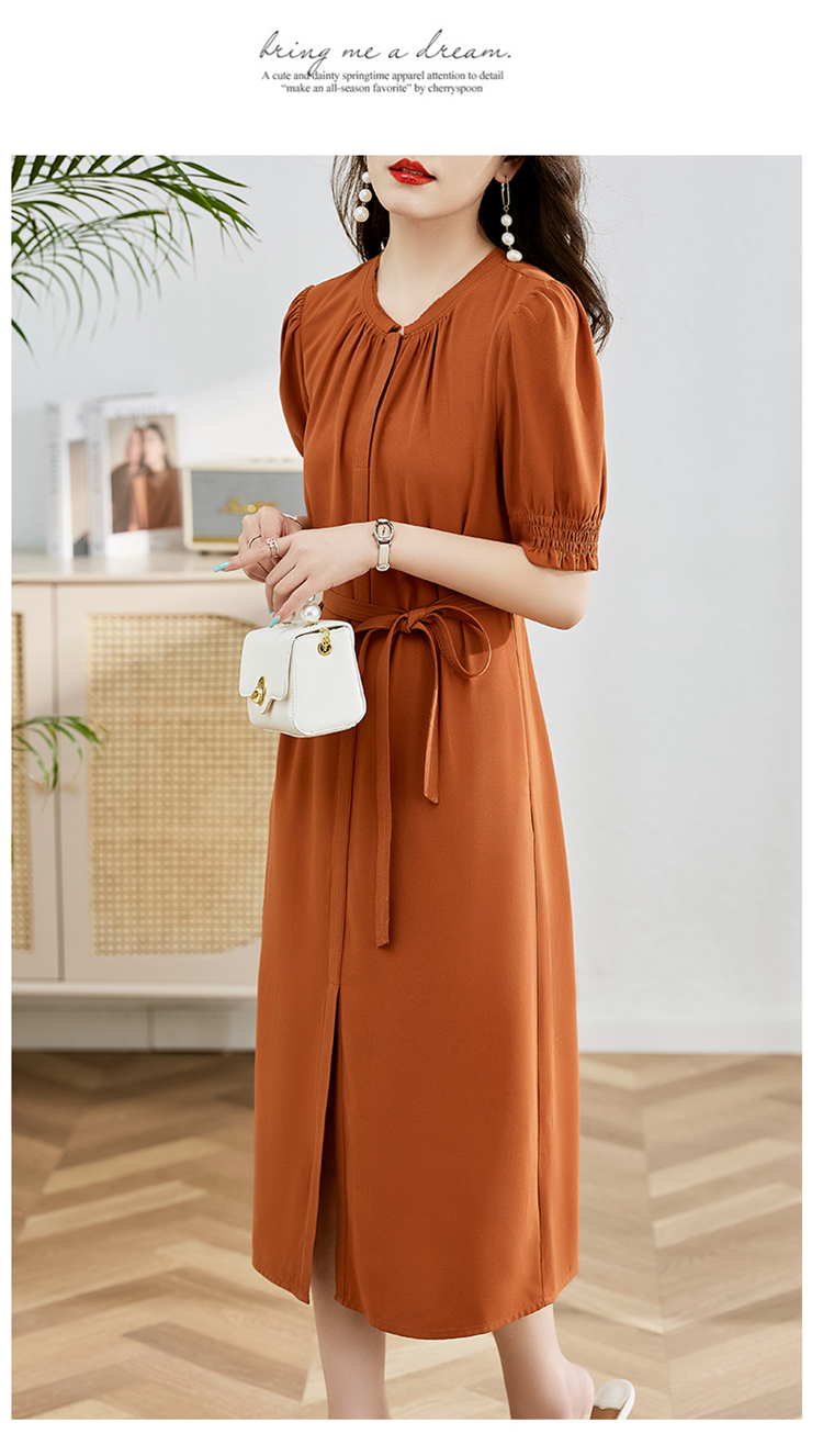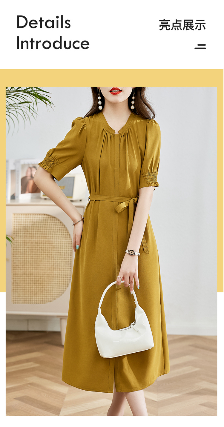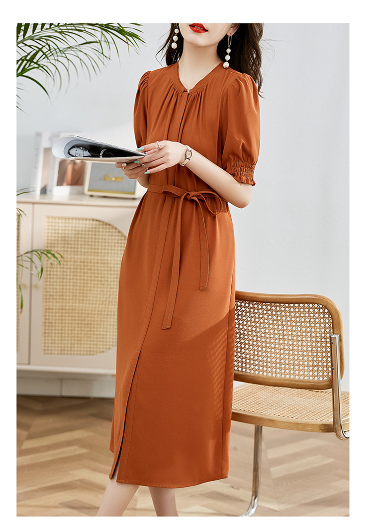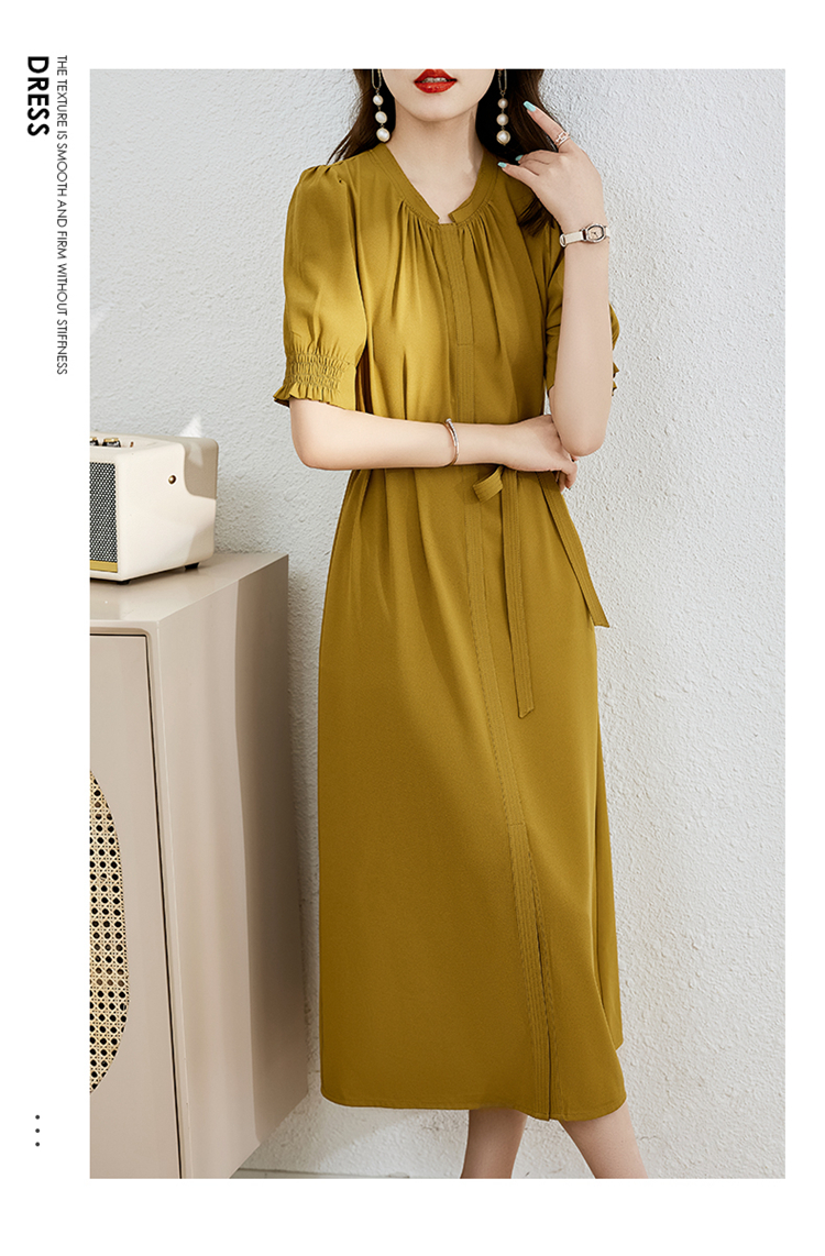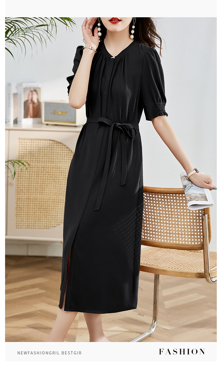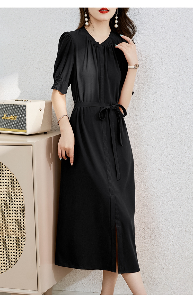 夏季新款,圆领系腰带直筒连衣裙HR-LMYS617-1