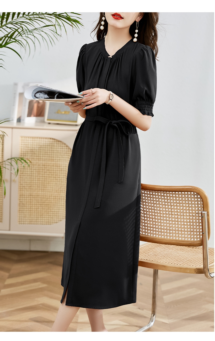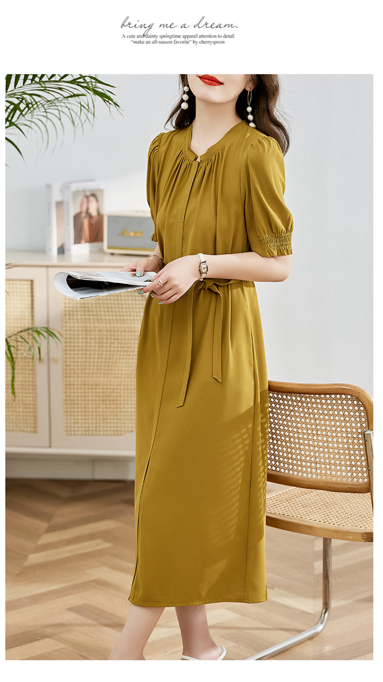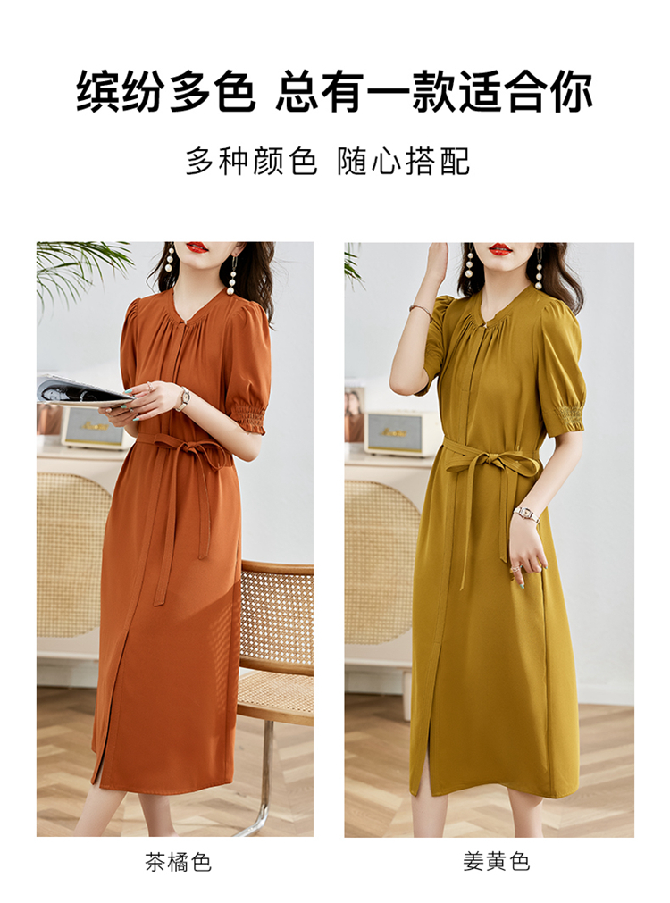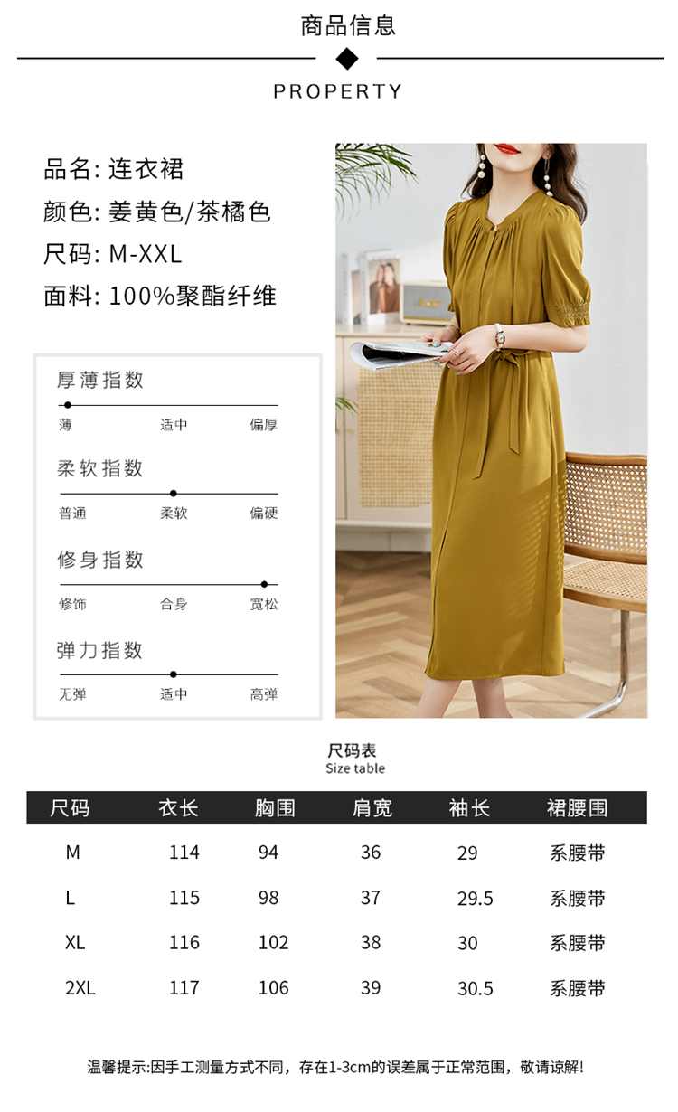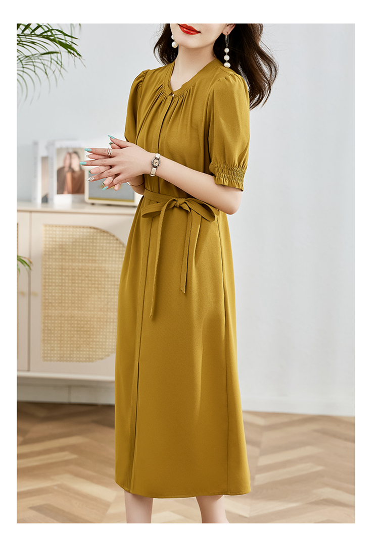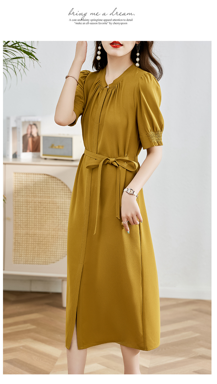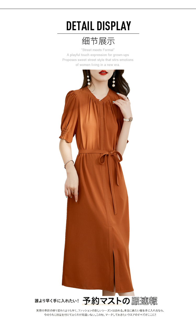 夏季新款,圆领系腰带直筒连衣裙HR-LMYS617-1