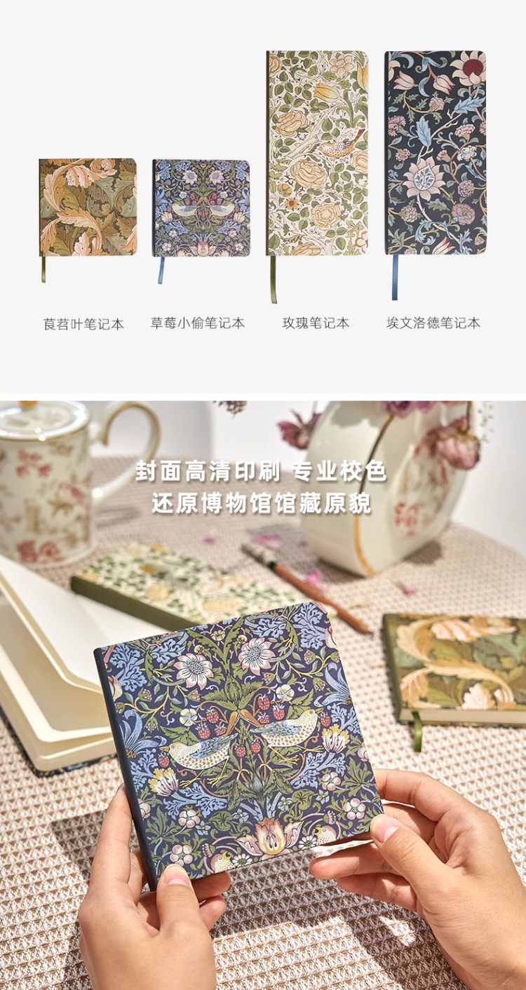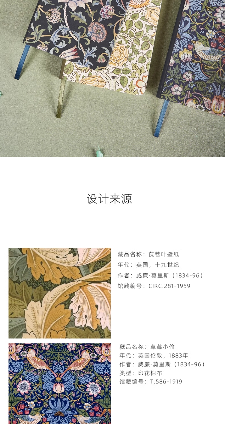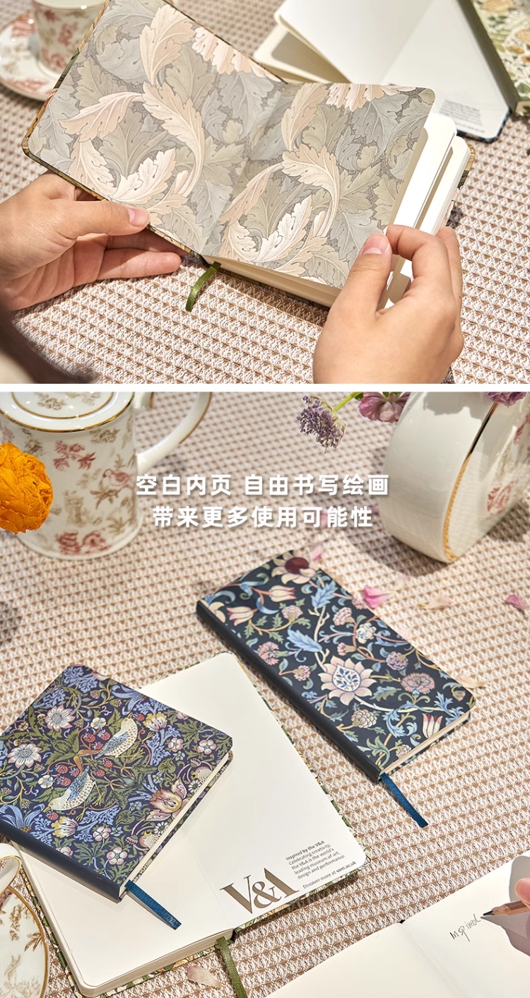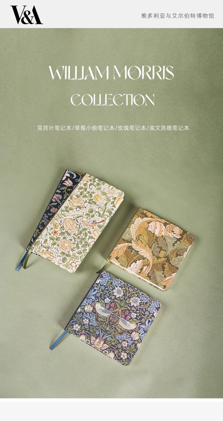V&A博物馆威廉莫里斯系列 茛苕叶玫瑰埃文洛德软面笔记本 长款/方款