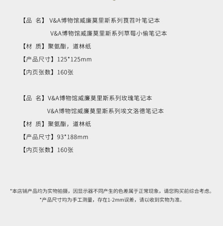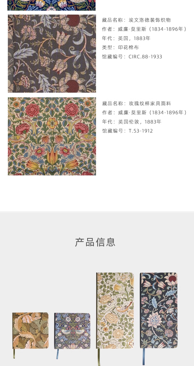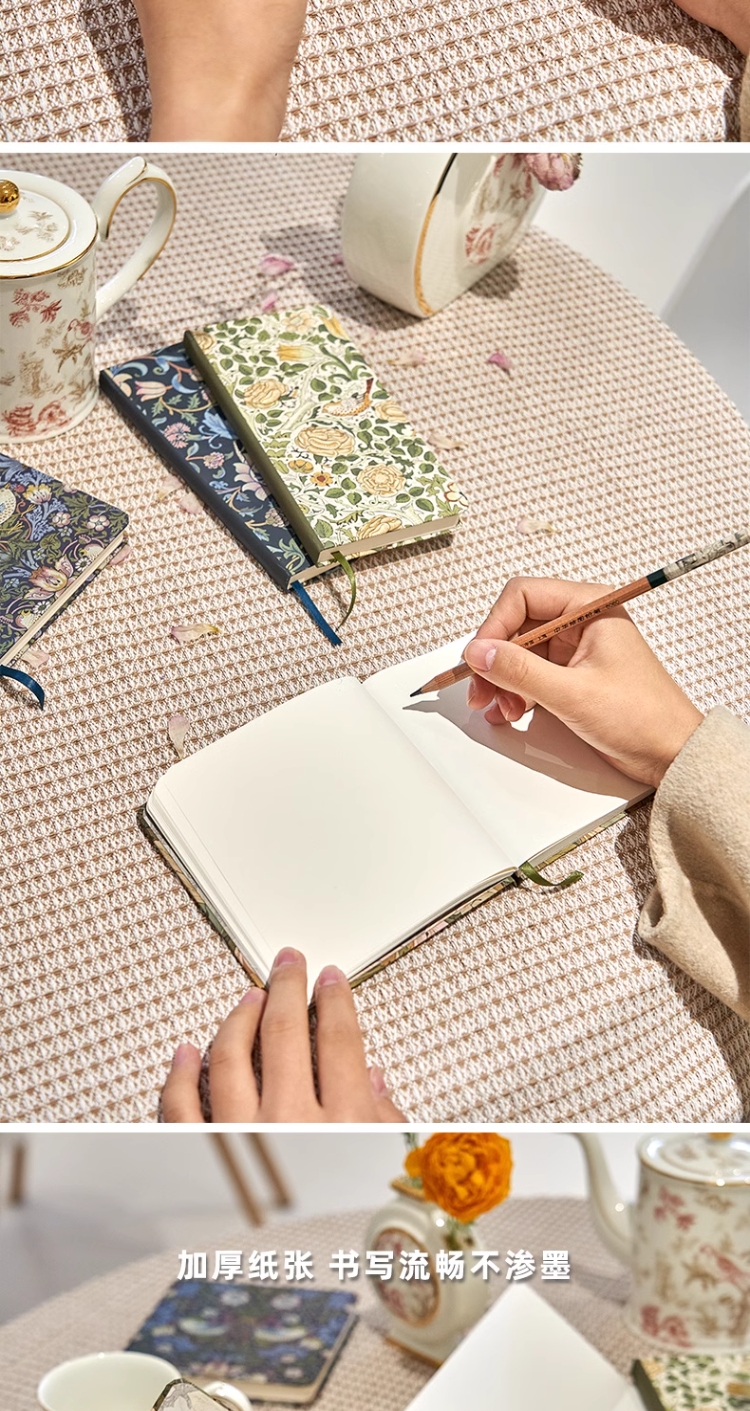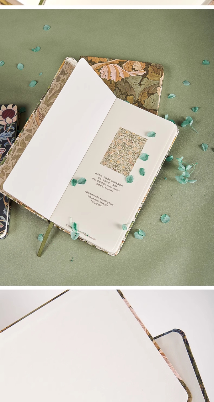 V&A博物馆威廉莫里斯系列 茛苕叶玫瑰埃文洛德软面笔记本 长款/方款