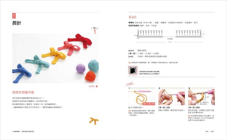 全書搭配定格圖解步驟、彩色編織圖以及教學影片QR code,