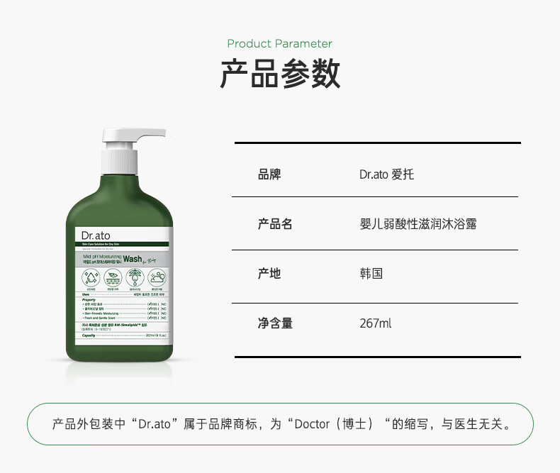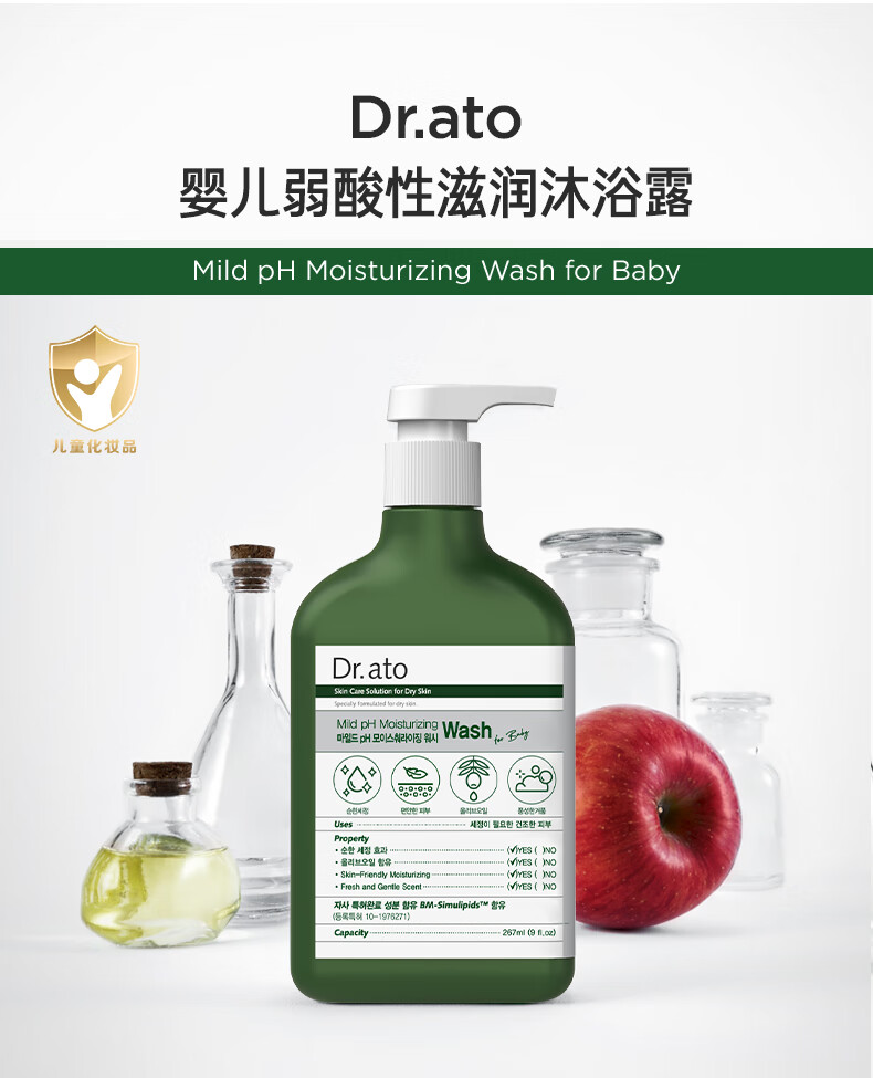 爱托Dr.ato 儿童沐浴露 青少年类胎脂专利弱酸性保湿舒缓滋润沐浴露