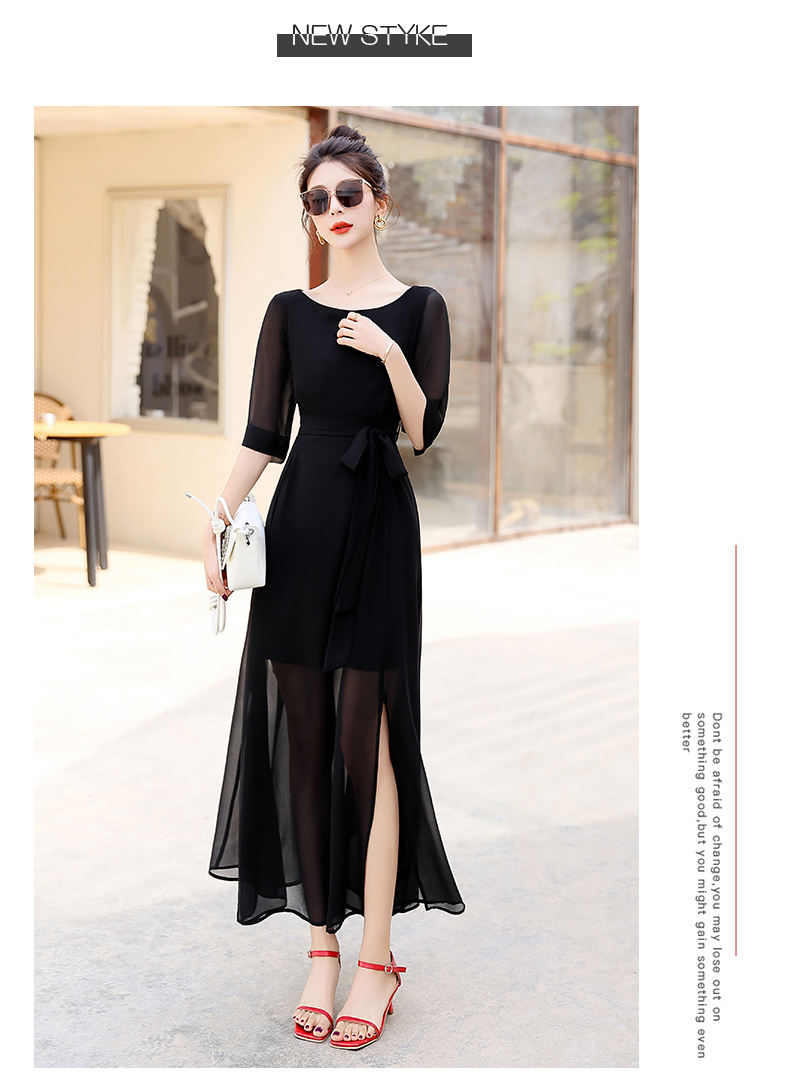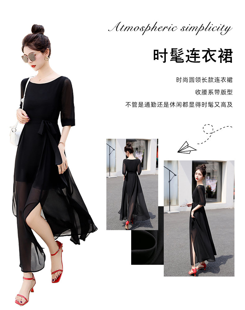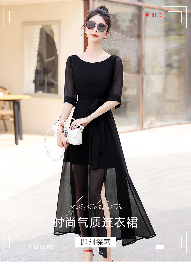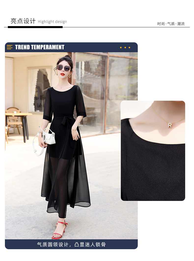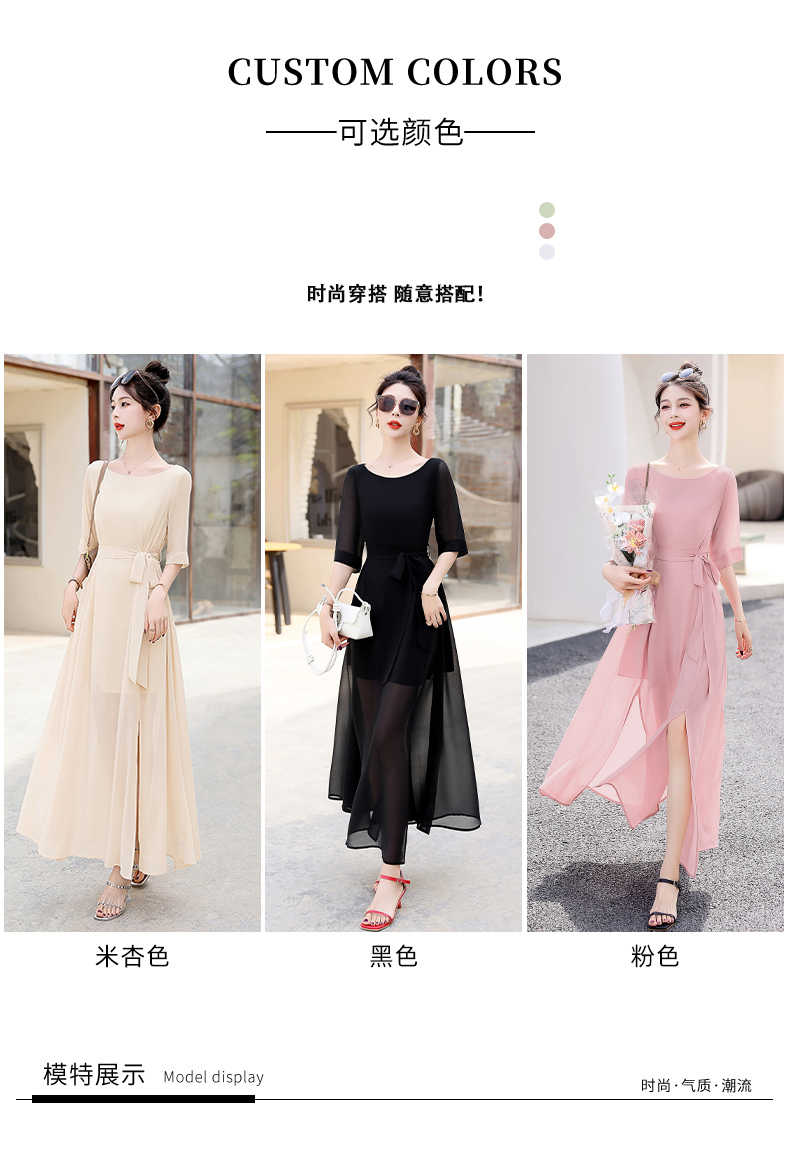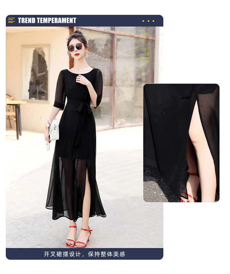 夏季新款,高腰五分袖时尚气质下摆开叉雪纺连衣裙HR-GJC2326-7
