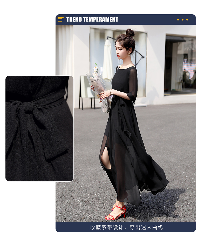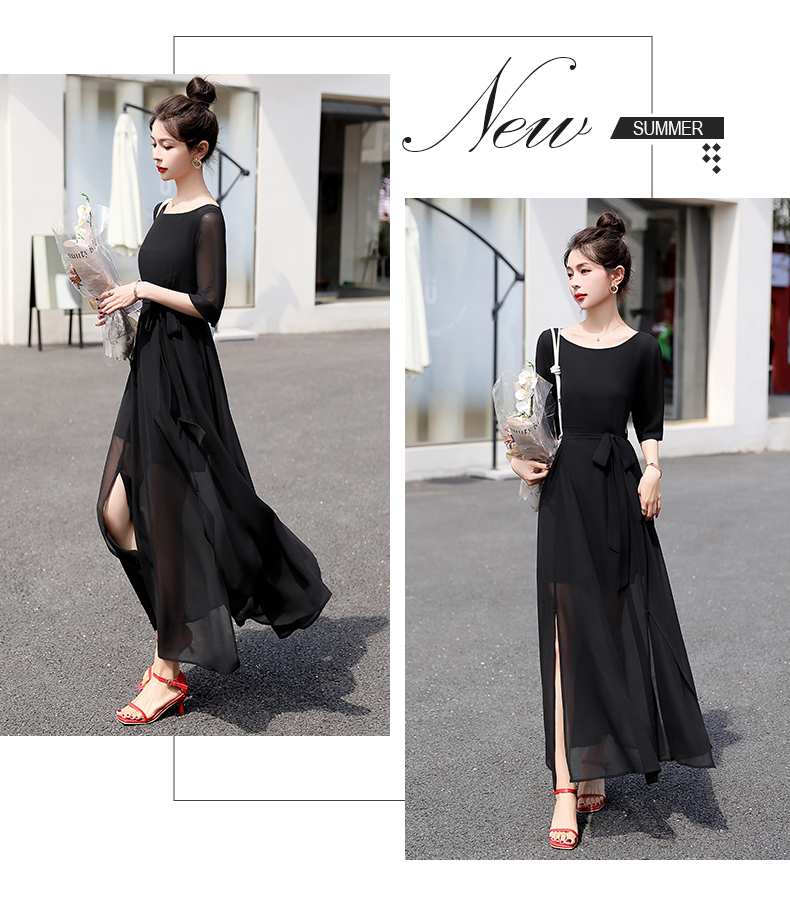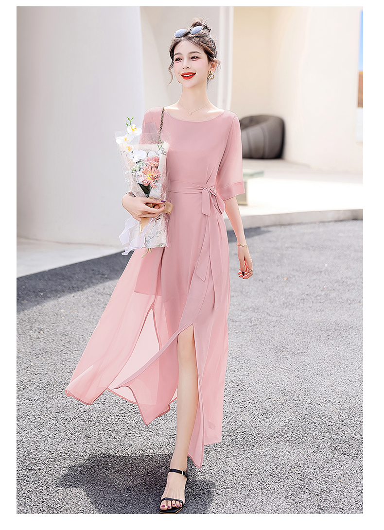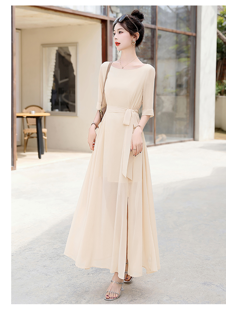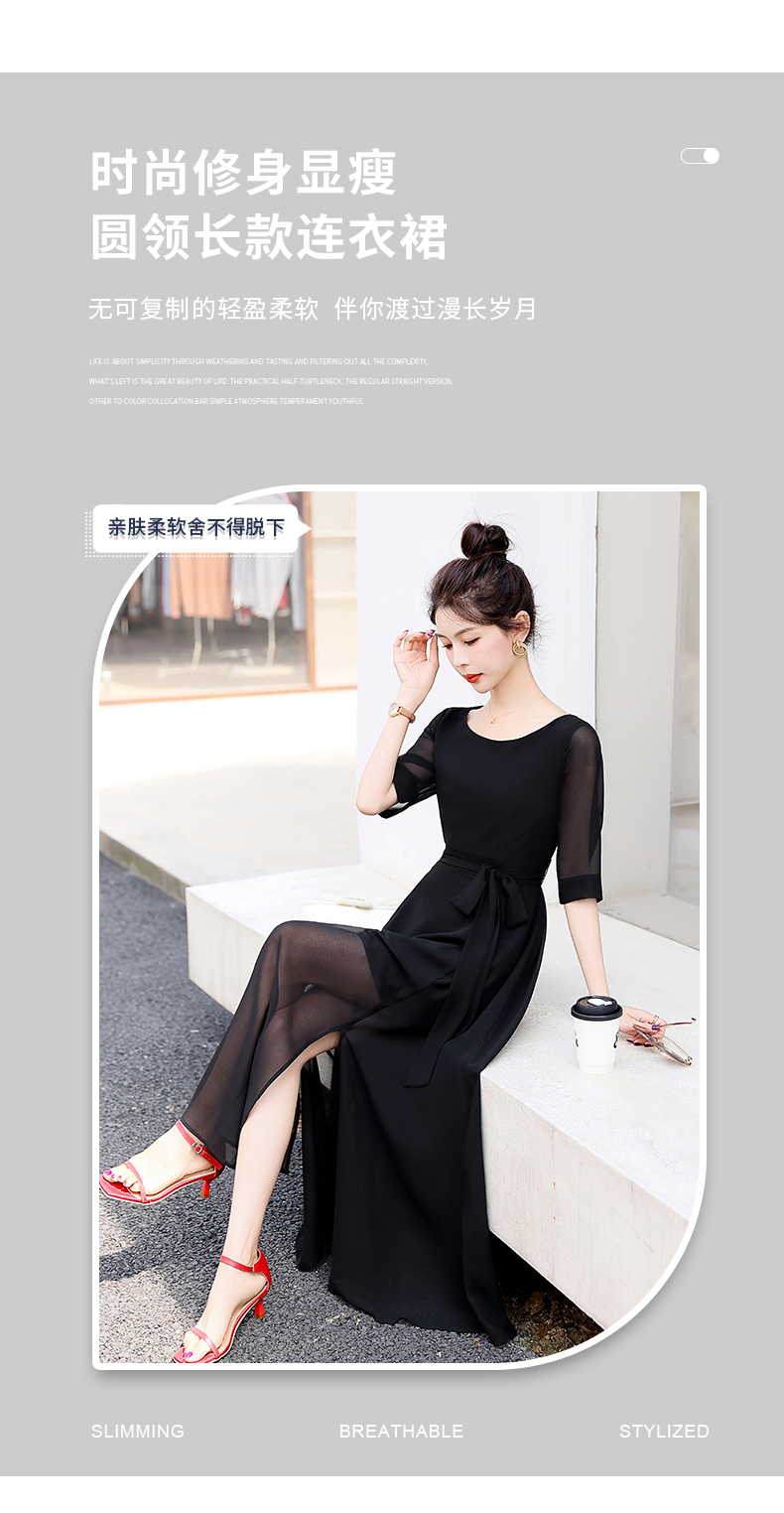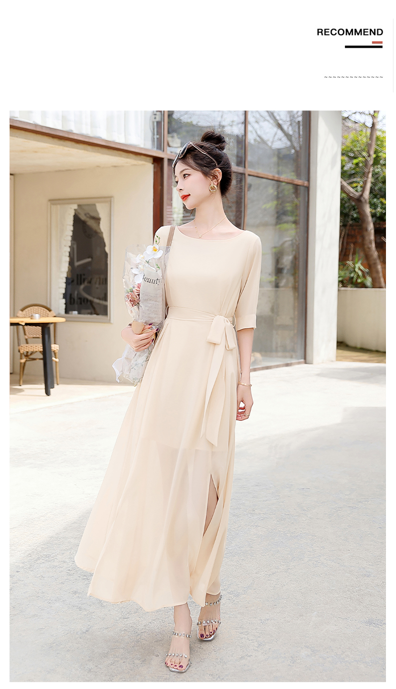 夏季新款,高腰五分袖时尚气质下摆开叉雪纺连衣裙HR-GJC2326-7