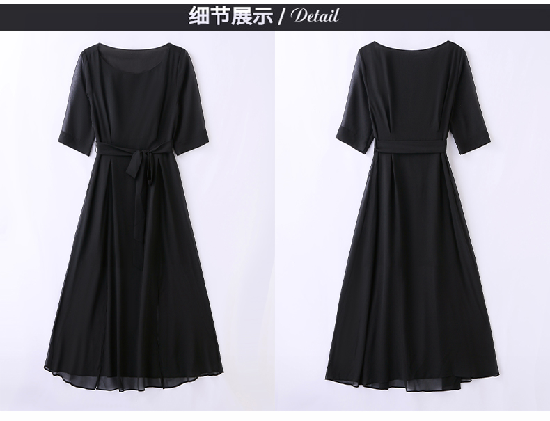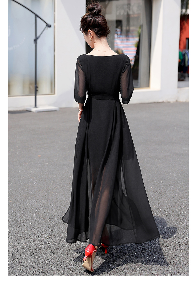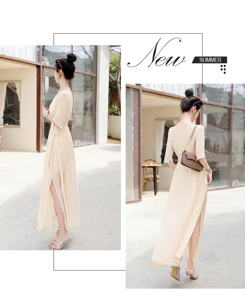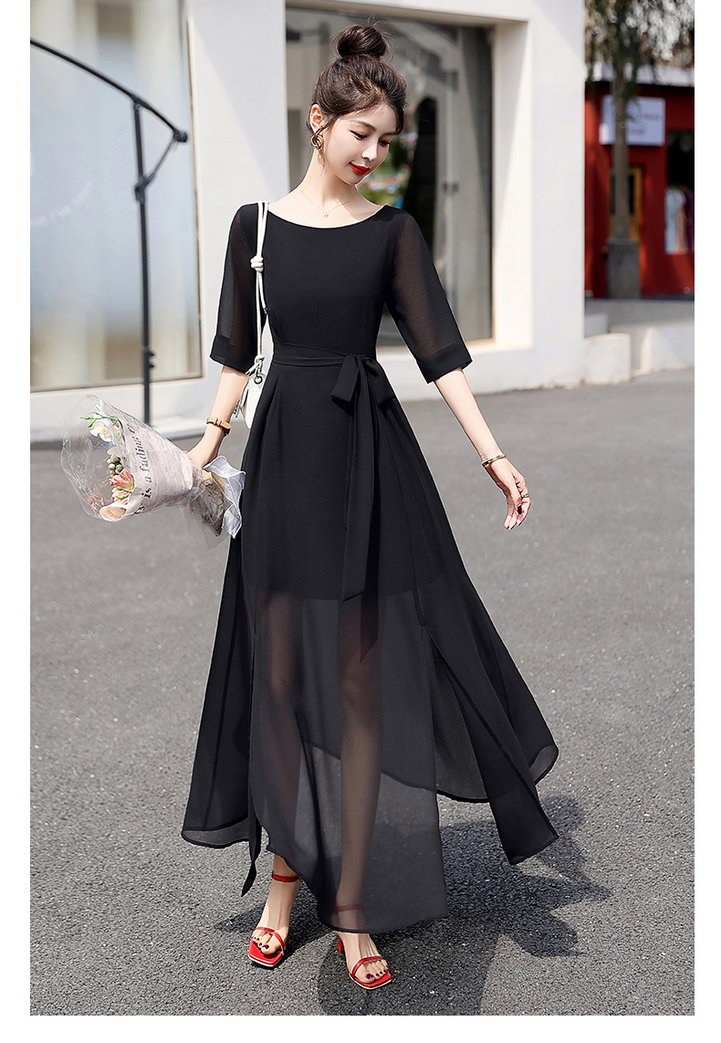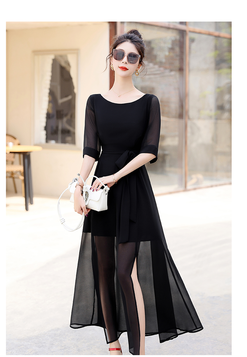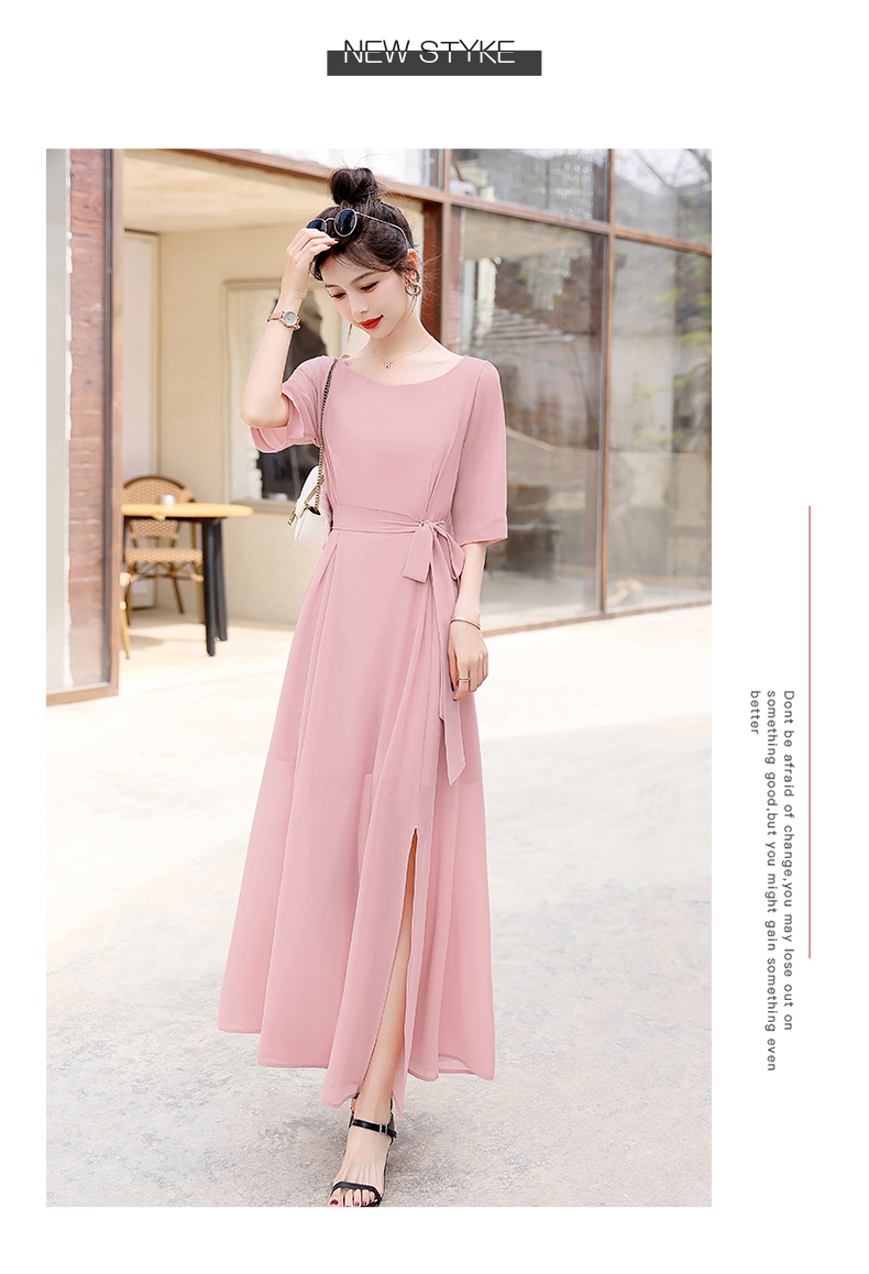 夏季新款,高腰五分袖时尚气质下摆开叉雪纺连衣裙HR-GJC2326-7