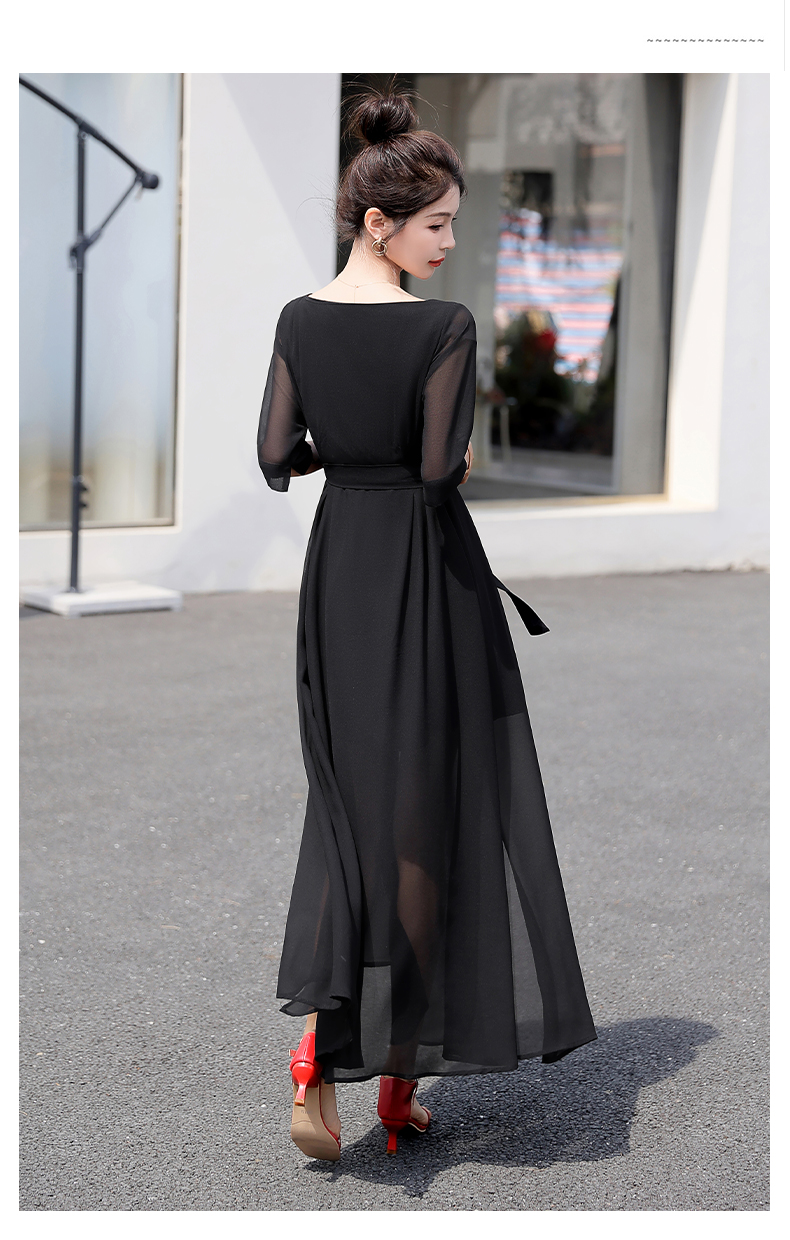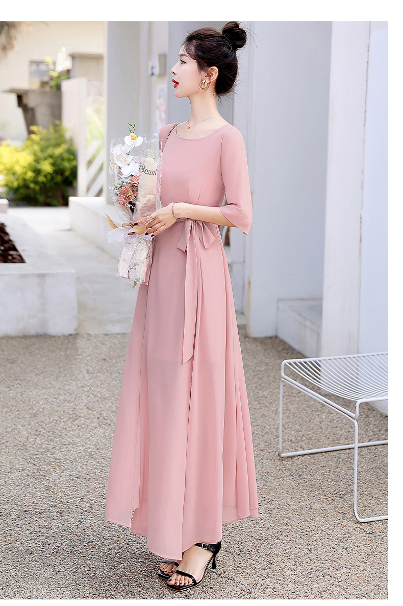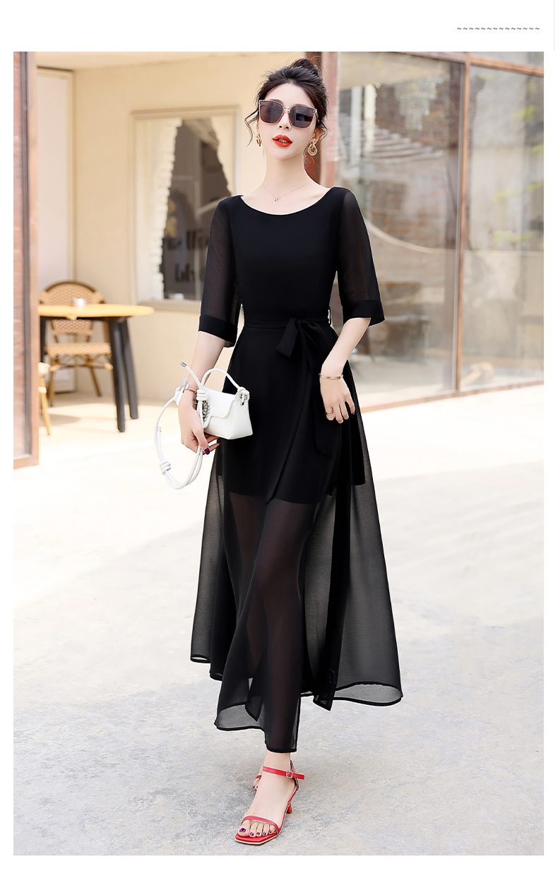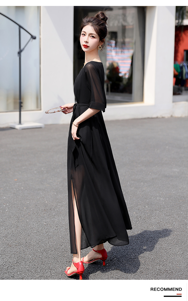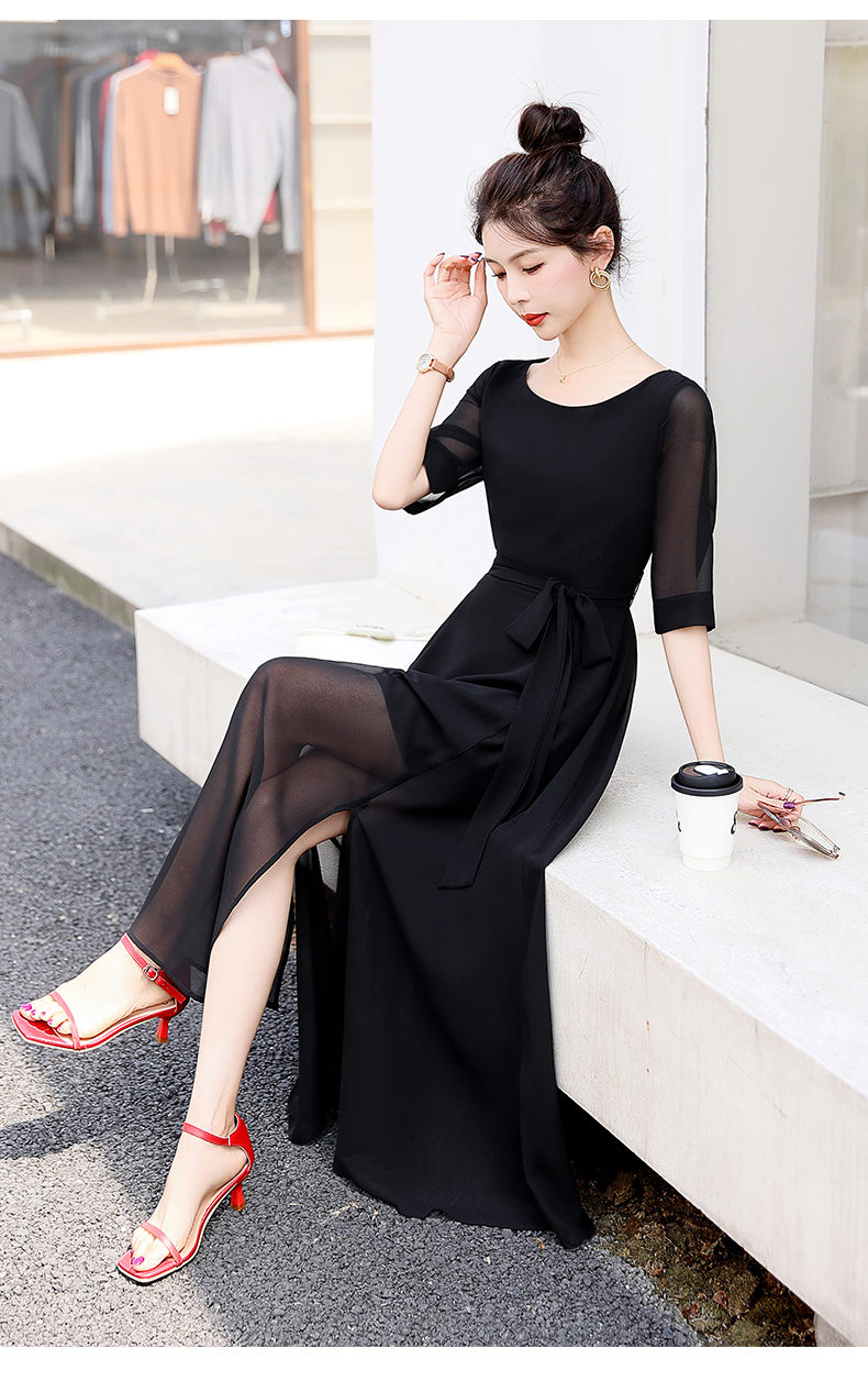 夏季新款,高腰五分袖时尚气质下摆开叉雪纺连衣裙HR-GJC2326-7