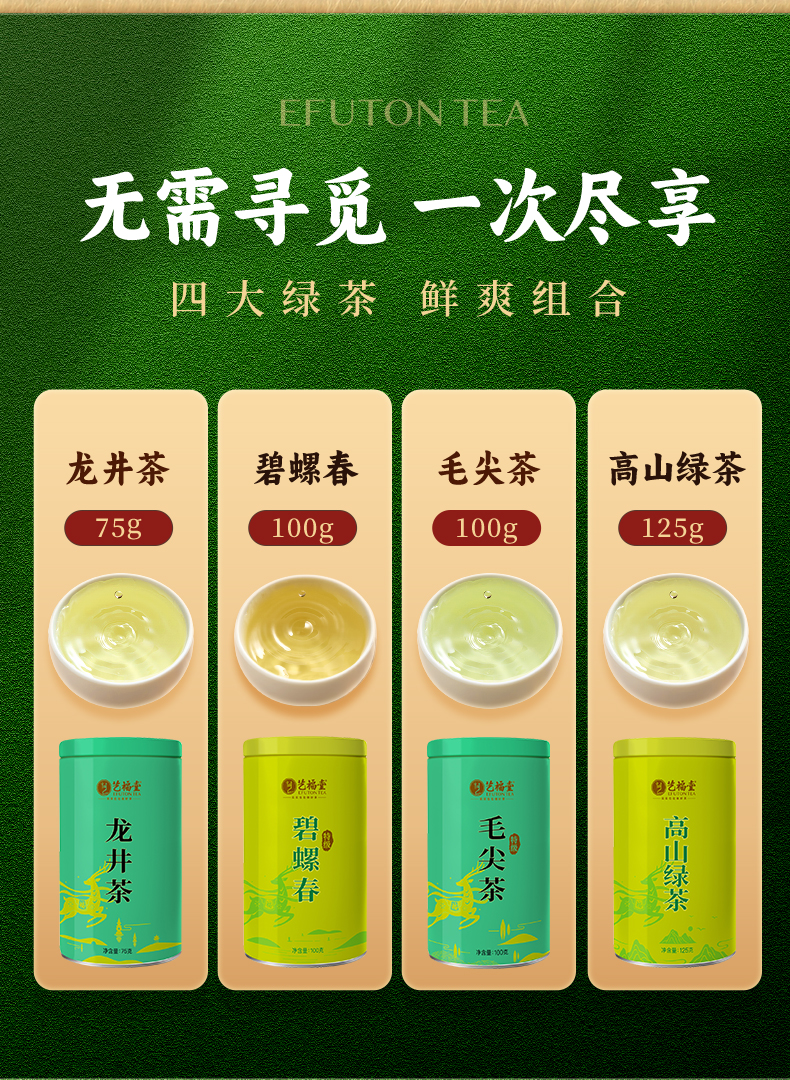 艺福堂四大绿茶+手提袋*2+水晶杯*1
