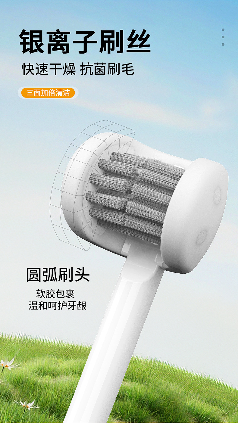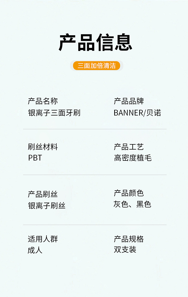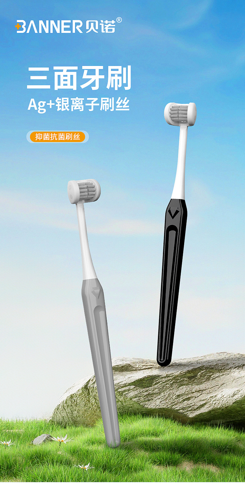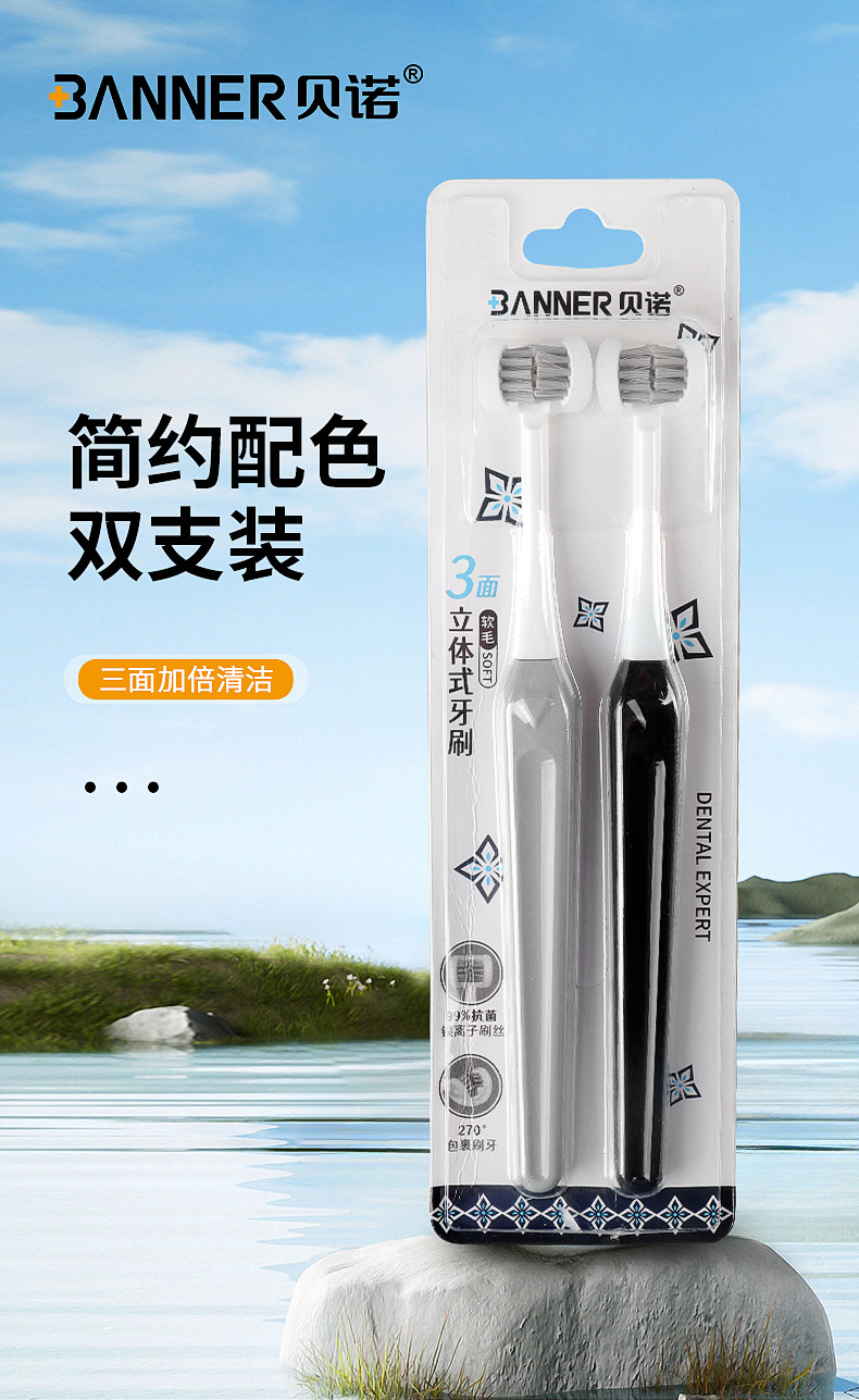 【刷牙无死角,抗菌刷毛】BANNER/贝诺三面牙刷 Ag银离子抗菌刷丝 三倍清洁 双支装