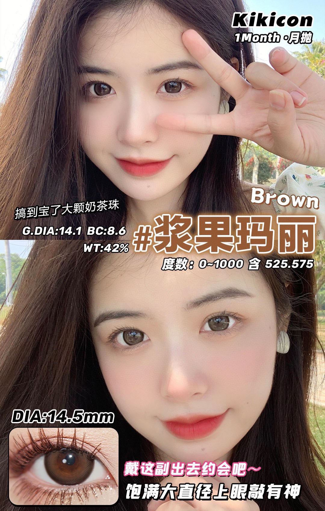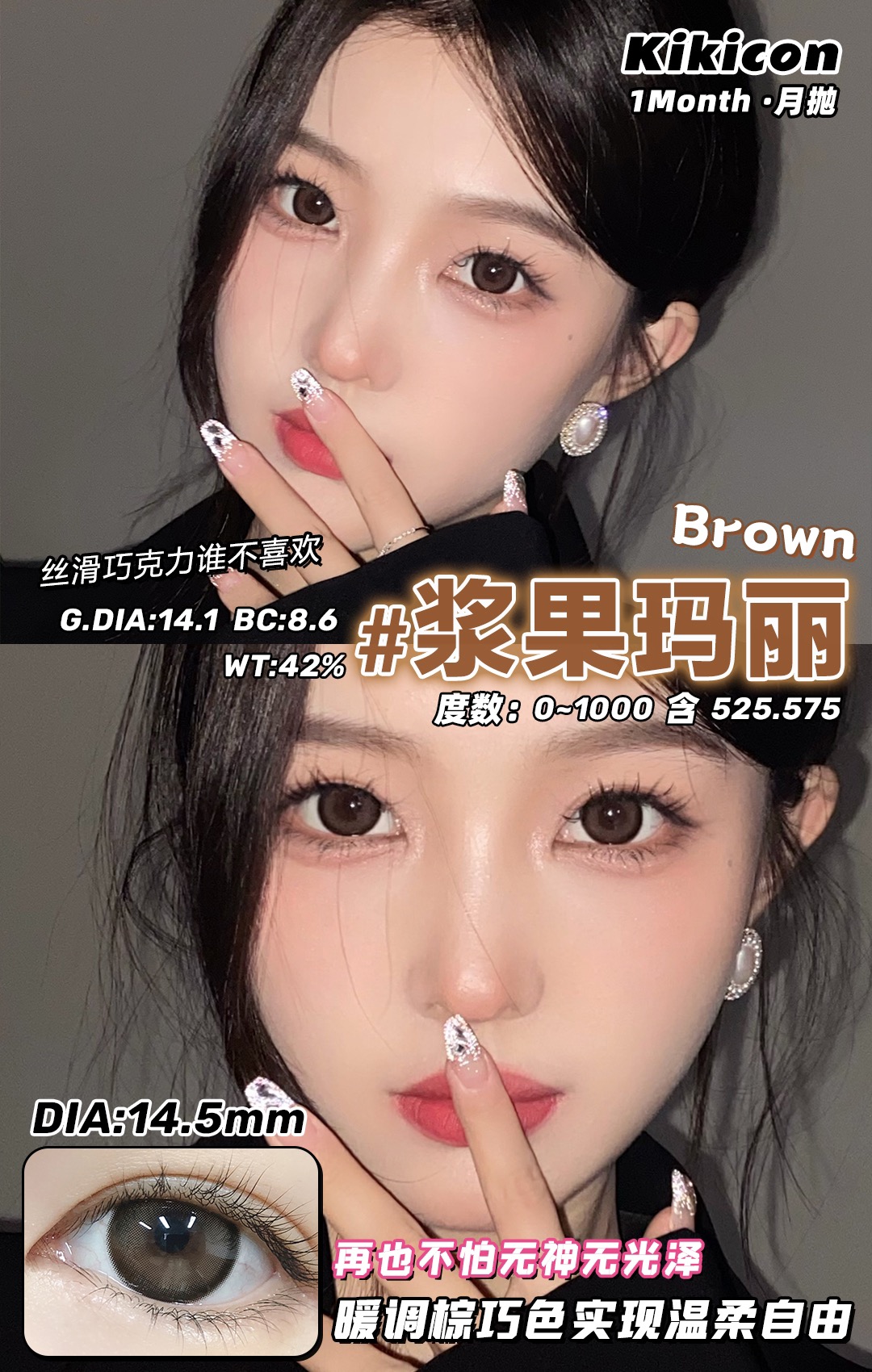 kikicon 月抛 浆果玛丽 棕巧 14.5mm 2片装 含硅水凝胶