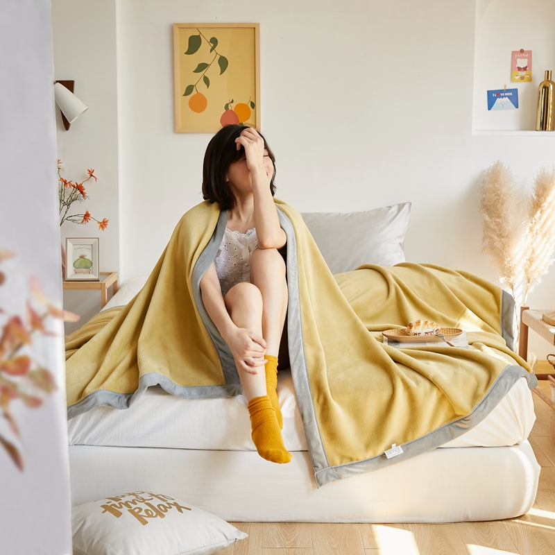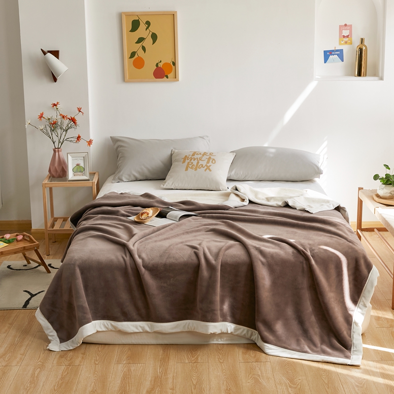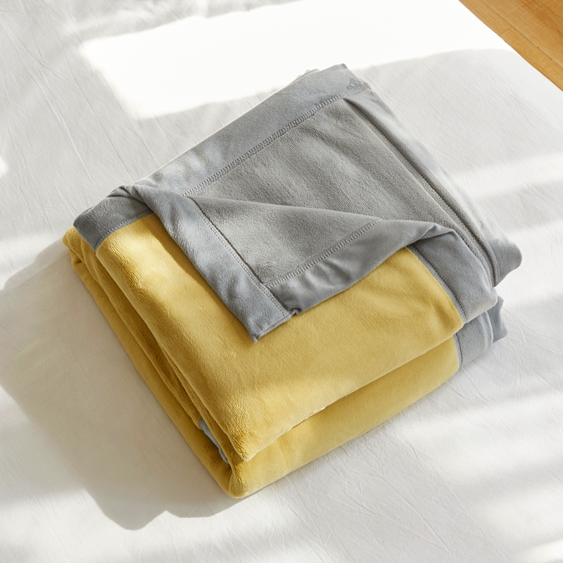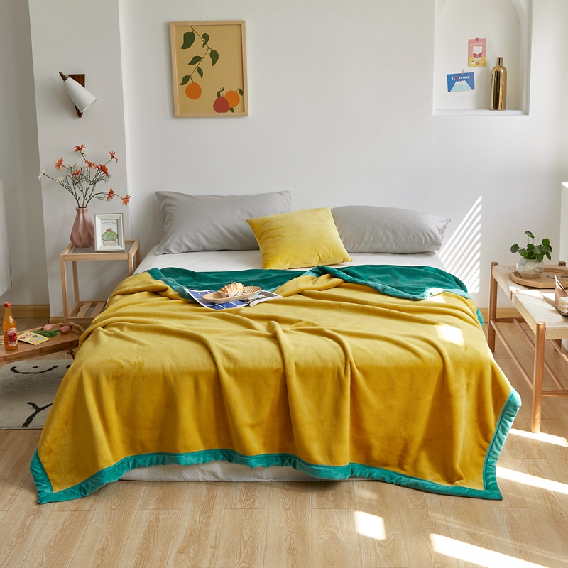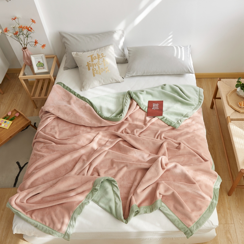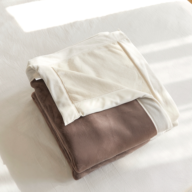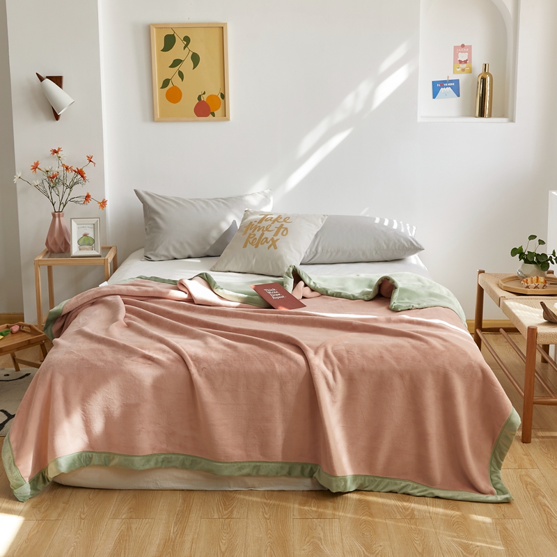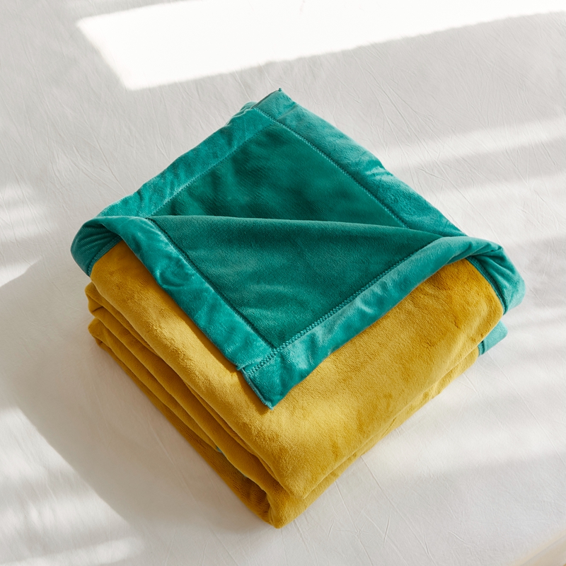 【双拼毛毯】毛毯双拼秋冬加厚毯子纯色撞色盖毯简约拼色保暖毯子 良品