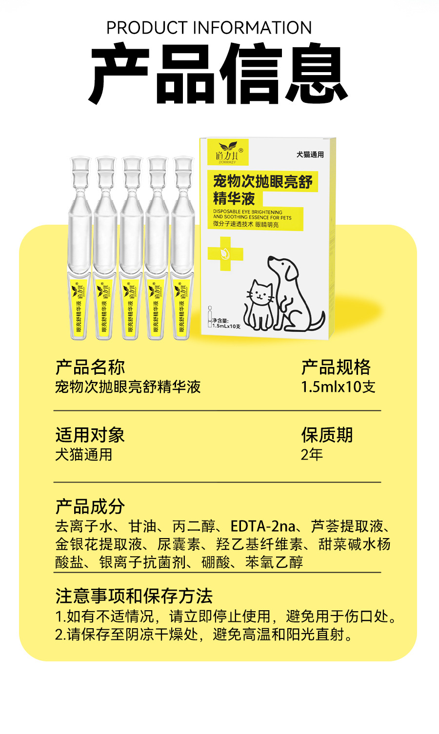 道力其宠物次抛眼液1.5mlX10支装一次性猫咪滴眼液狗狗眼部洗眼液