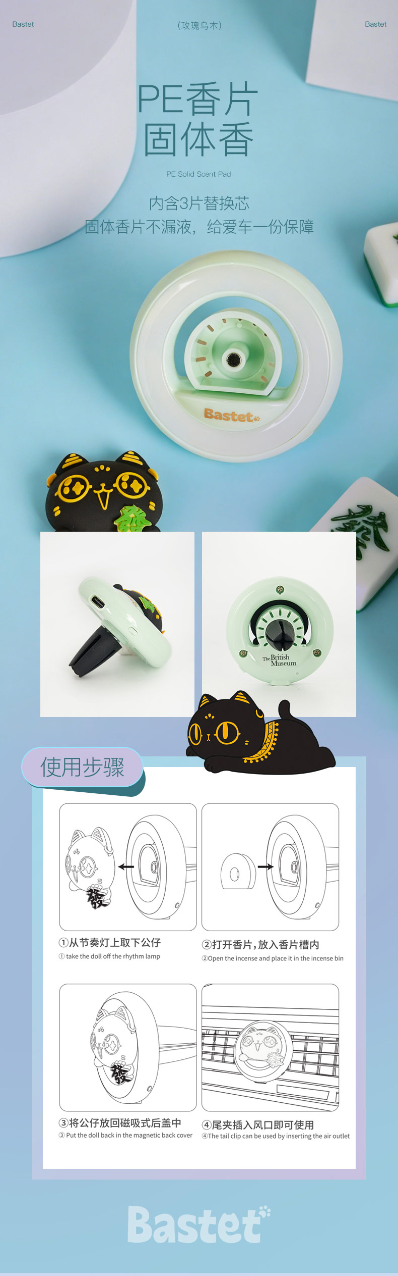 大英博物馆 巴斯特系列 萌猫抱发动感 车载香薰