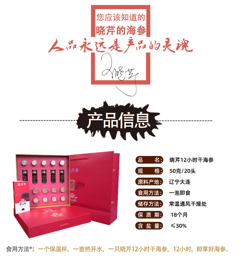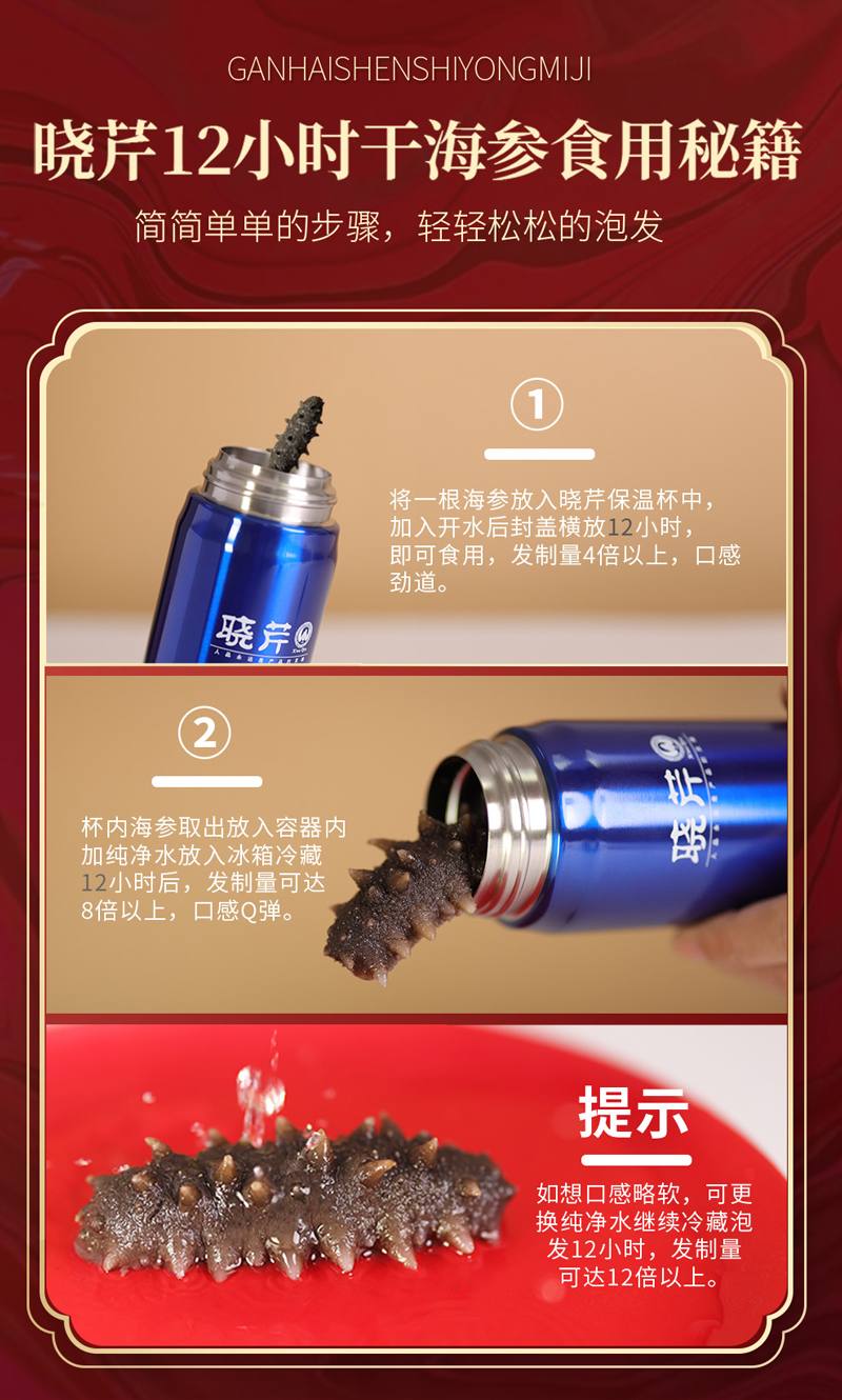 [晓芹]12小时干海参( 20根/50g)送泡发杯1个