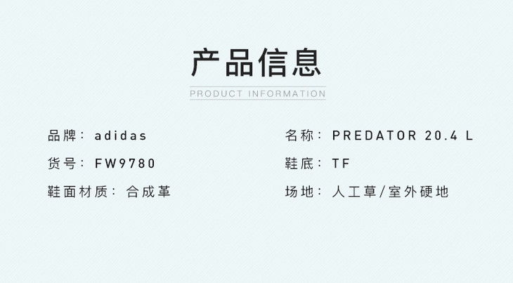 ADIDAS/阿迪达斯 PREDATOR 20.4 H&L TF J儿童足球鞋FW9780