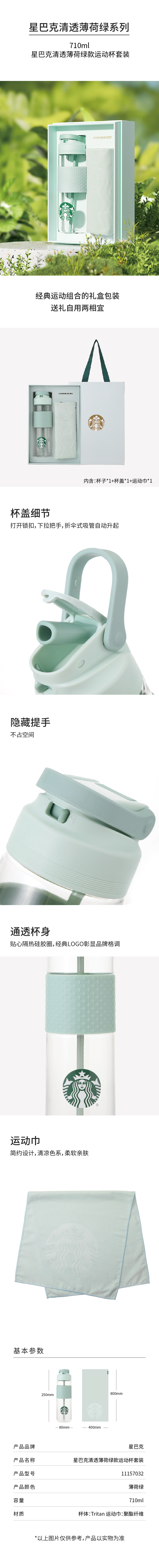 11157032 星巴克清透薄荷绿款运动杯套装