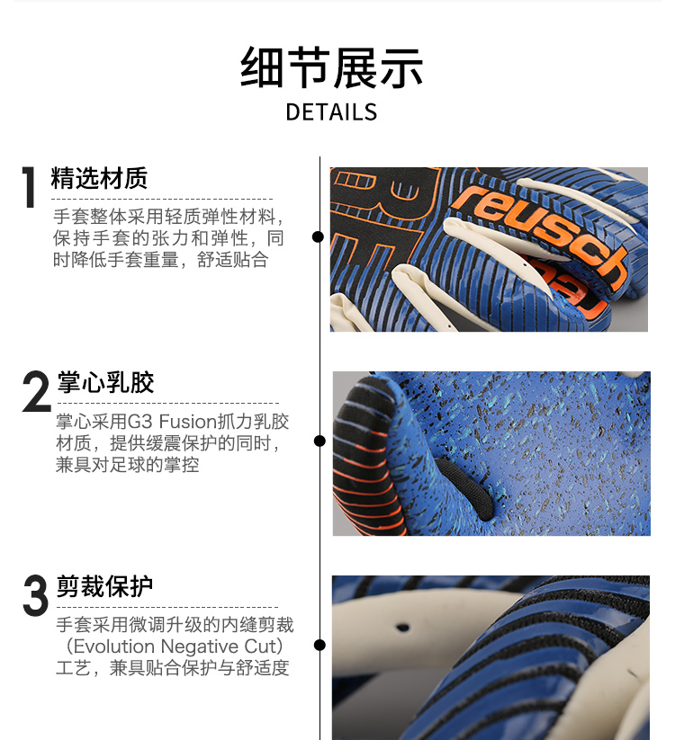 正品REUSCH炫驰PURE CONTACT 3 G3 FUSION门将守门员手套50709007083