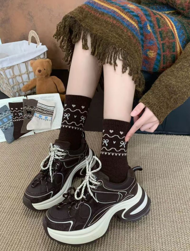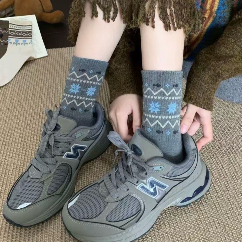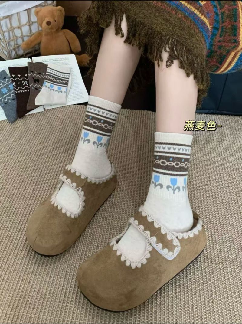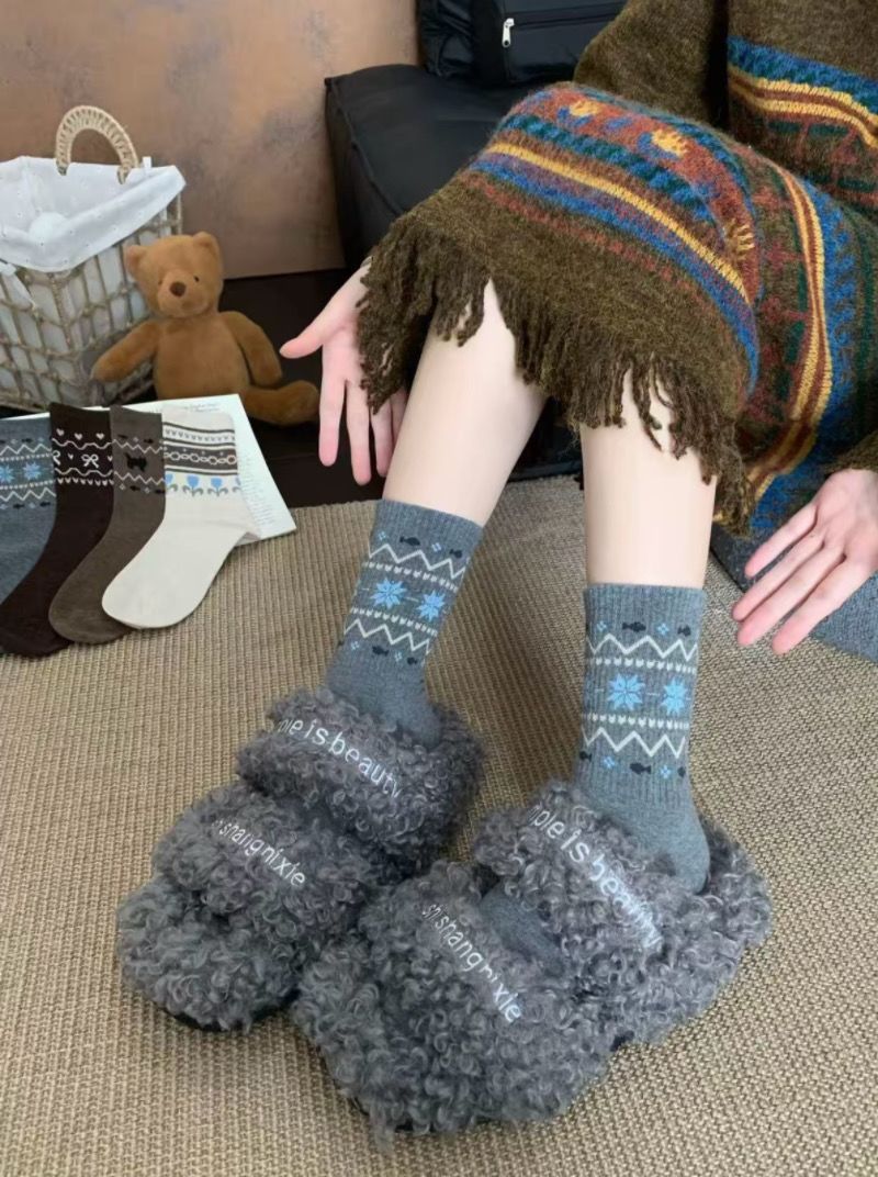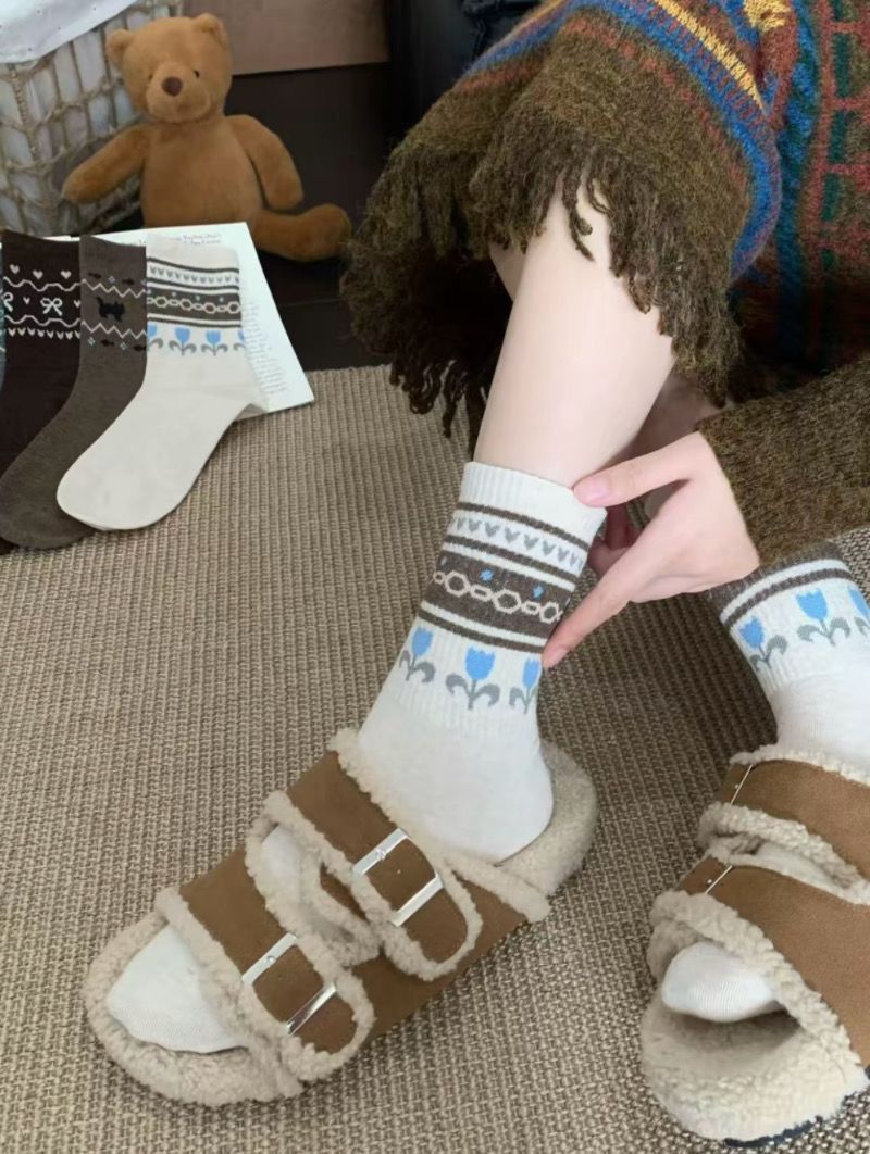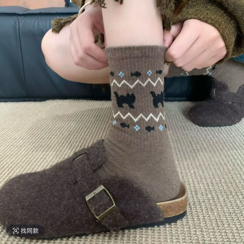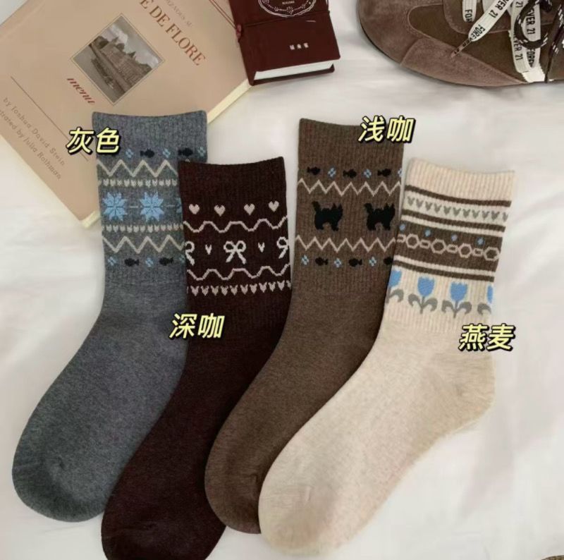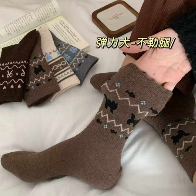 特价秒杀!19.9六双【弹性大不勒腿❗️充满慵懒松弛感】秋冬新款复古费尔岛袜子女士中筒袜ins民族风百搭潮流长筒棉袜女。jb
