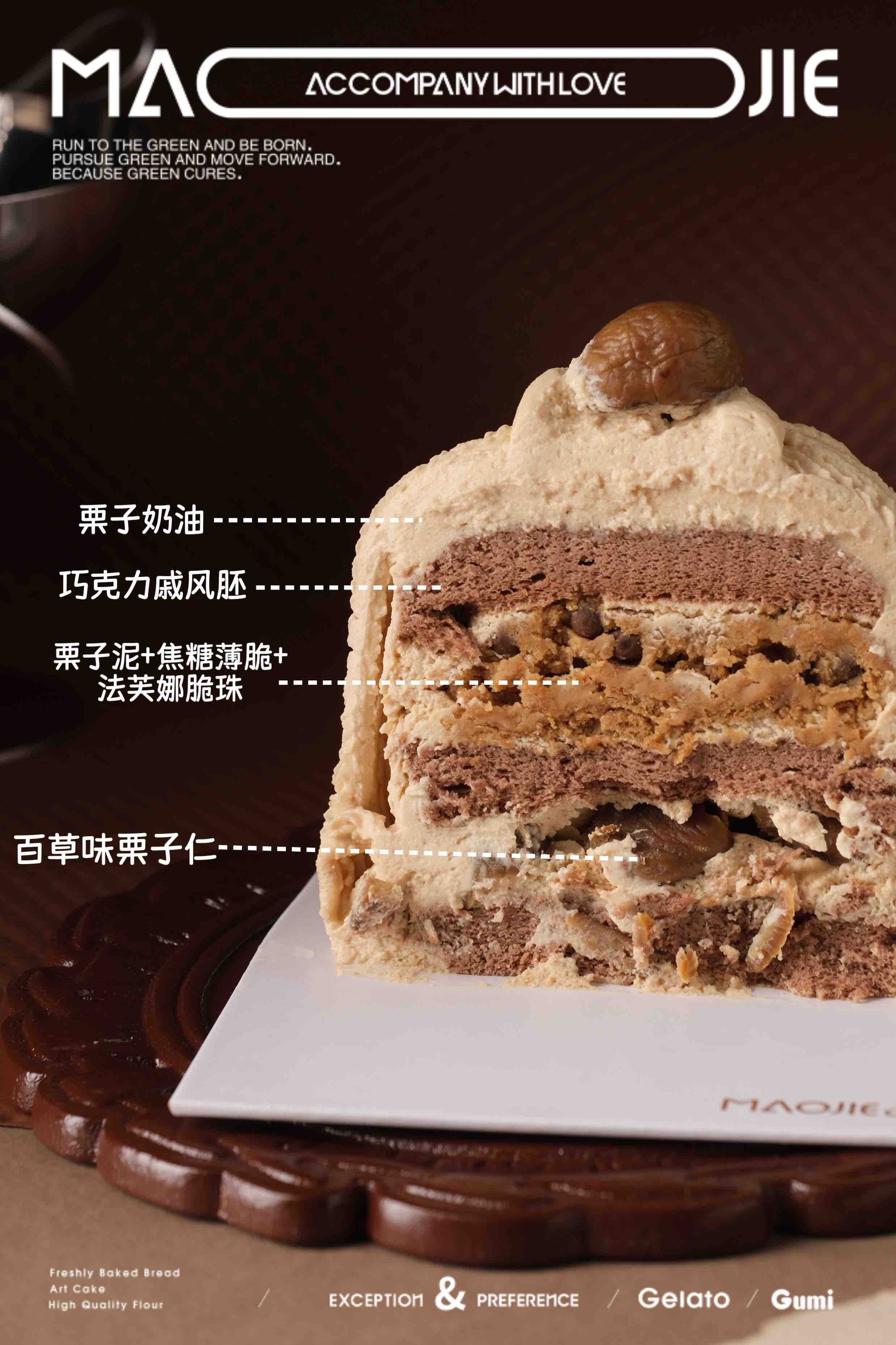 栗子修勾(巧克力蛋糕胚,栗子泥+焦糖薄脆+法芙娜脆珠,栗子奶油,4%糖)
