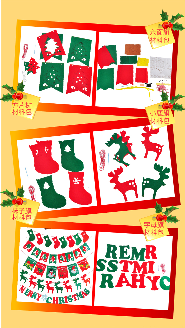 圣诞节小礼物不织布圣诞挂旗装饰品圣诞树儿童手工diy幼儿园材料