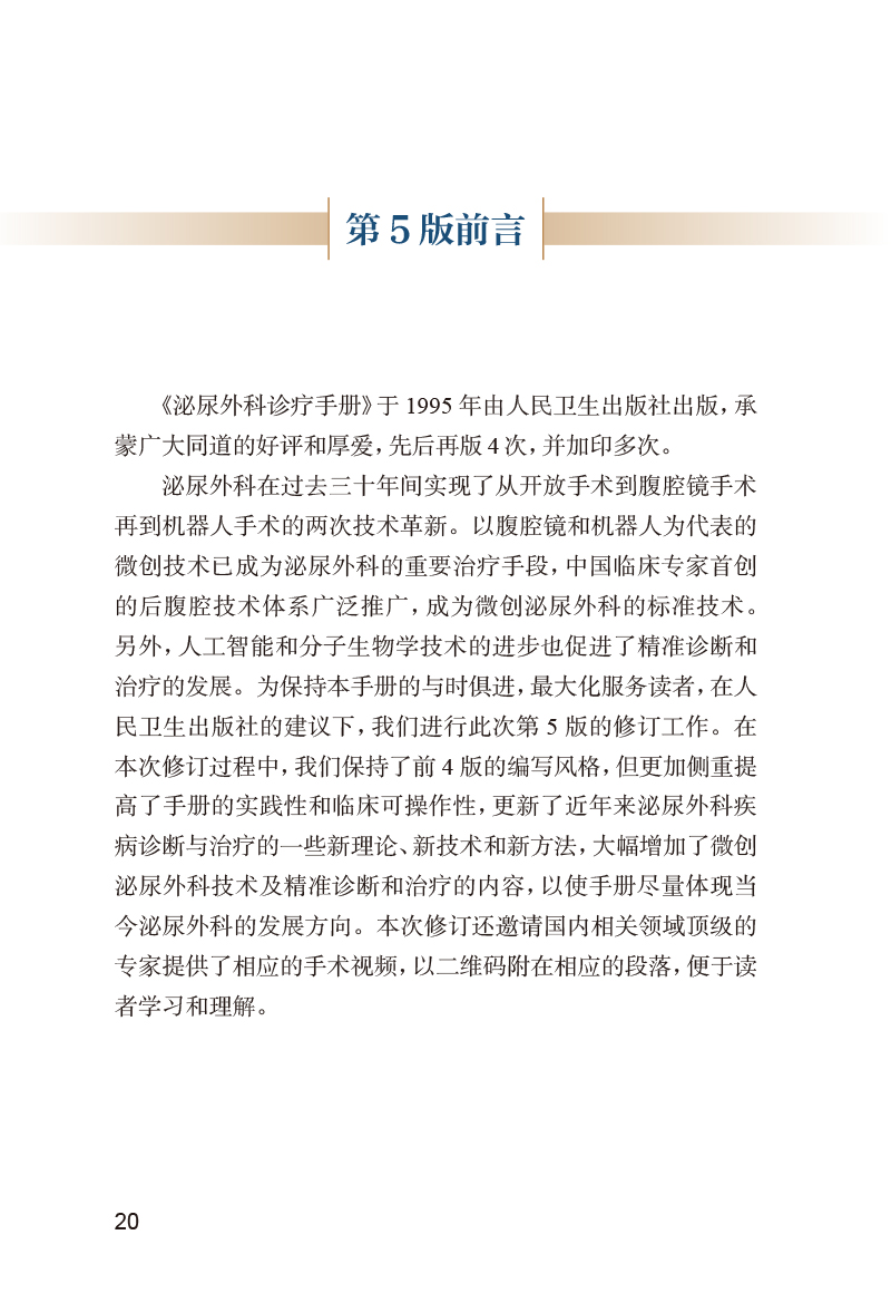 【1】本手册与时俱进,在保留了上一版的基本构架和编写风格的基础上,进行全面修订和补充。【2】本手册从临床诊疗工作的需求出发,以规范化和标准化诊疗为核心,病种覆盖全面,主要包括泌尿外科常见疾病的诊断和治疗,并且突出了当下机器人操作技术、基因检测、器官移植等技术在泌尿外科中的应用优势,内容更加新颖,为泌尿外科医师提供了实用的参考和学习资料。