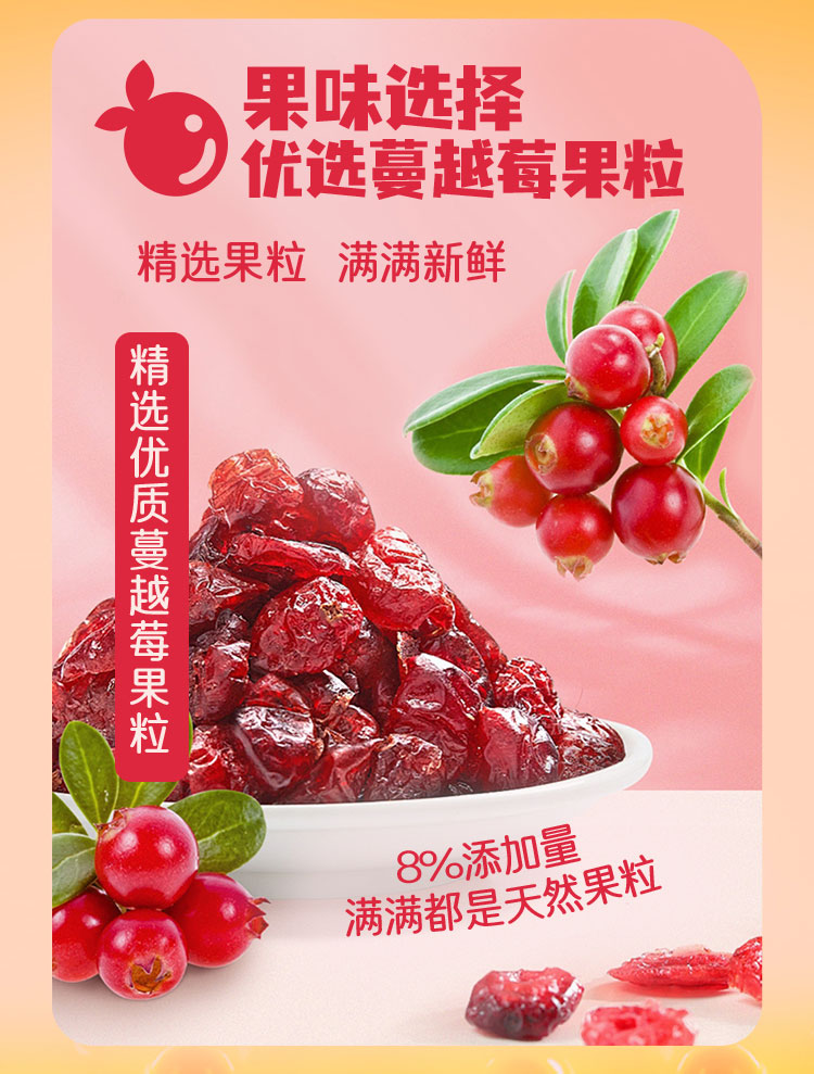 【配料表】全脂乳粉、含乳食品基料粉(生牛乳、葡萄糖浆、植物油、全脂乳粉)、低聚异麦芽糖、海藻糖、奶油、纯牛奶、蔓越莓果粒、全脂羊乳粉、干酪粉