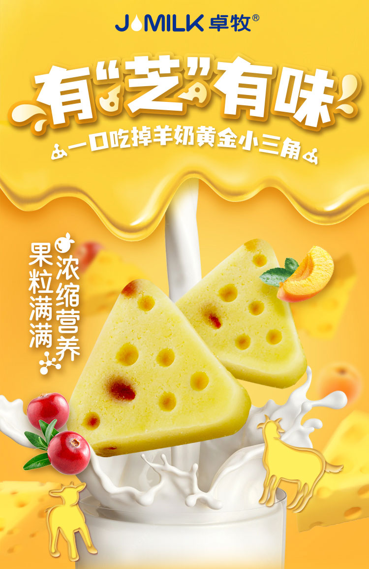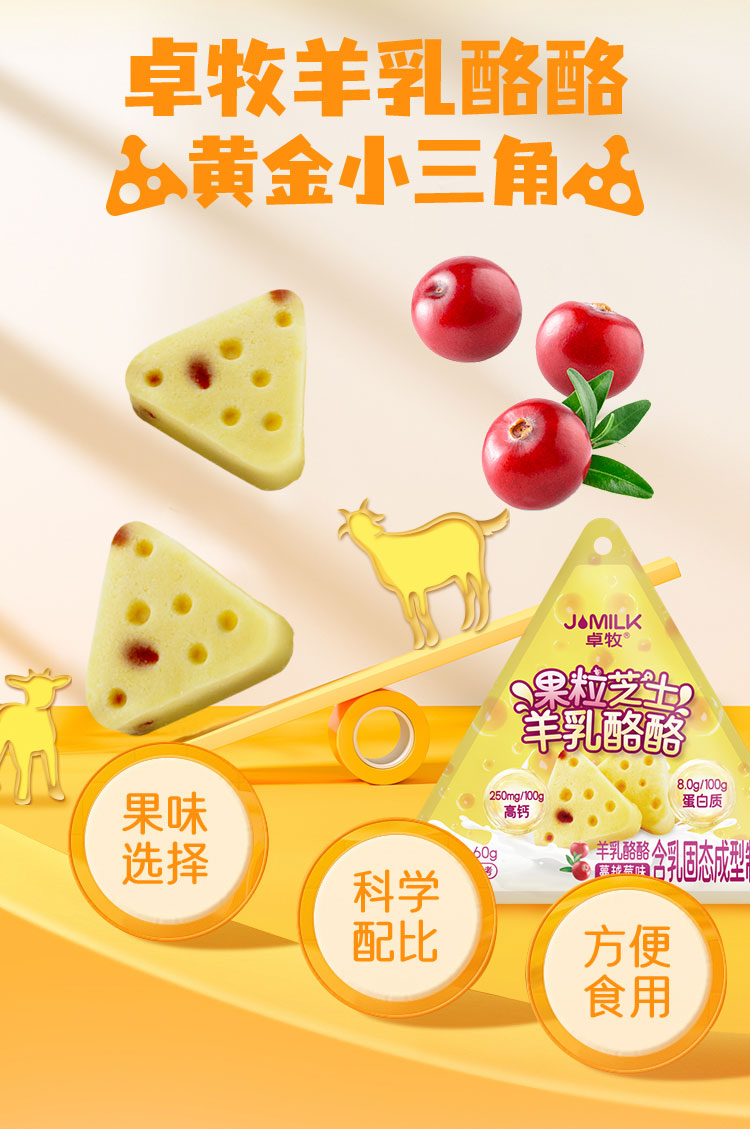 高钙羊乳乳酪!卓牧(JOMILK)高钙果粒芝士羊乳奶酪酪 儿童健康零食 三角芝士酪酪 60g/袋