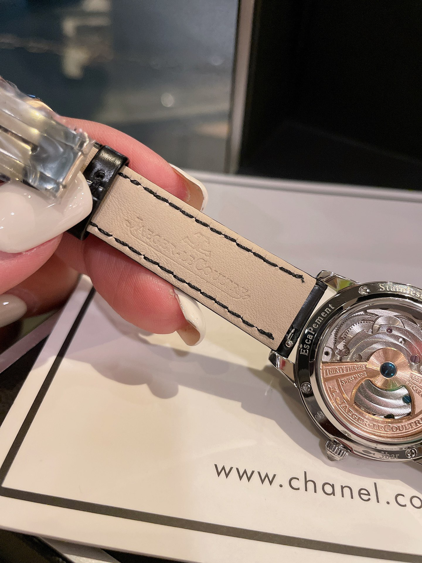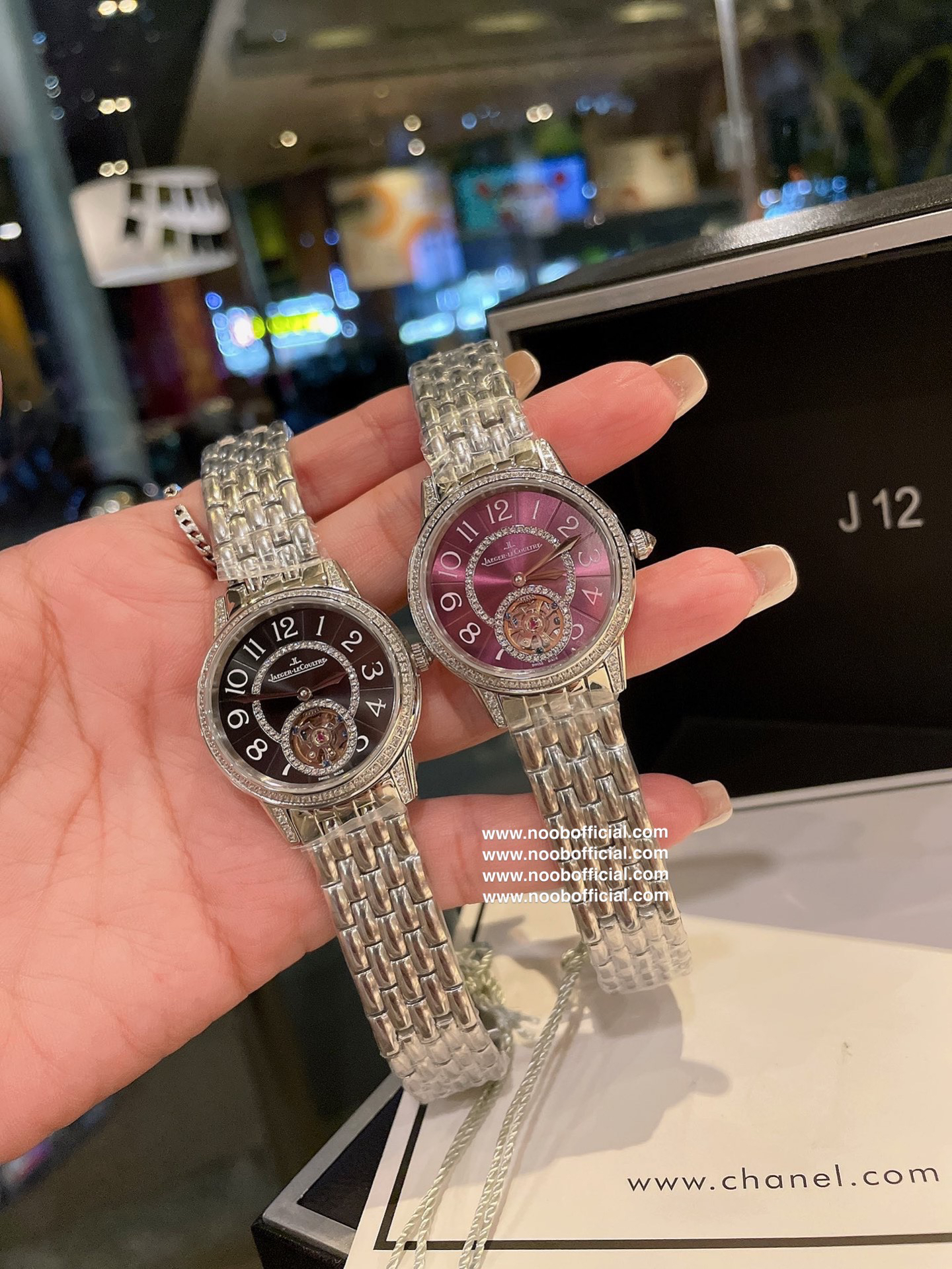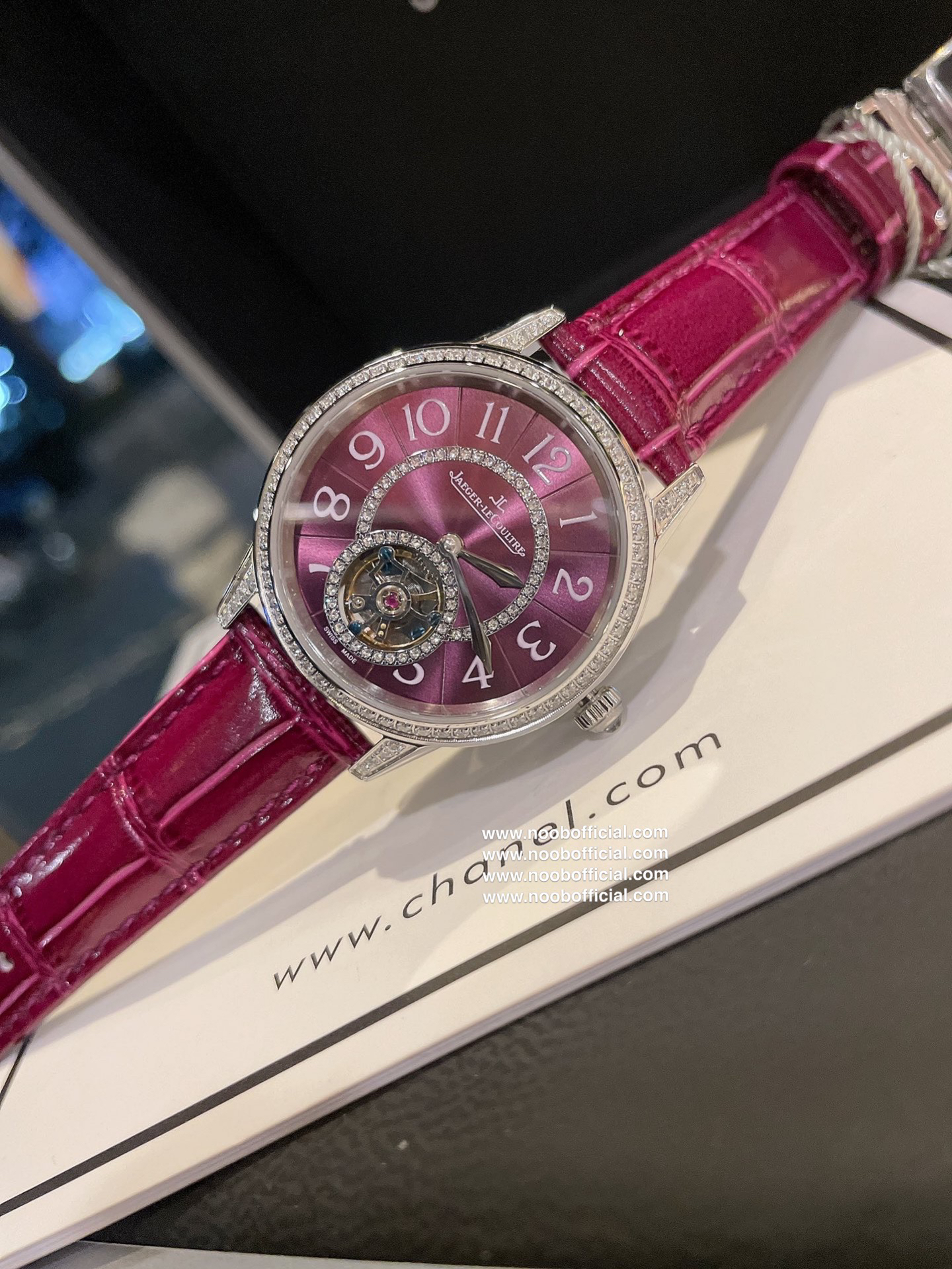 积家Rendez-Vous约会系列,全自动机械飞轮女士腕表,由天然深海珍珠贝母打造的表盘与精钢镶钻表圈交相辉映,散发着柔和的七彩光泽,而位于六时位置的飞轮则如优雅的腕上芭蕾,尽显独特女性魅力。高端配置:精钢表壳,陀飞轮机械机芯经过检测质量稳定,蓝宝石水晶镜面,7色鳄鱼皮表带,9色牛皮表带,精钢表带,原装折叠表扣,尺寸:宽33mm厚11mm