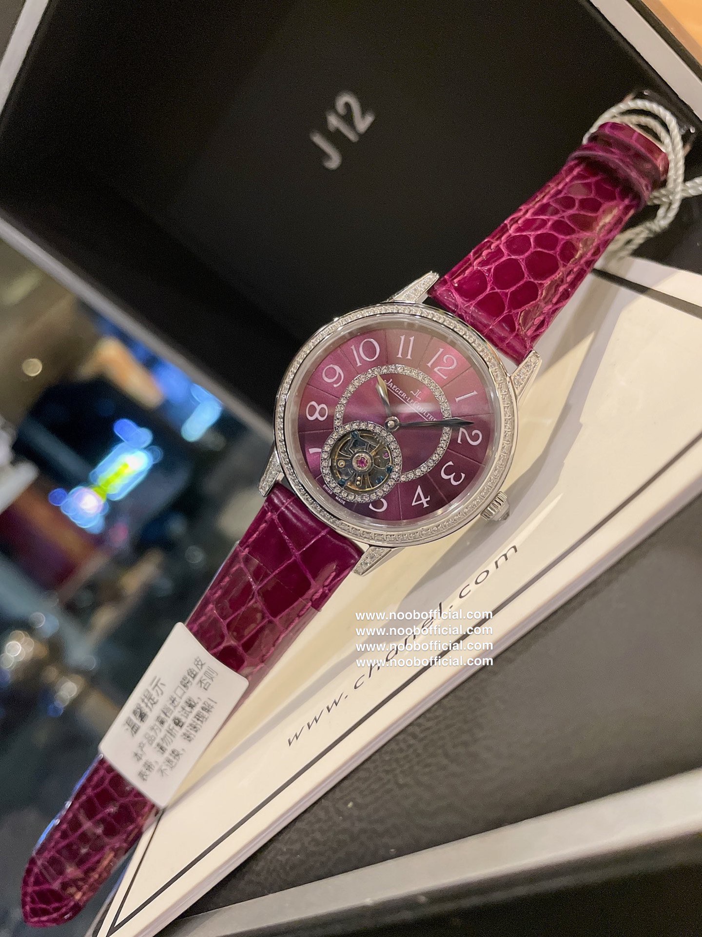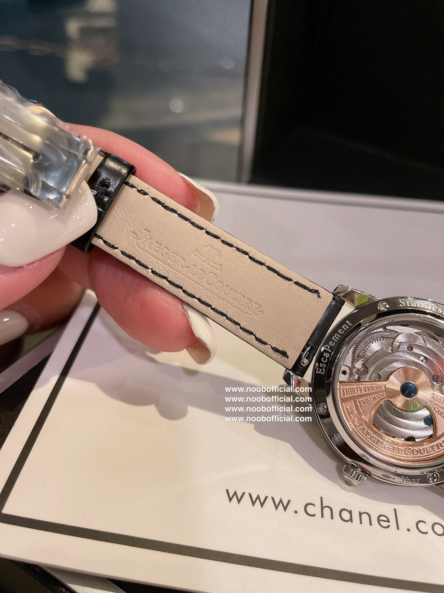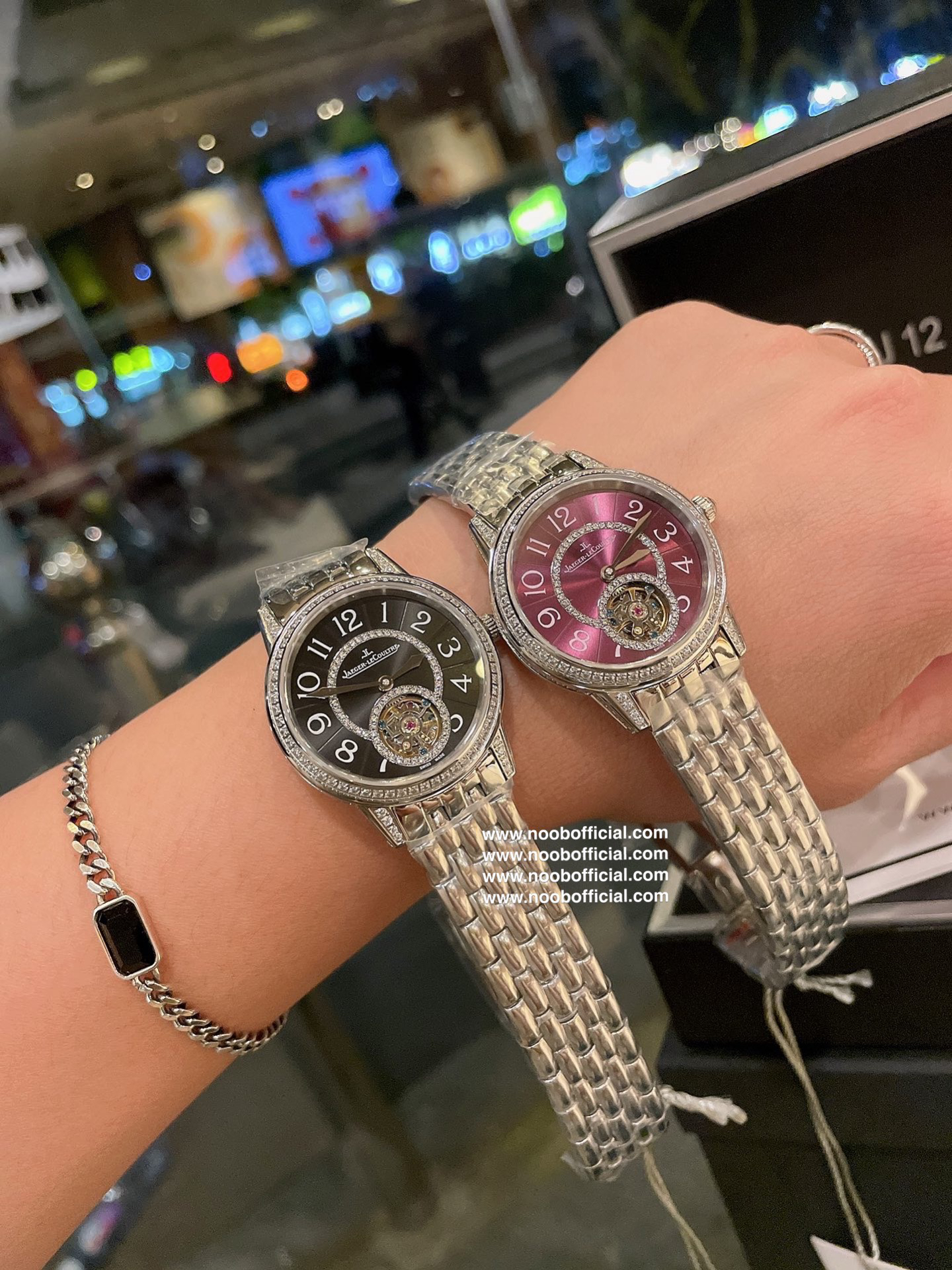 积家Rendez-Vous约会系列,全自动机械飞轮女士腕表,由天然深海珍珠贝母打造的表盘与精钢镶钻表圈交相辉映,散发着柔和的七彩光泽,而位于六时位置的飞轮则如优雅的腕上芭蕾,尽显独特女性魅力。高端配置:精钢表壳,陀飞轮机械机芯经过检测质量稳定,蓝宝石水晶镜面,7色鳄鱼皮表带,9色牛皮表带,精钢表带,原装折叠表扣,尺寸:宽33mm厚11mm