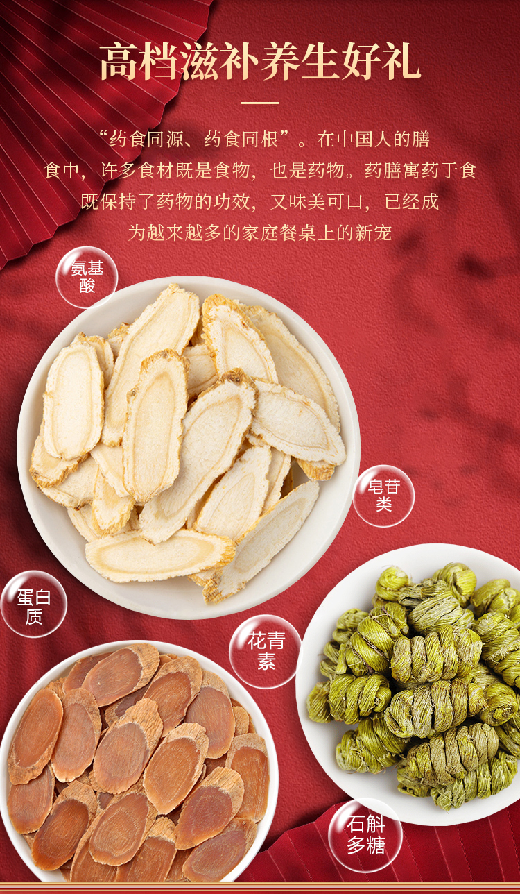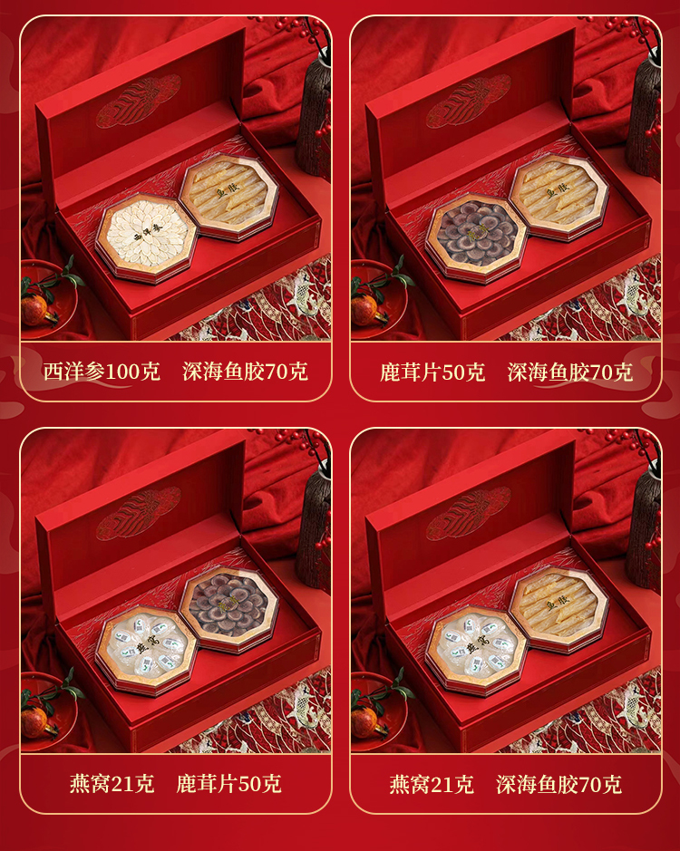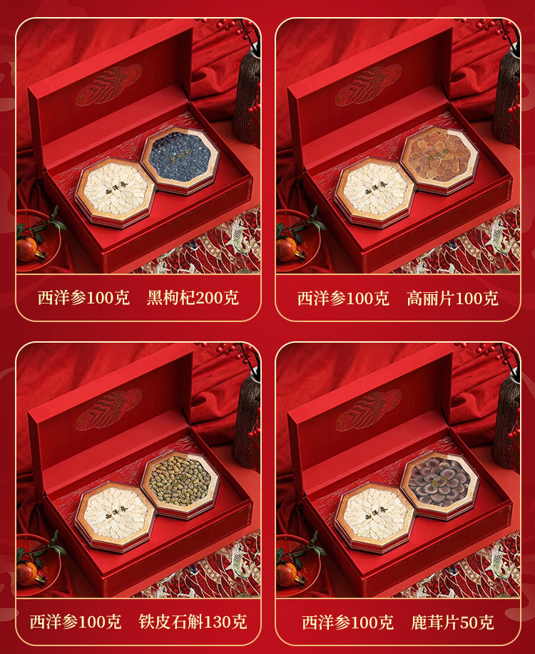 西洋参 高丽参 铁皮石斛 鹿茸 鱼胶等多种组合