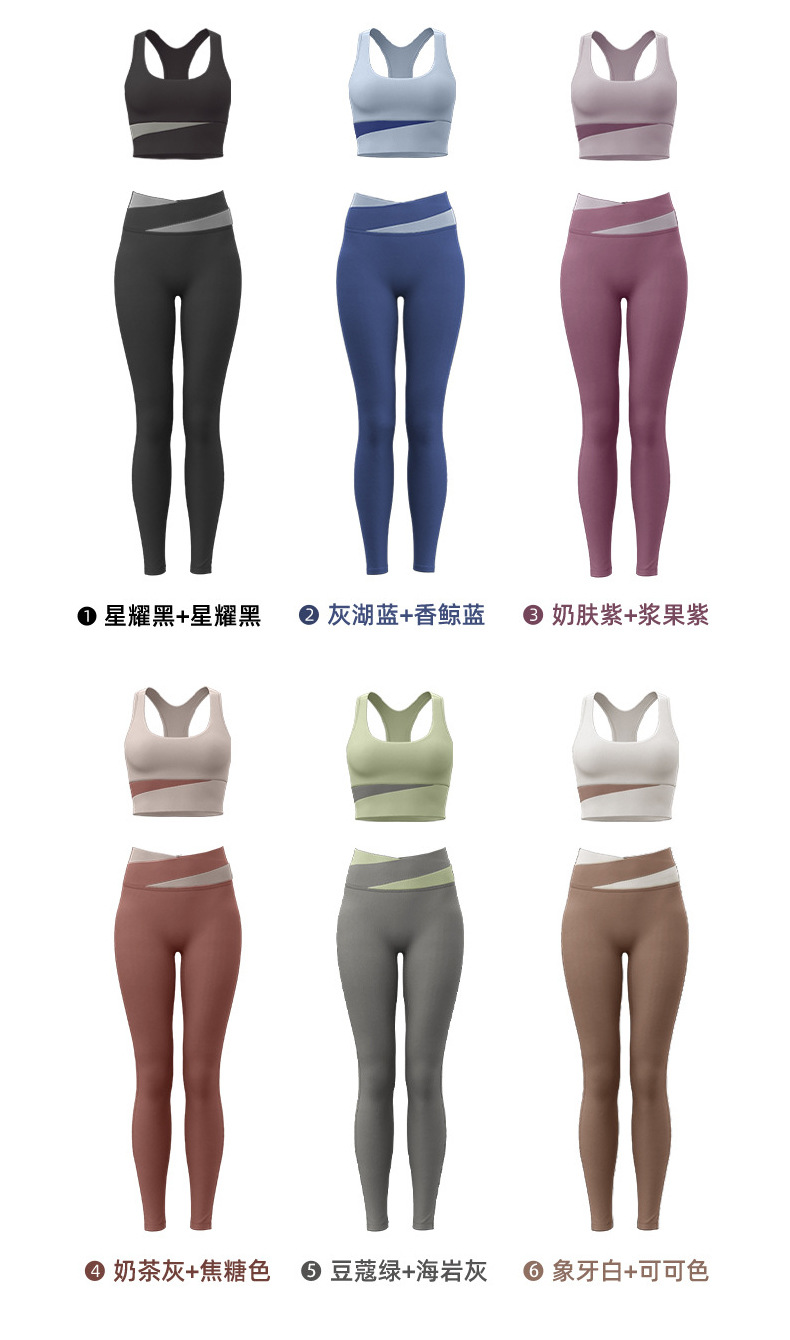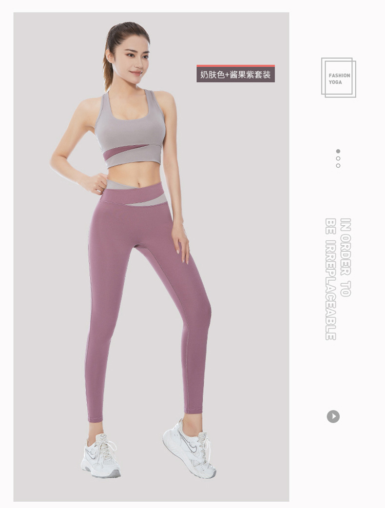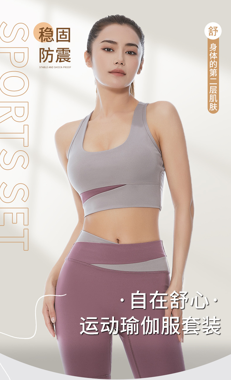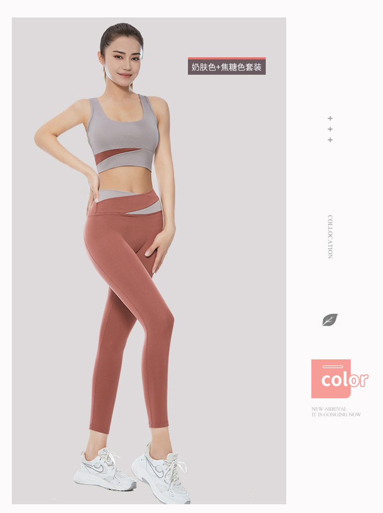 【拼色瑜伽裤瑜伽套装】防震运动文胸跑步瑜伽服女提臀裸感速干健身服