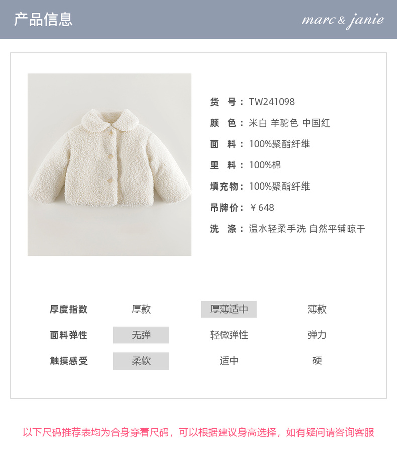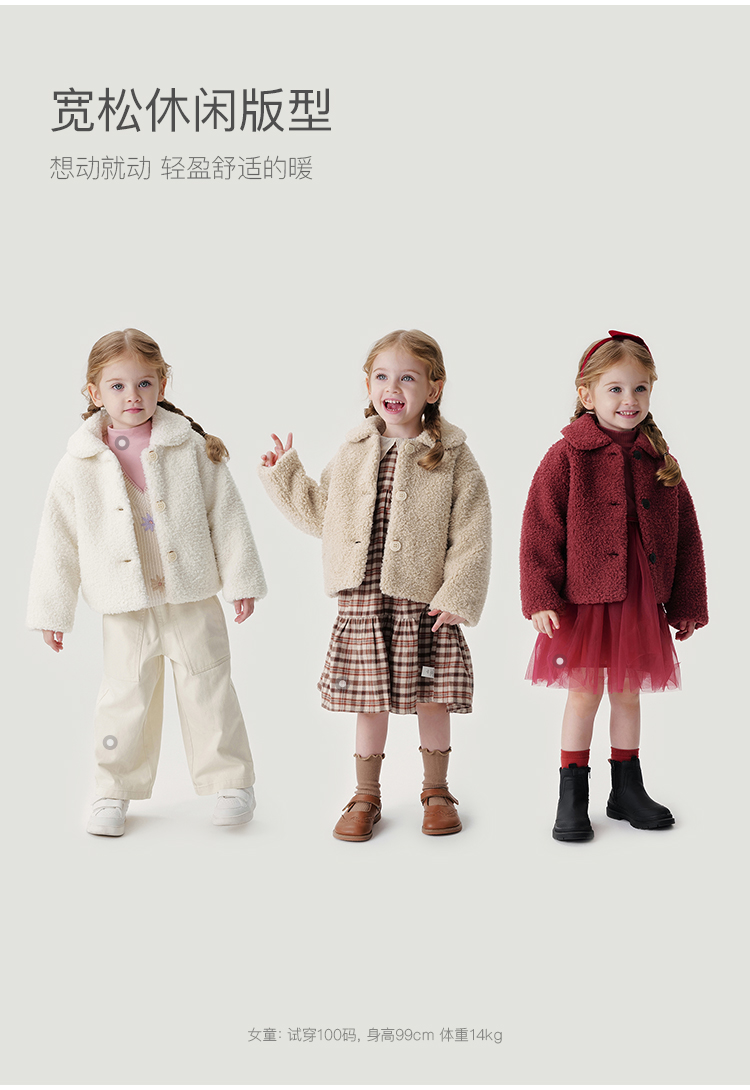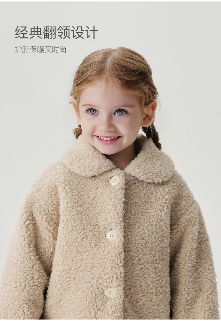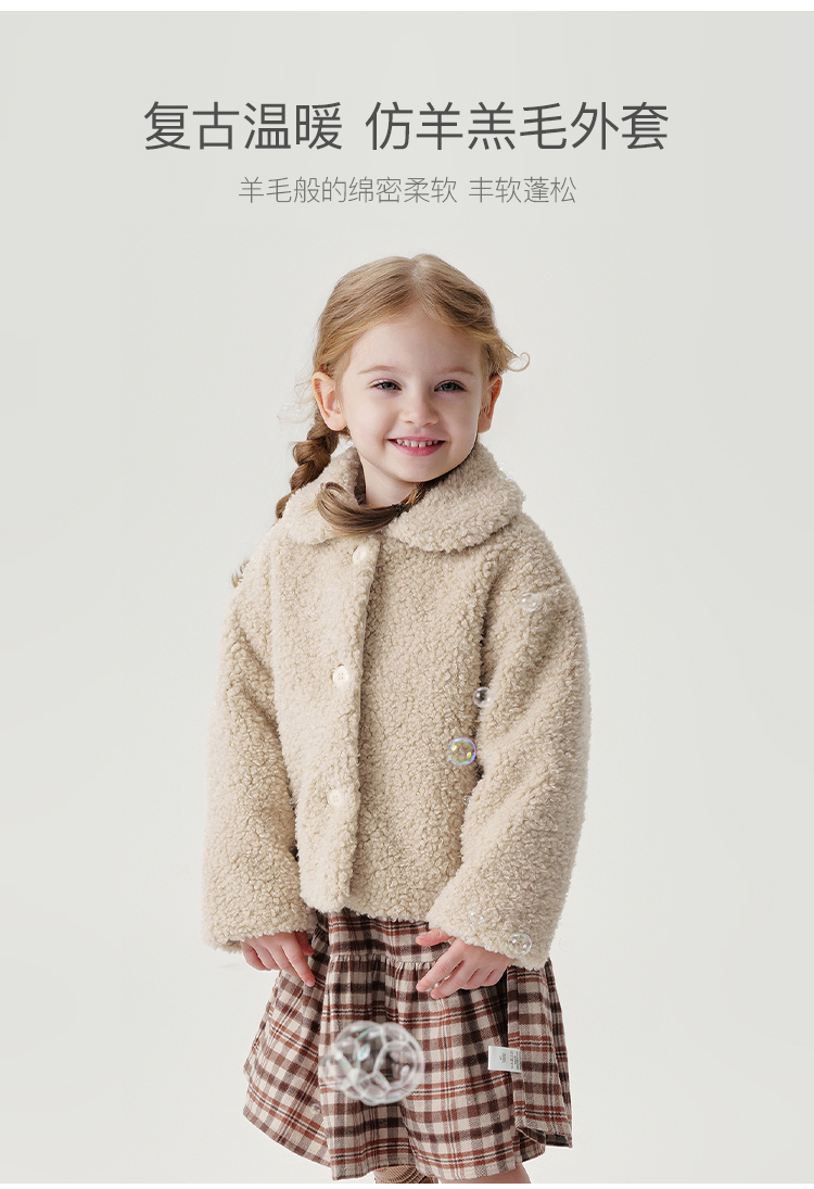 马克珍妮女童复古仿羊羔毛棉衣儿童夹棉外套2024年冬装新款241098