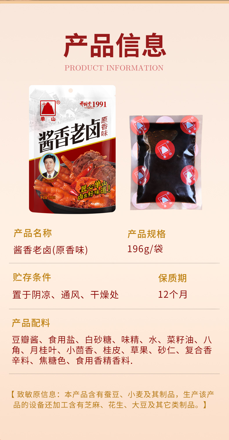 单山辣卤调料196g香辣卤料包加水即卤五香酱卤汁卤牛肉鸡鸭爪