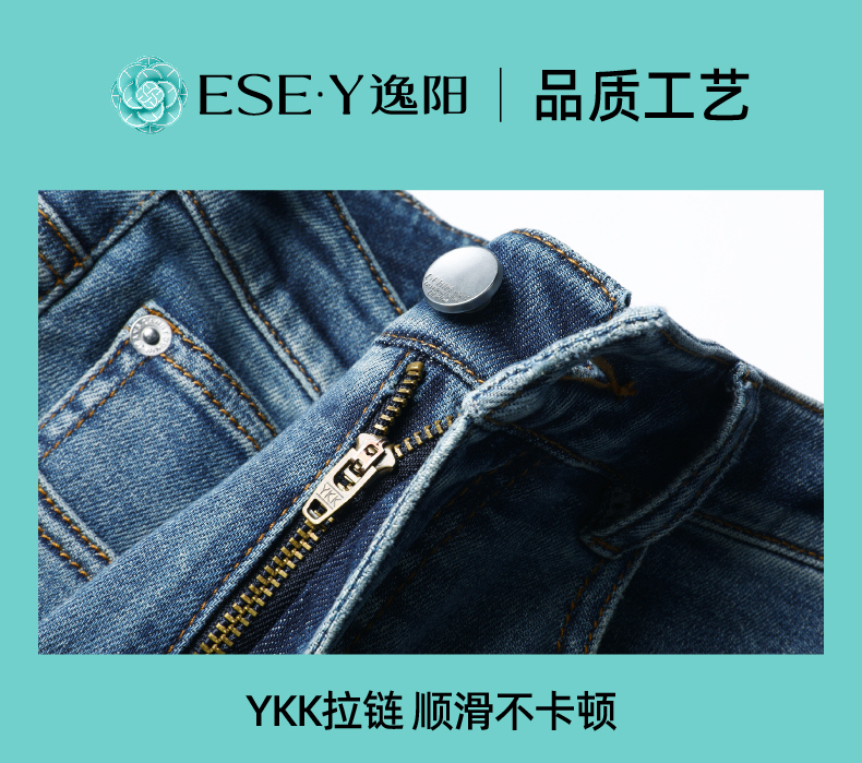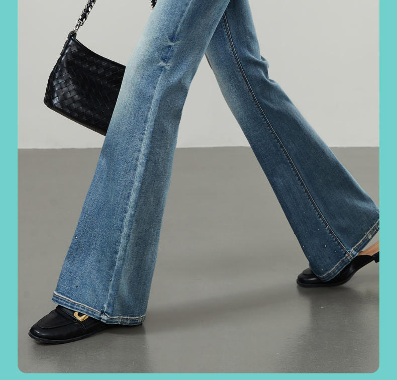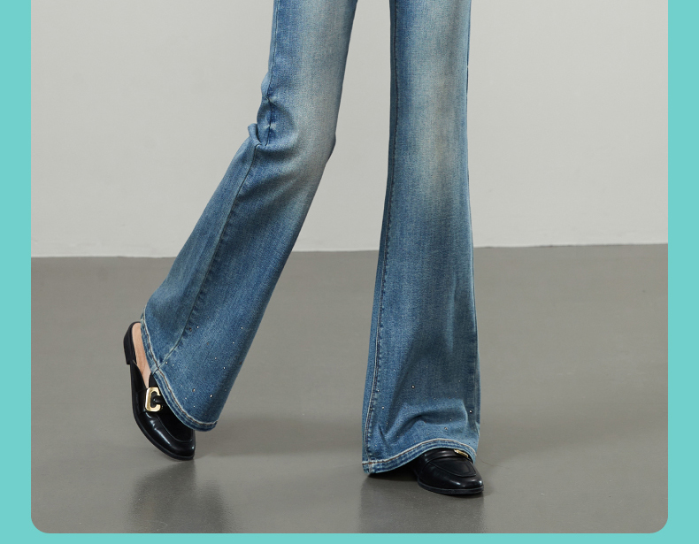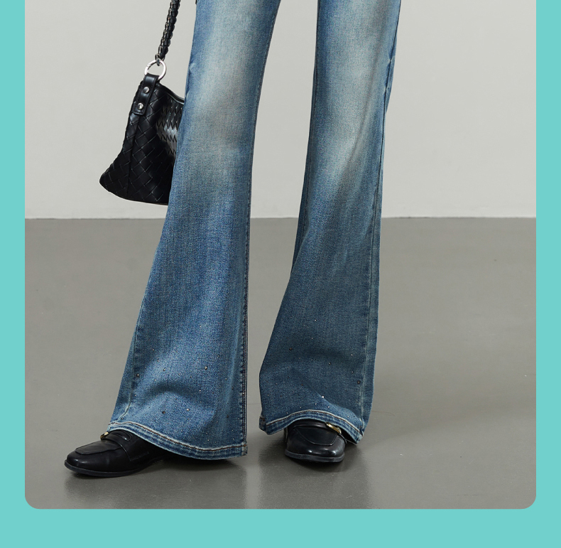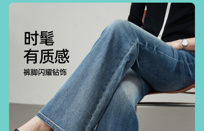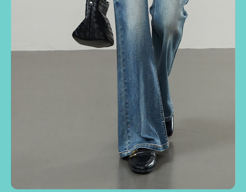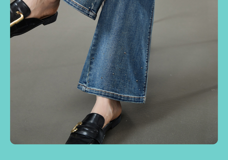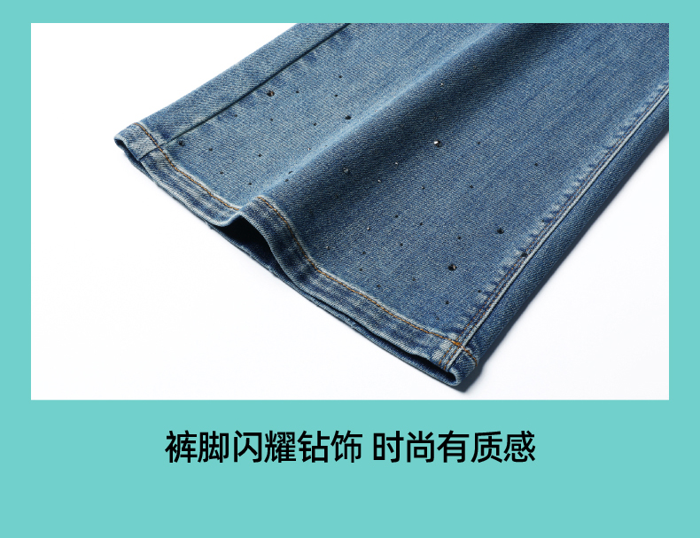 【时尚带钻-微喇牛仔】逸阳秋新品三芯纱宽松显瘦马蹄长裤子6222