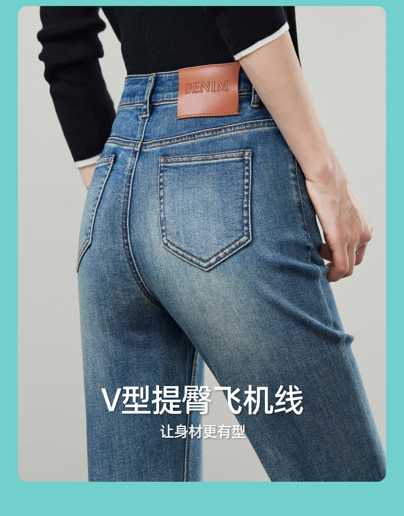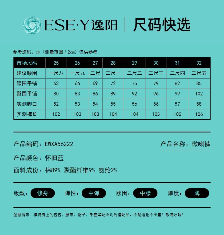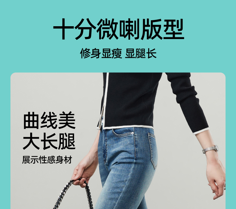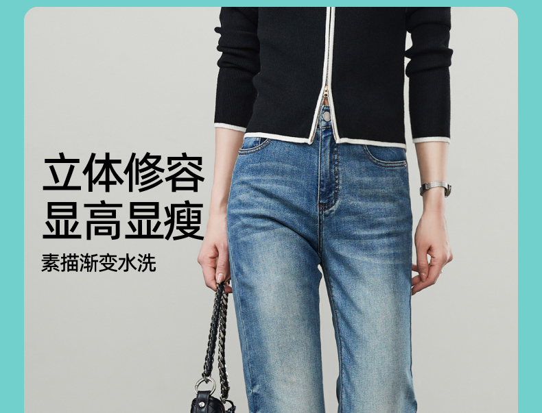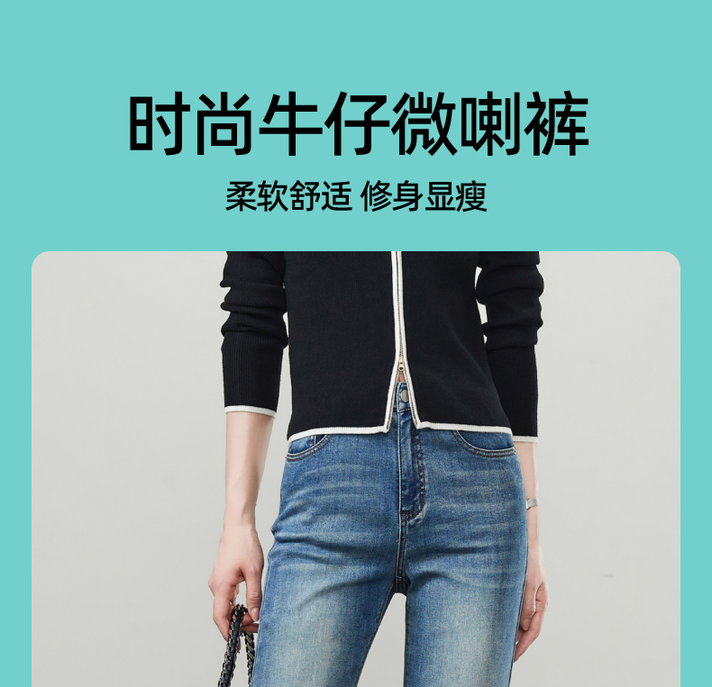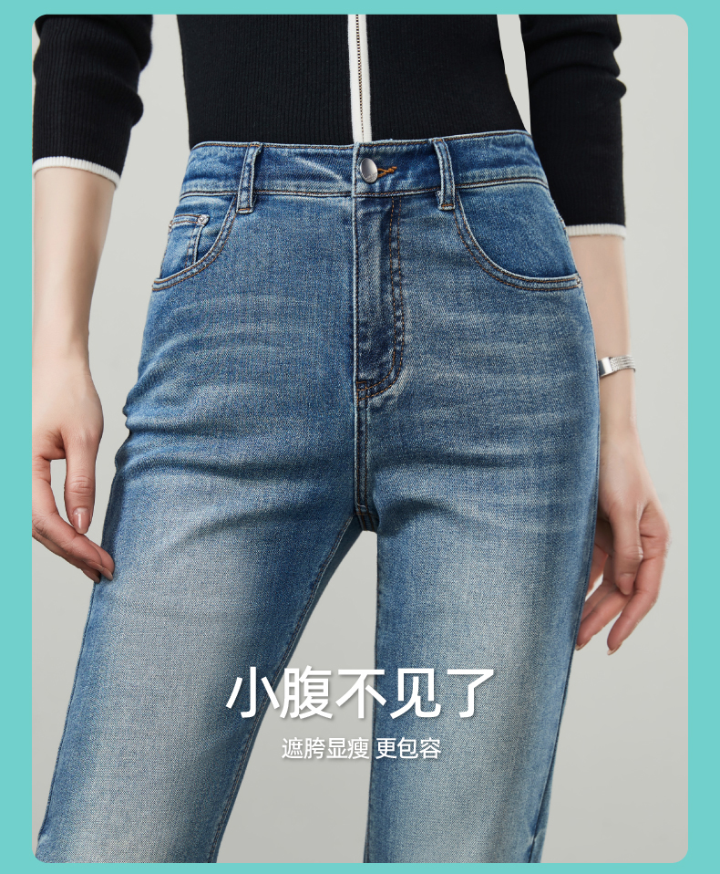 【时尚带钻-微喇牛仔】逸阳秋新品三芯纱宽松显瘦马蹄长裤子6222