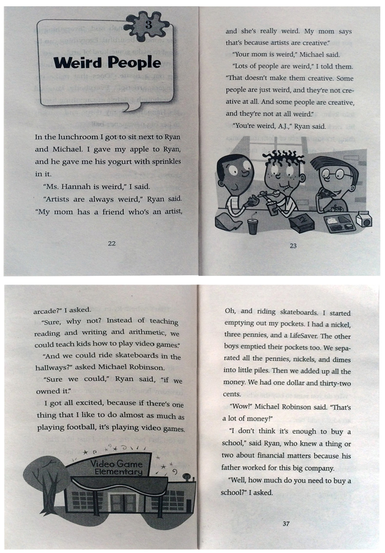 哈啰!大家好,我是AJ (Arlo Jervis),就读于Ella Mentry School二年级,我们班上那个有着一头棕色卷毛的Andrea是我的死对头,例如:我讨厌上学,可是她就偏爱上学,反正所有我讨厌的事情她都喜欢,她就是天生生来和我作对的,提到了对头当然不能忘了我的麻吉,Michael、Ryan、Neil是我的死党。说到了我们学校,可一点也不普通哦!我们的校长竟然把他的秃头涂成橘色,还和小猪嘴对嘴亲亲;我们的导师Daisy不会加法也不会减法,甚至连读和写也不会,她大概是全世界很笨的老师吧!还有还有,偷偷告诉你们哦!保健室里的护士阿姨深藏不露,好像是一名国际间谍!其他人好像也都不怎么正常,天啊!这真得是一所疯狂的小学,接下来我再慢慢介绍给你们认识;不过,开学的第一天,Daisy老师告诉我,她和我一样也不喜欢上学,我们有好多地方好像哦!上学好像感觉没那么糟了哦……