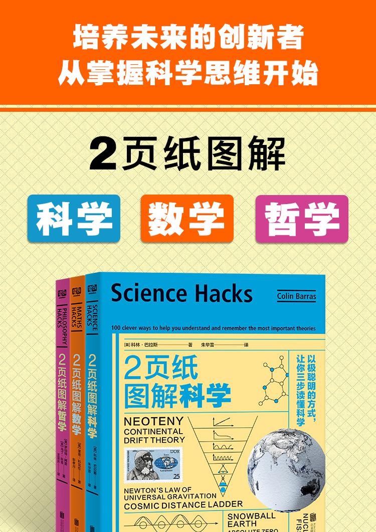 【图书名称】《2页纸图解:以极聪明的方式,三步读懂数学+科学+哲学》全3册