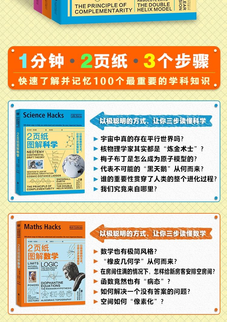 书展大捡漏!【库存100】《2页纸图解:以极聪明的方式,三步读懂数学+科学+哲学》全3册 【7-14岁】