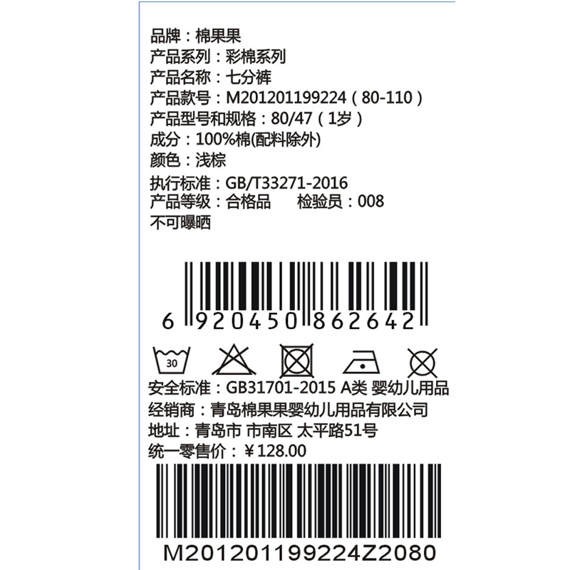 棉果果夏季彩棉纯棉家居七分裤M201201199224