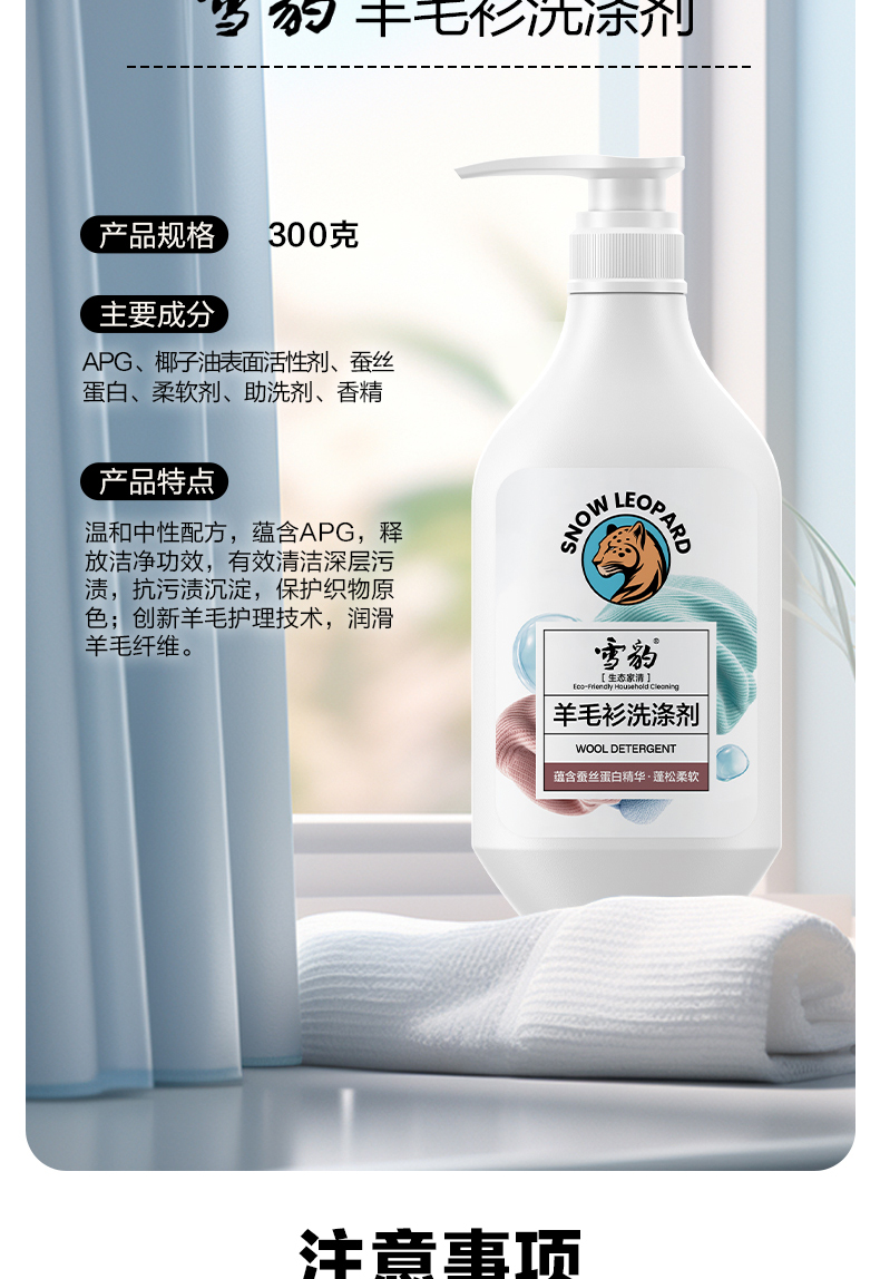【双十二】雪豹生态家清 羊毛衫洗涤液300g 清新花香X3010B