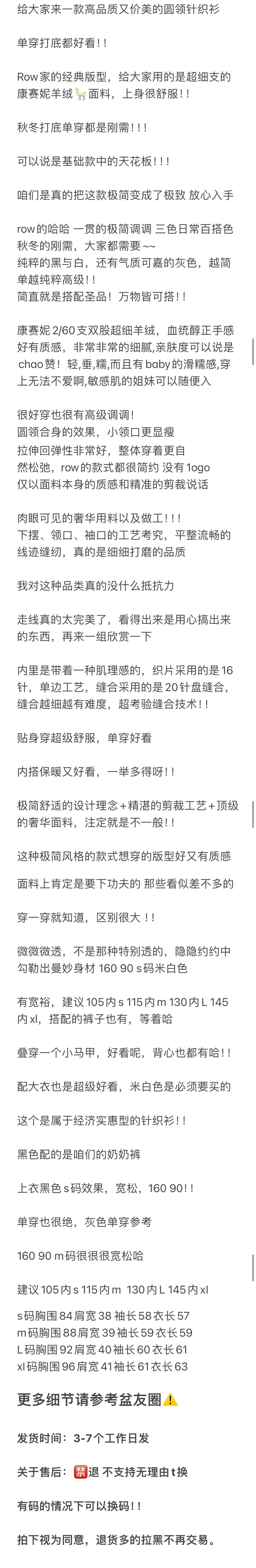 重磅!row长袖针织打底 康赛妮纱!万能百搭!圆领针织TEE