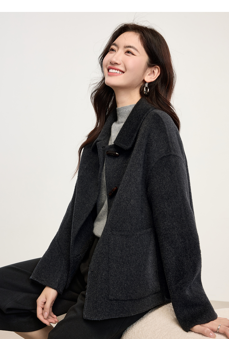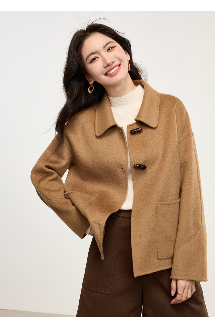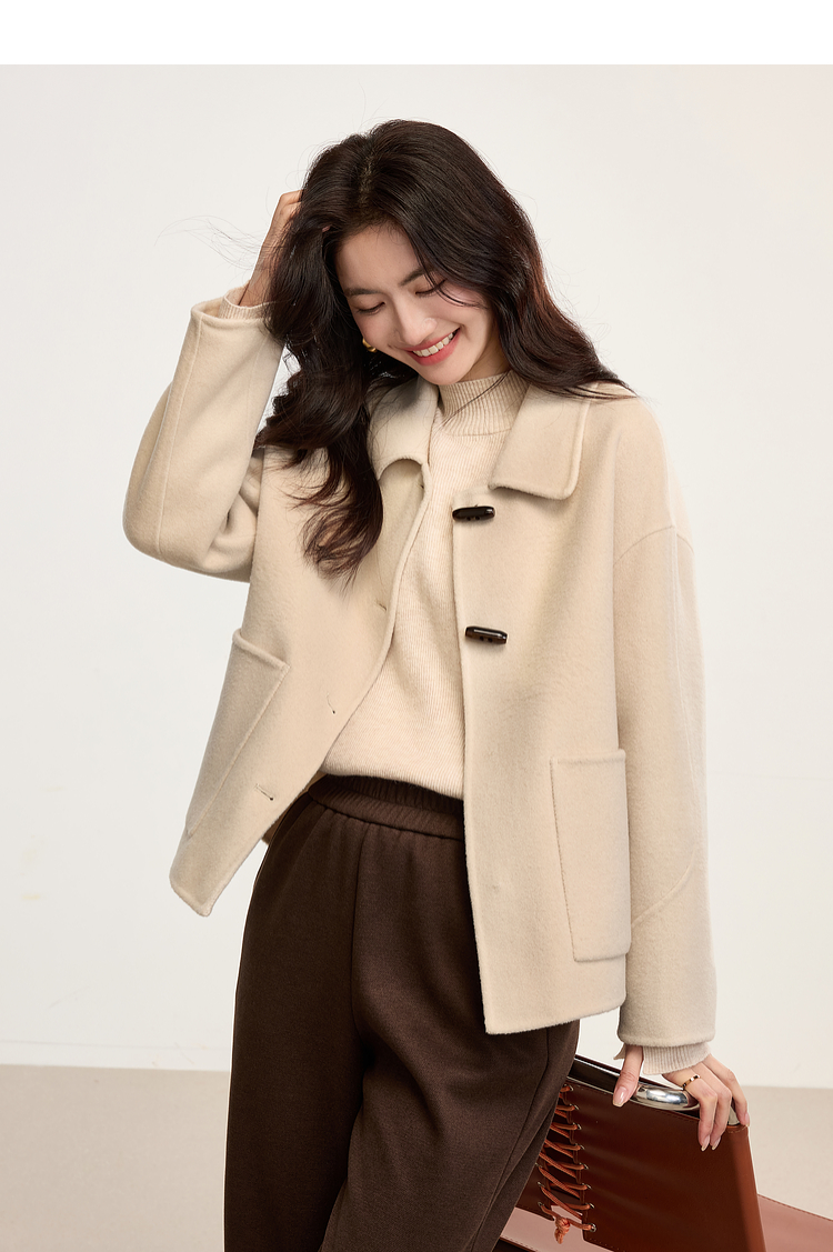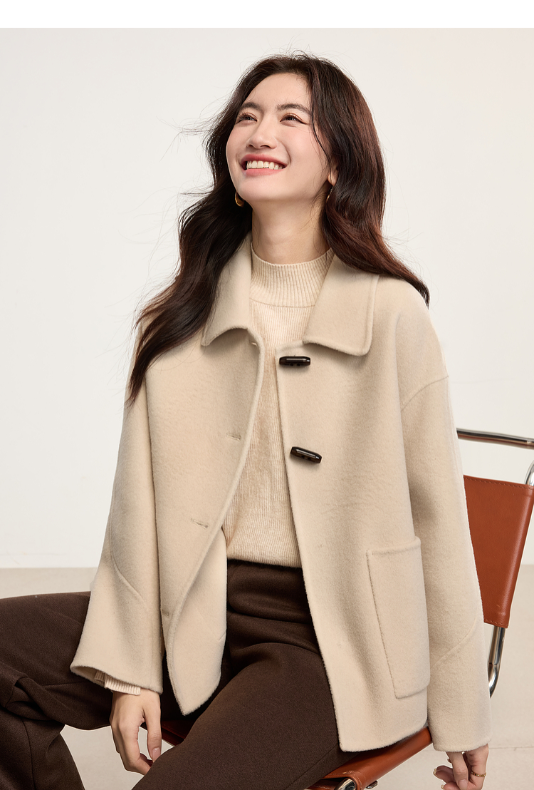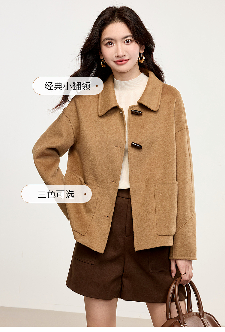 【年终特卖】熙世界澳洲美丽诺羊毛大衣女短款2025冬装新款羊绒翻领毛呢外套