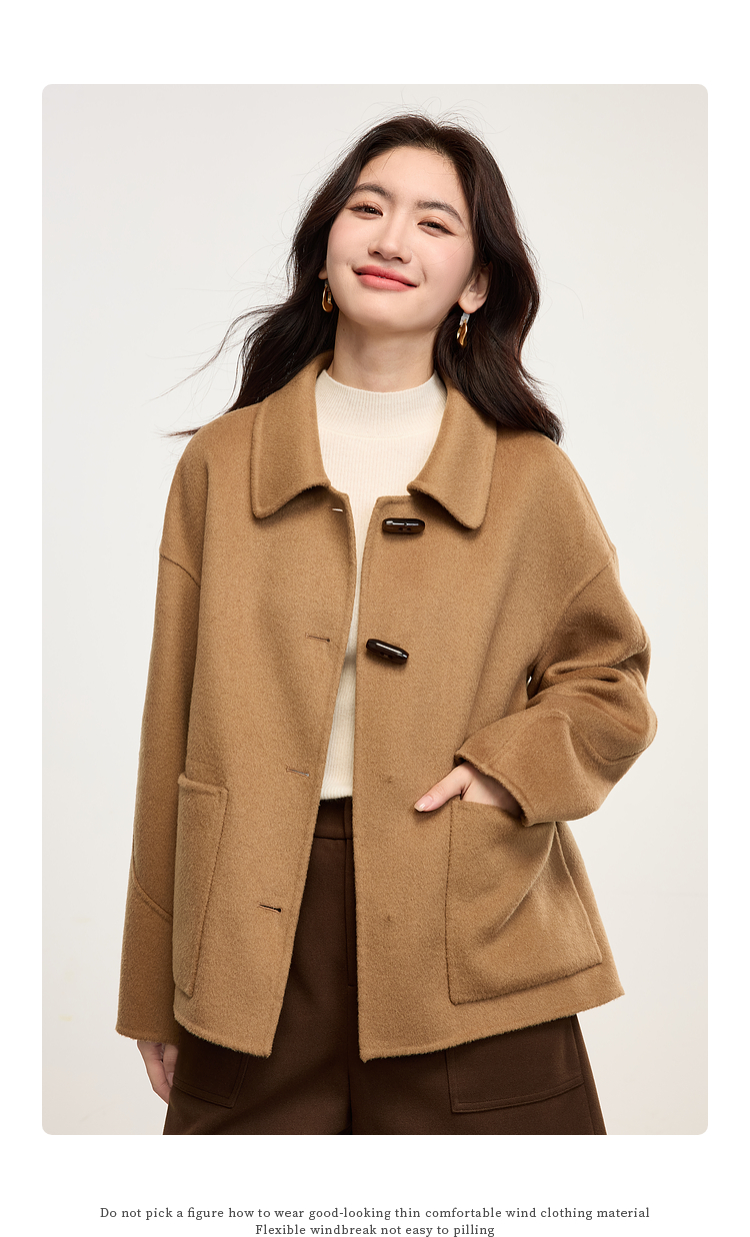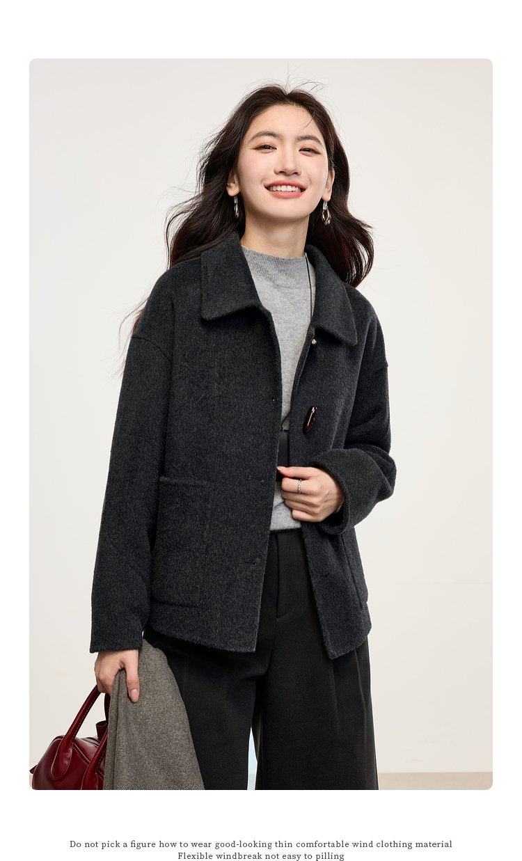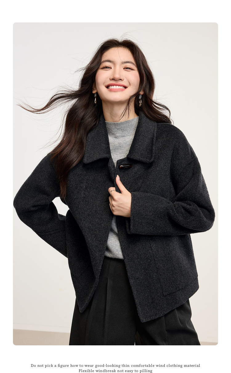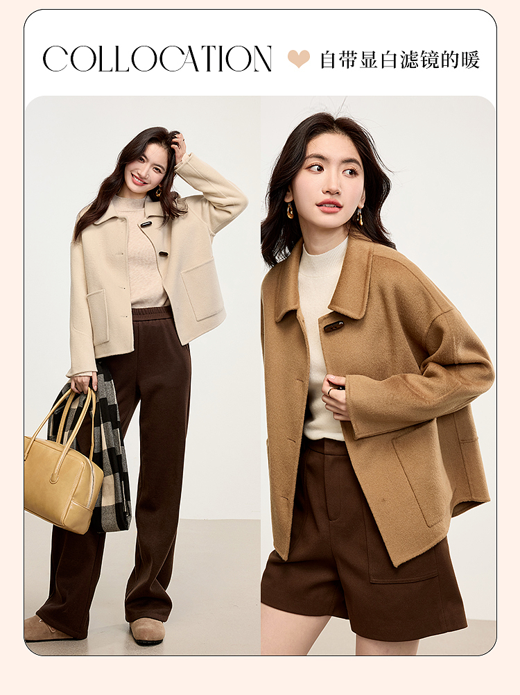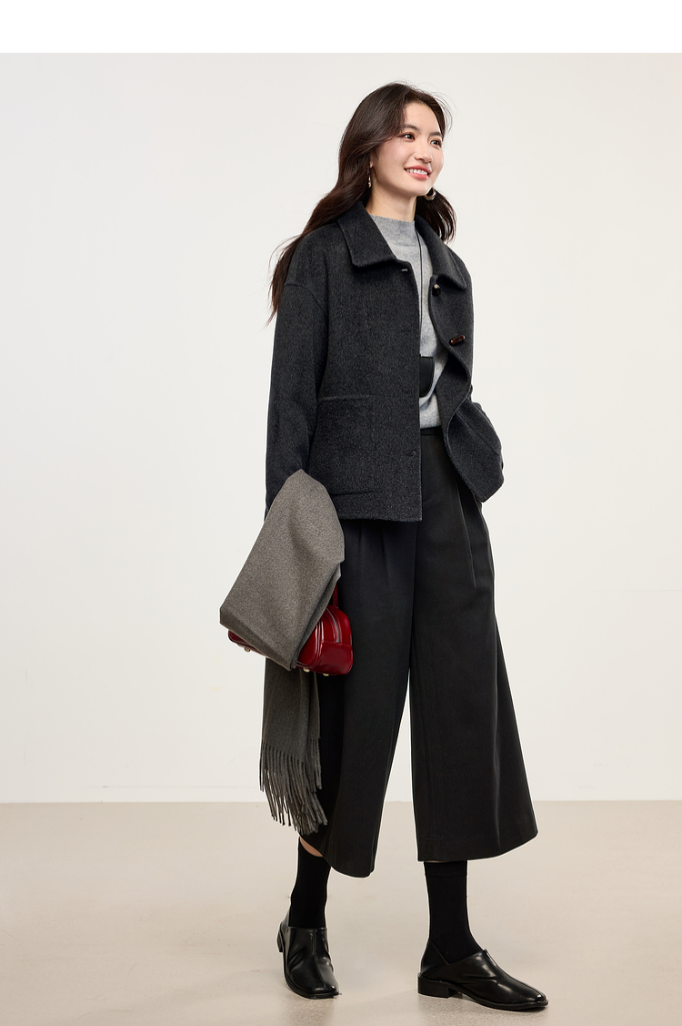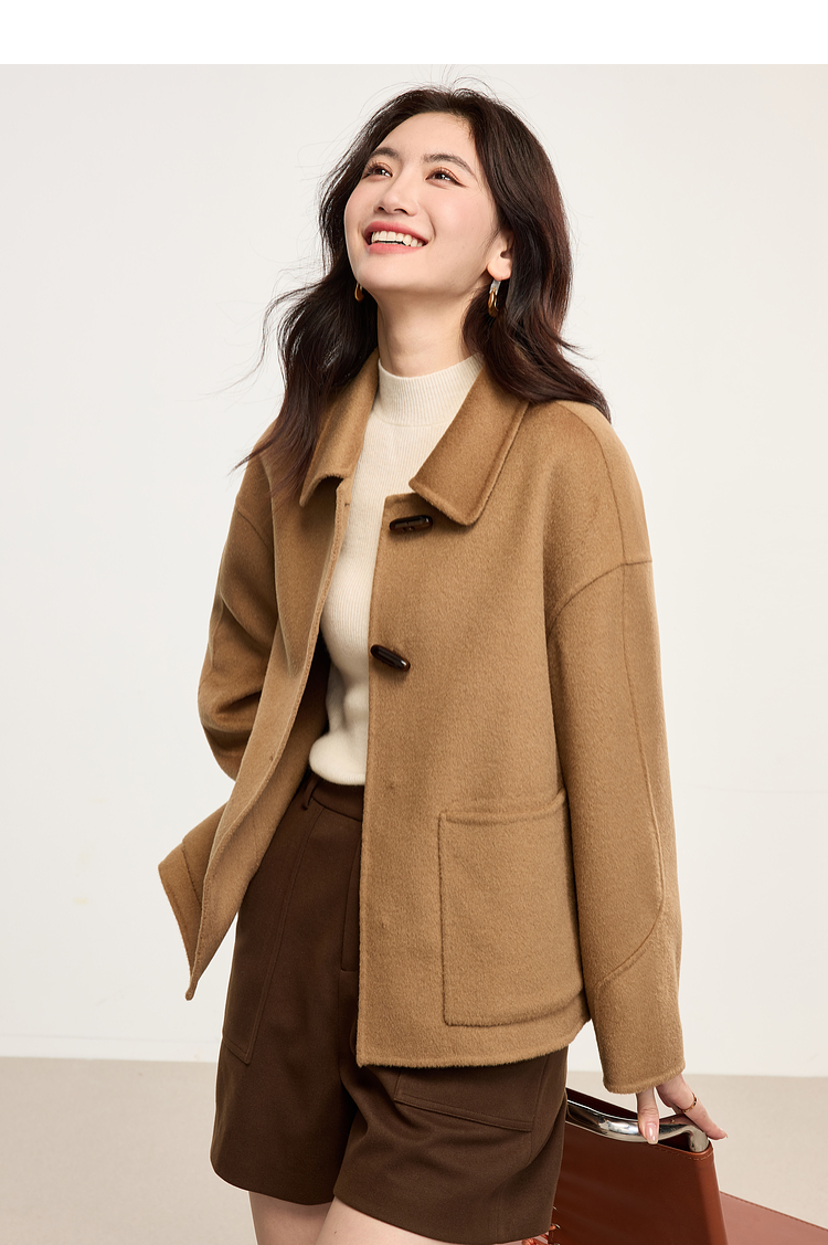 【年终特卖】熙世界澳洲美丽诺羊毛大衣女短款2025冬装新款羊绒翻领毛呢外套