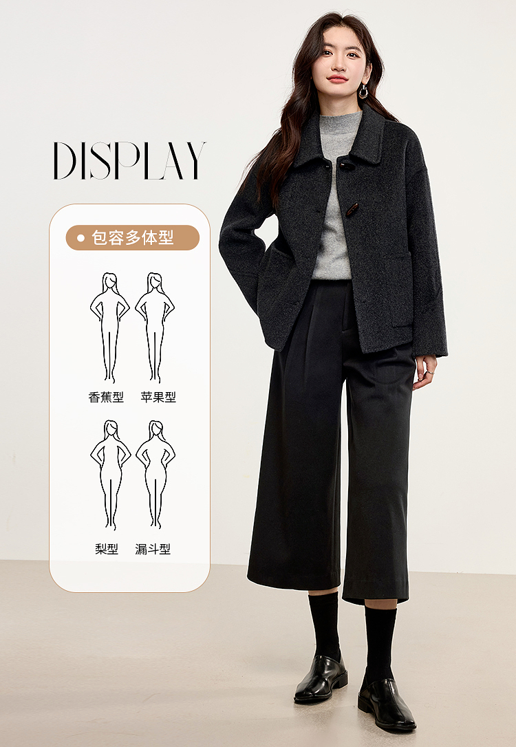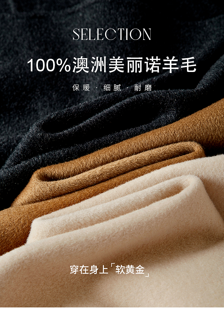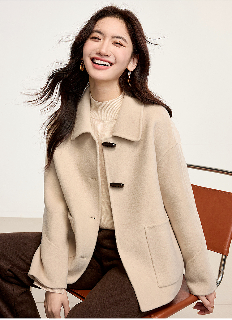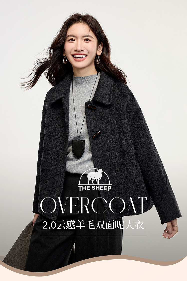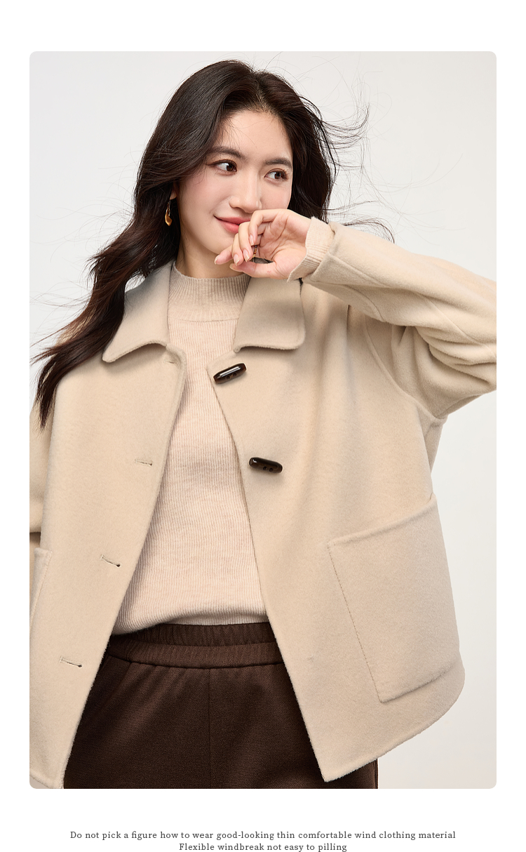 【年终特卖】熙世界澳洲美丽诺羊毛大衣女短款2025冬装新款羊绒翻领毛呢外套